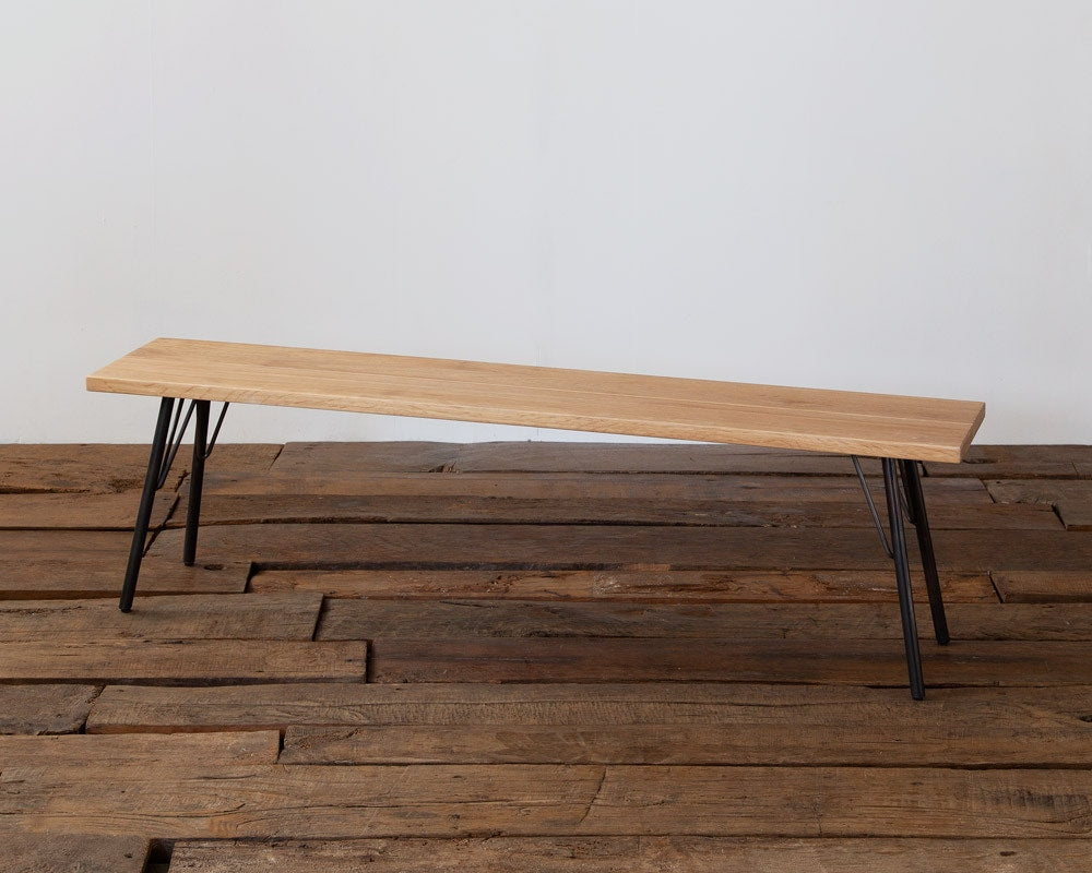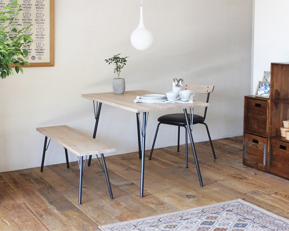 無骨なアイアンとウッドがヴィンテージなACME FURNITURE(アクメファニチャー)「GRANDVIEW BENCH(グランドビュー ベンチ)」のナチュラルカラーです。アメリカのヴィンテージスツールをモチーフに座面にオーク材を使用したACMEオリジナルベンチ。W1500幅とW1200幅のテーブルに対応でき、同シリーズでのコーディネートが可能です。ベンチの良いところは背もたれがなく、圧迫感が少ない。また、お子様など詰めて3人座ったりと便利な使い方ができます。ダイニングに片側チェア2脚、反対側にベンチをコーディネートするのがベストです。