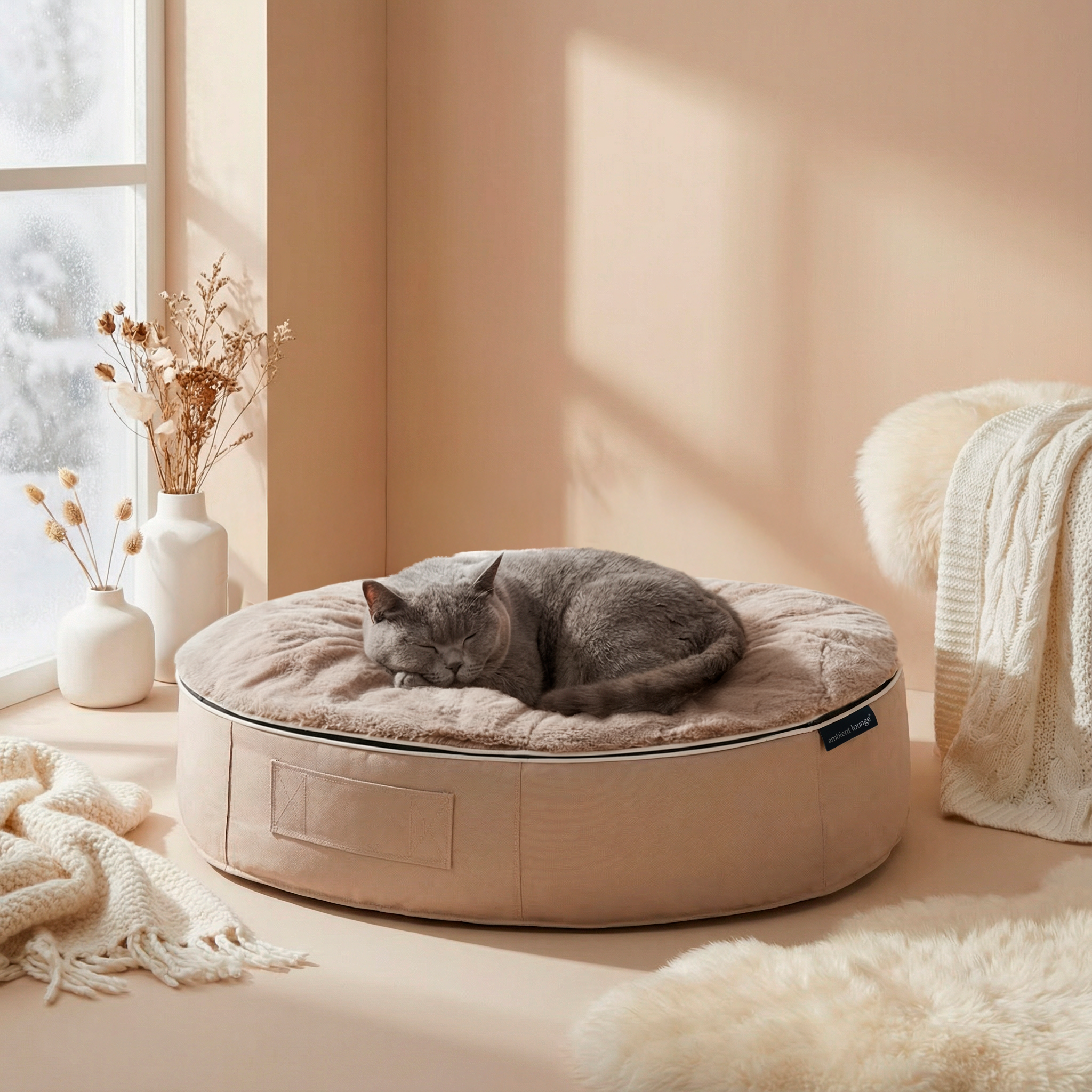 猫ペットラウンジ ロー XS ベージュ・ベース シープオーガニック・カバー プレミアム