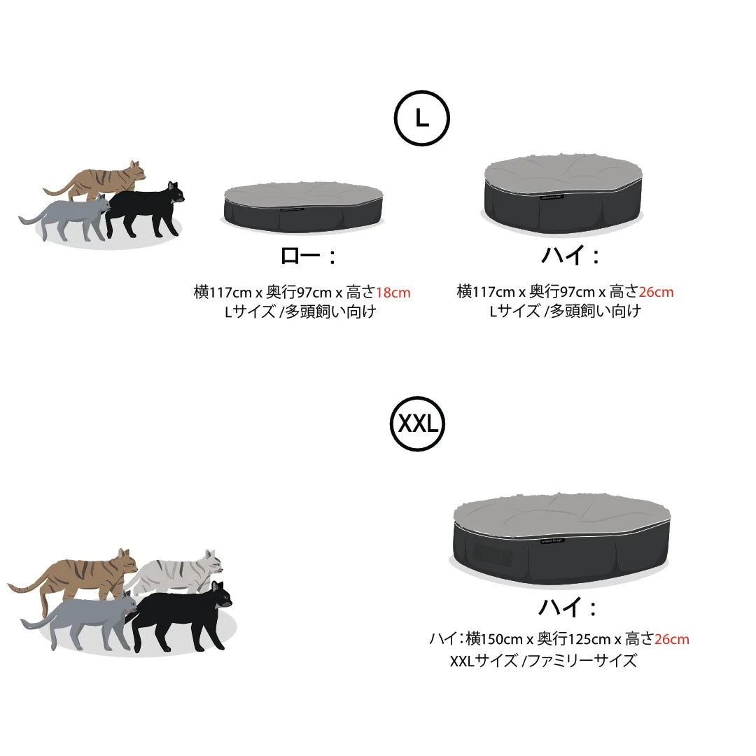 動物専門家の監修により、細部まで設計されたプレミアムなペットベッドです。取外し可能なカバーに加え、本体には撥水加工を施しているためお手入れが簡単で、常に清潔さを保てます。低反発ウレタン、ビーズ、ウレタンフォームを組み合わせたデザインで愛猫の身体にぴったりフィットし、ビーズが柔らかな感触を加えます。このベッドは、柔らかさと適度なサポート感を求めるペットに最適です。また、噛み癖のある子でも安心な、高密度1200デニールナイロンを使用したタフな設計も魅力。心地よさが猫のライフタイムで続く、愛猫にも飼い主にも優しいサステナブルな一台です。