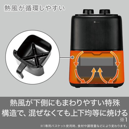 食用油の替わりに熱風を循環させ、オイルフリーで調理ができる