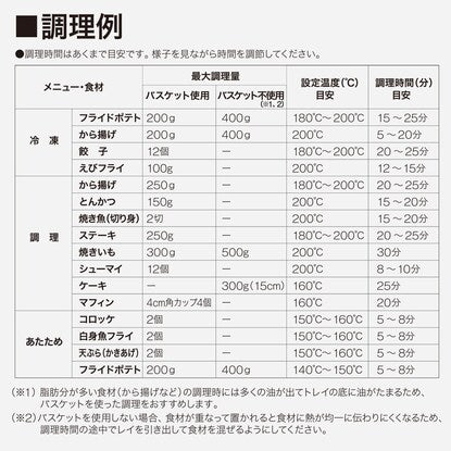 ※専用バスケット使用時、食材や調理量などにより変わります。