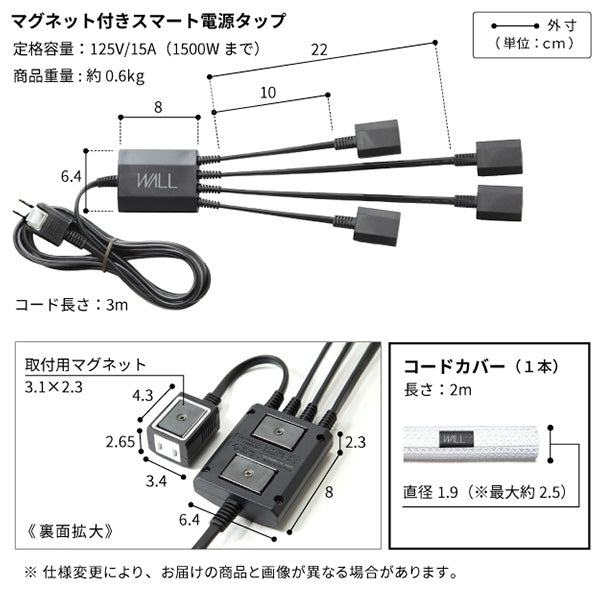 煩雑な配線を全てスマートにまとめるマグネット付きスマート電源タップとコードカバーです。テレビの配線をまとめてWALL商品を美しく設置することができます。
