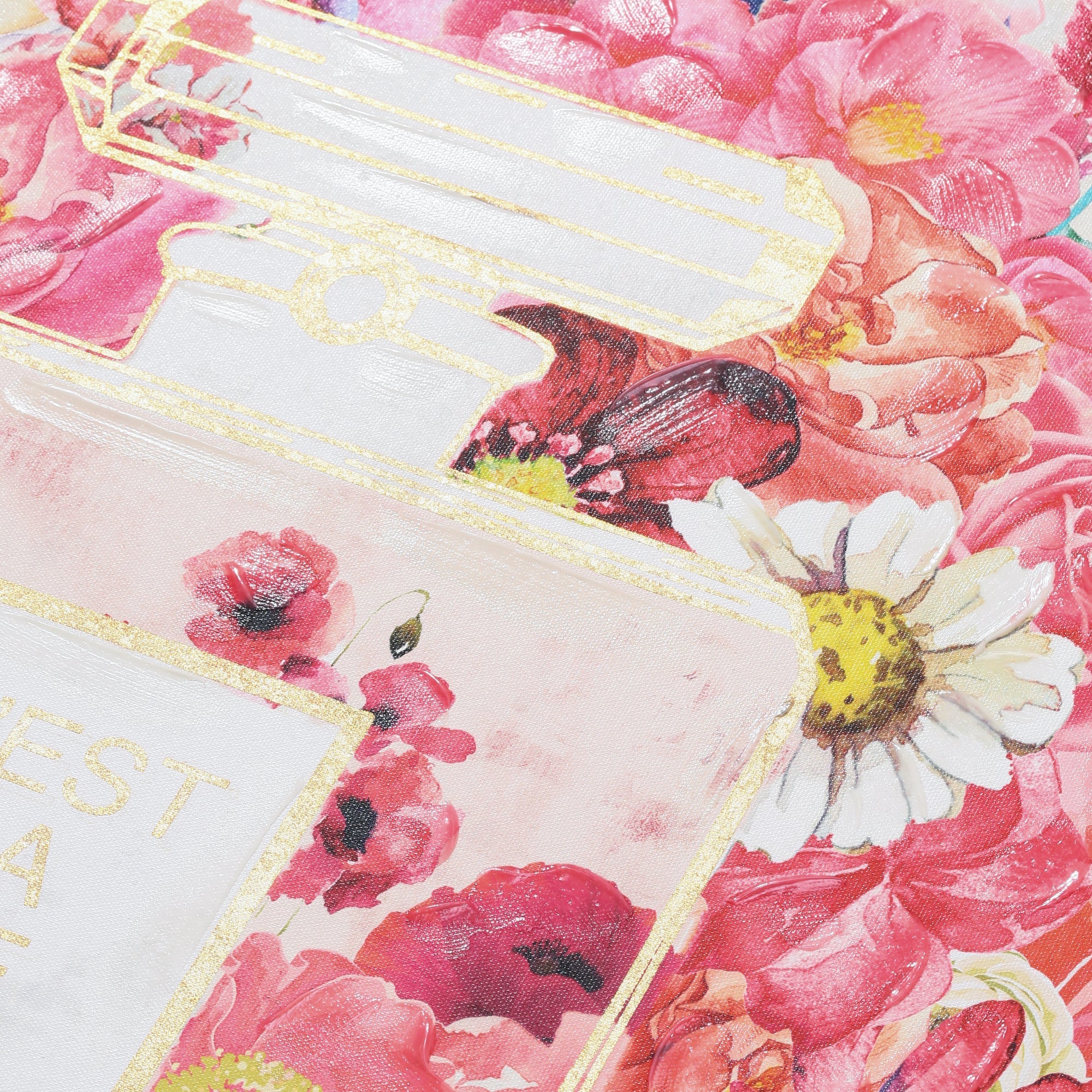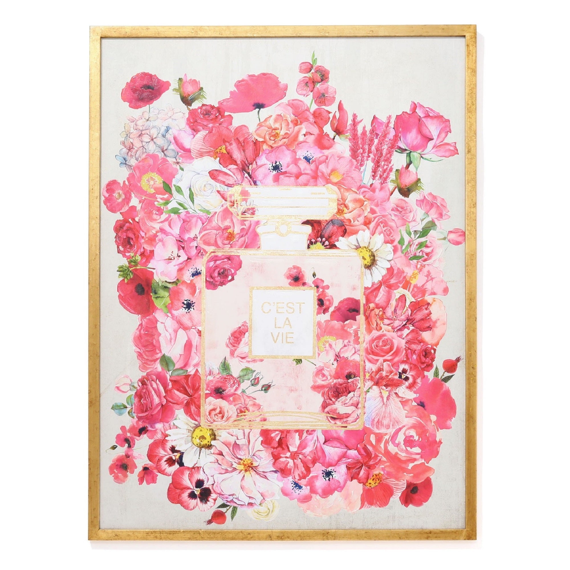 香水からお花の香りが溢れ出るようなイメージのアートボードです。 C’EST LA VIEというフランス語はこれが人生という意味が込められています。 ビンテージ加工された枠部分が一層お洒落な雰囲気を演出します。