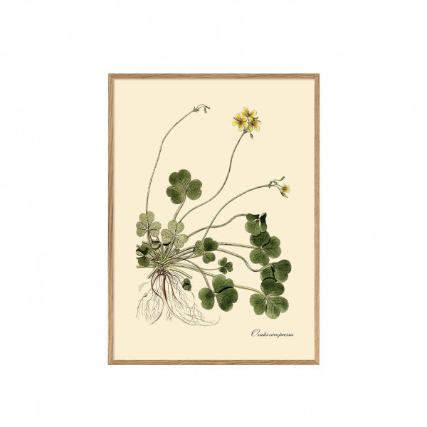 アイコニックな植物コレクションは、美しいヴィンテージ風の植物ポスターです。微妙な緑がかった色合いと自然な形状が特徴。オリジナルの画像は18世紀まで遡り、デジタル技術によりかつての輝きを取り戻し、ヴィンテージの風合いを再現しています。小さなアート作品として、ノスタルジックでナチュラルなボタニカルタッチを加えてくれます。デンマークのコペンハーゲンにあるスタジオで、マットなハーネミューレ紙に日本のアーカイバル・インクで印刷されています。オキザリスのシャムロック(3つ葉のクローバー)がどの家庭にも幸運と喜びをもたらすでしょう。【フレーム付き】