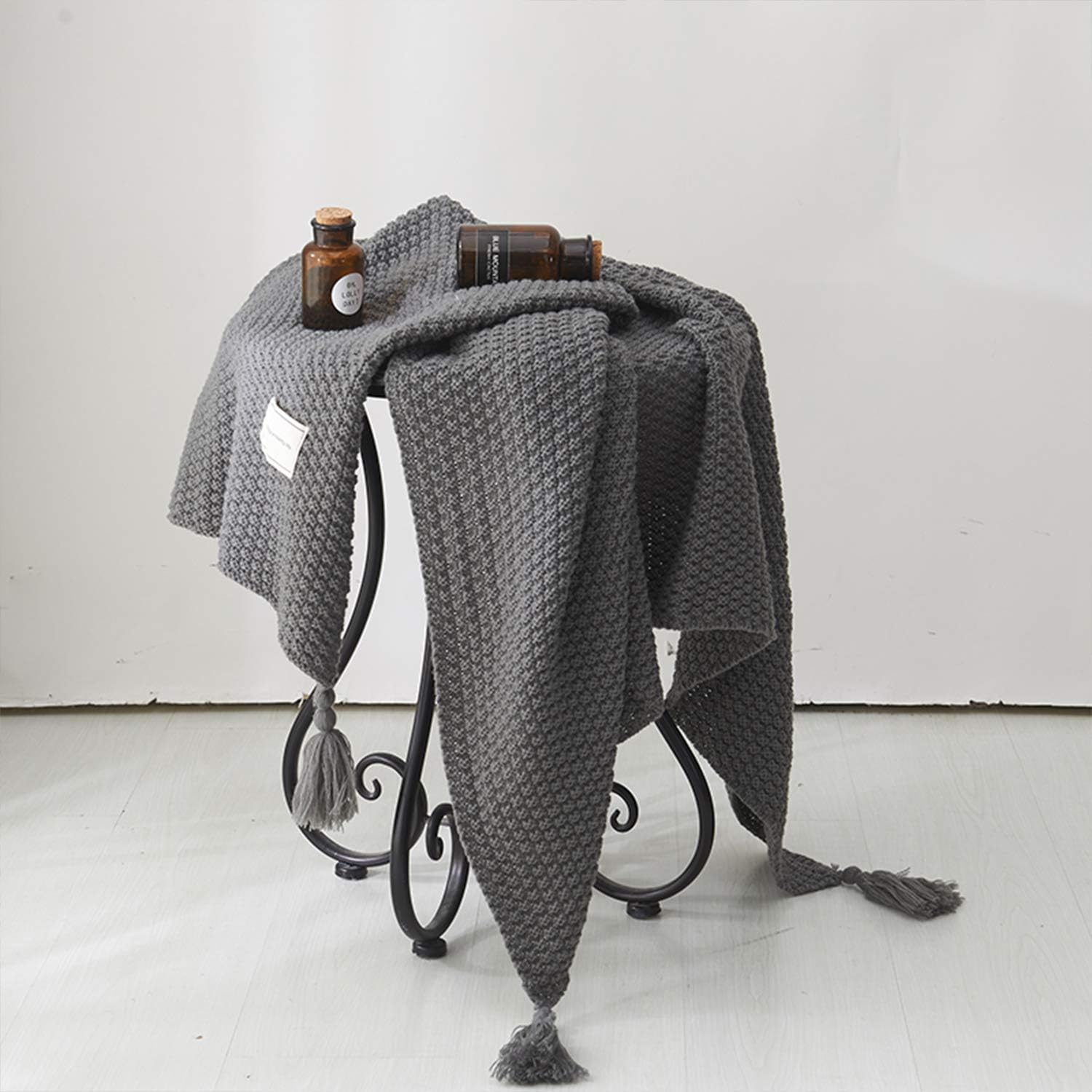 冬の膝掛けや肩掛け、ベッドに敷き毛布、夏のオフィスの冷房で体が冷えてしまった時など、いろいろなシーンで大活躍するブランケットです。フリンジ付きで可愛いデザインになっています。