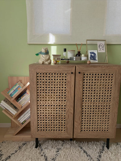 ラタン調キャビネット リビング収納