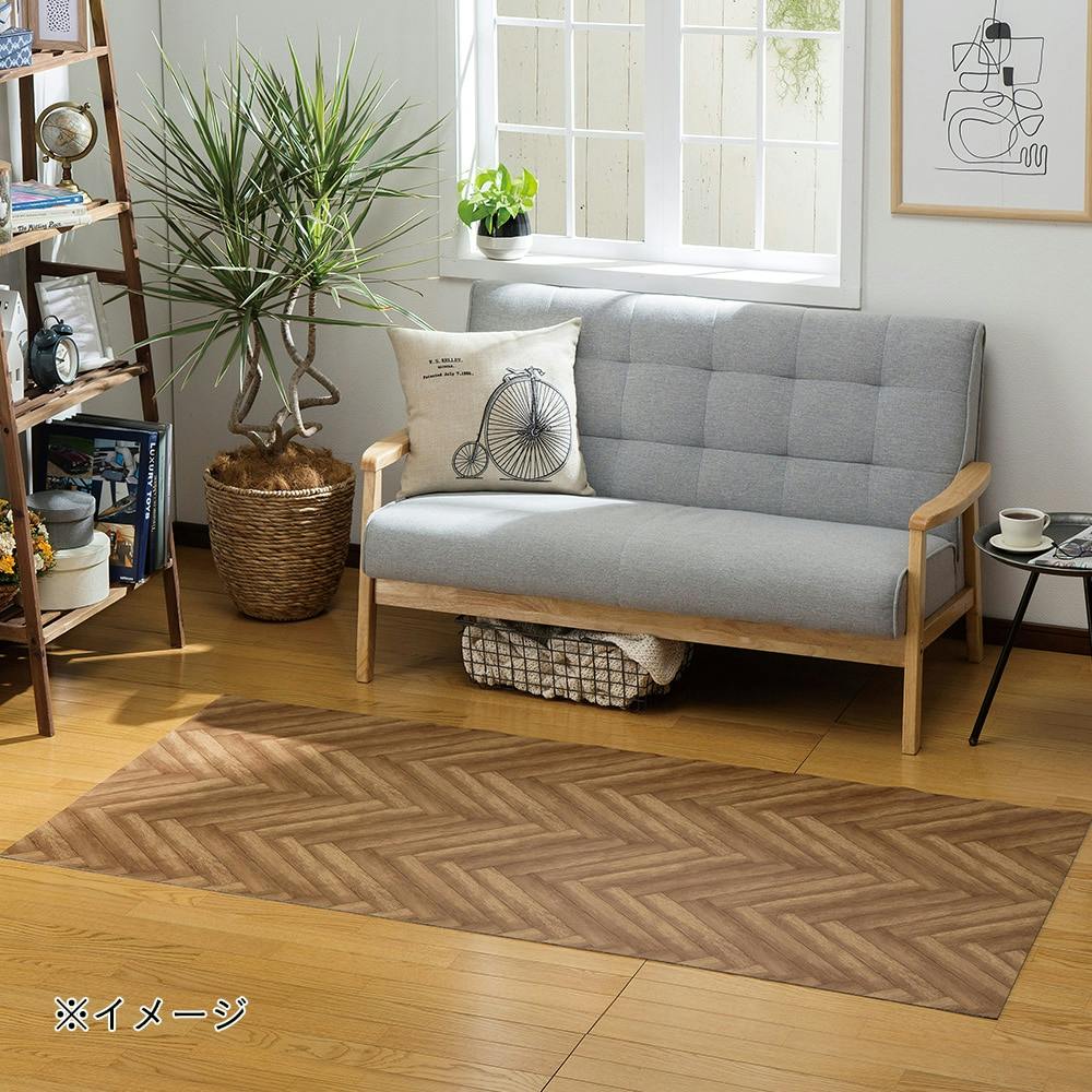 ズレにくいロングマット ヘリンボン ブラウン 90×180