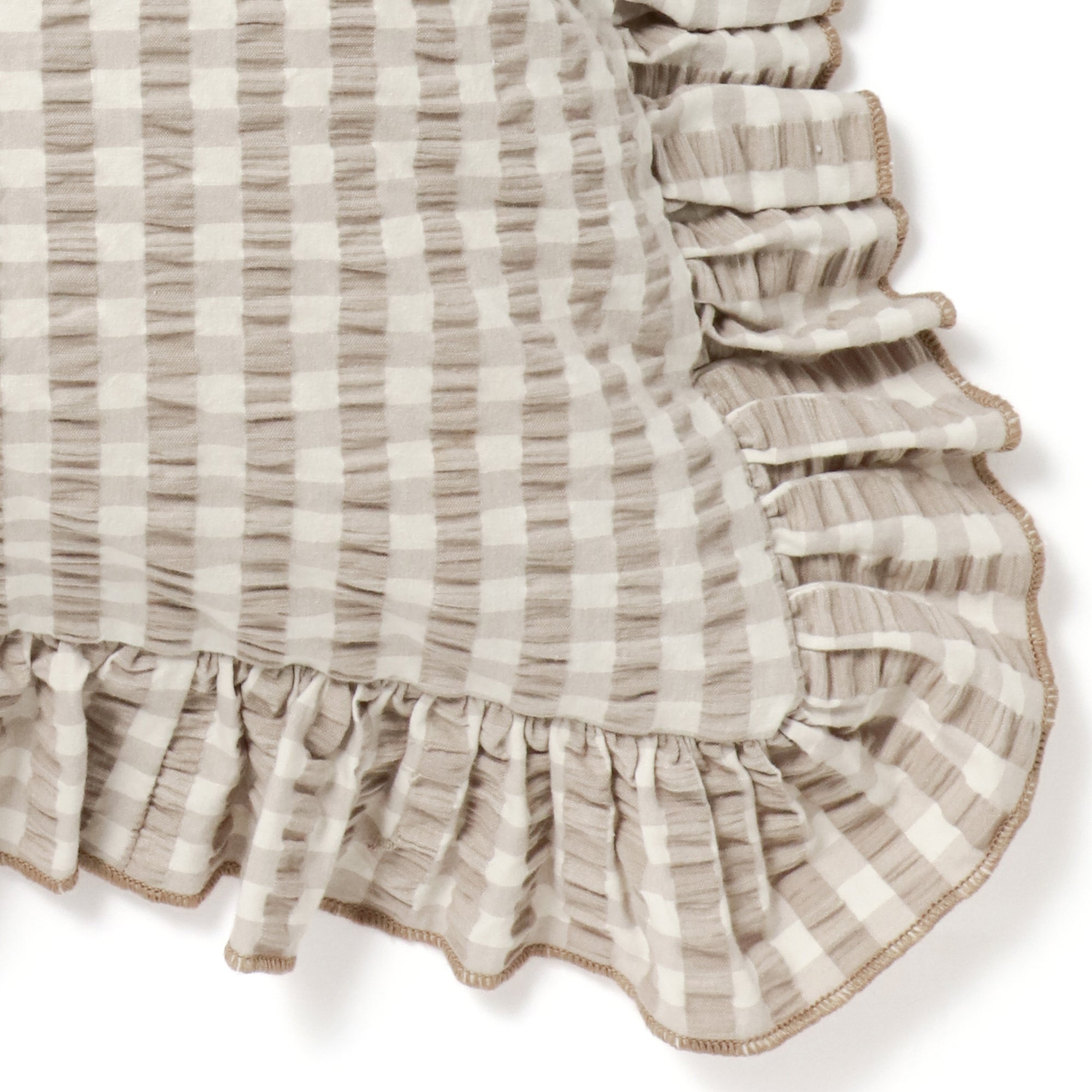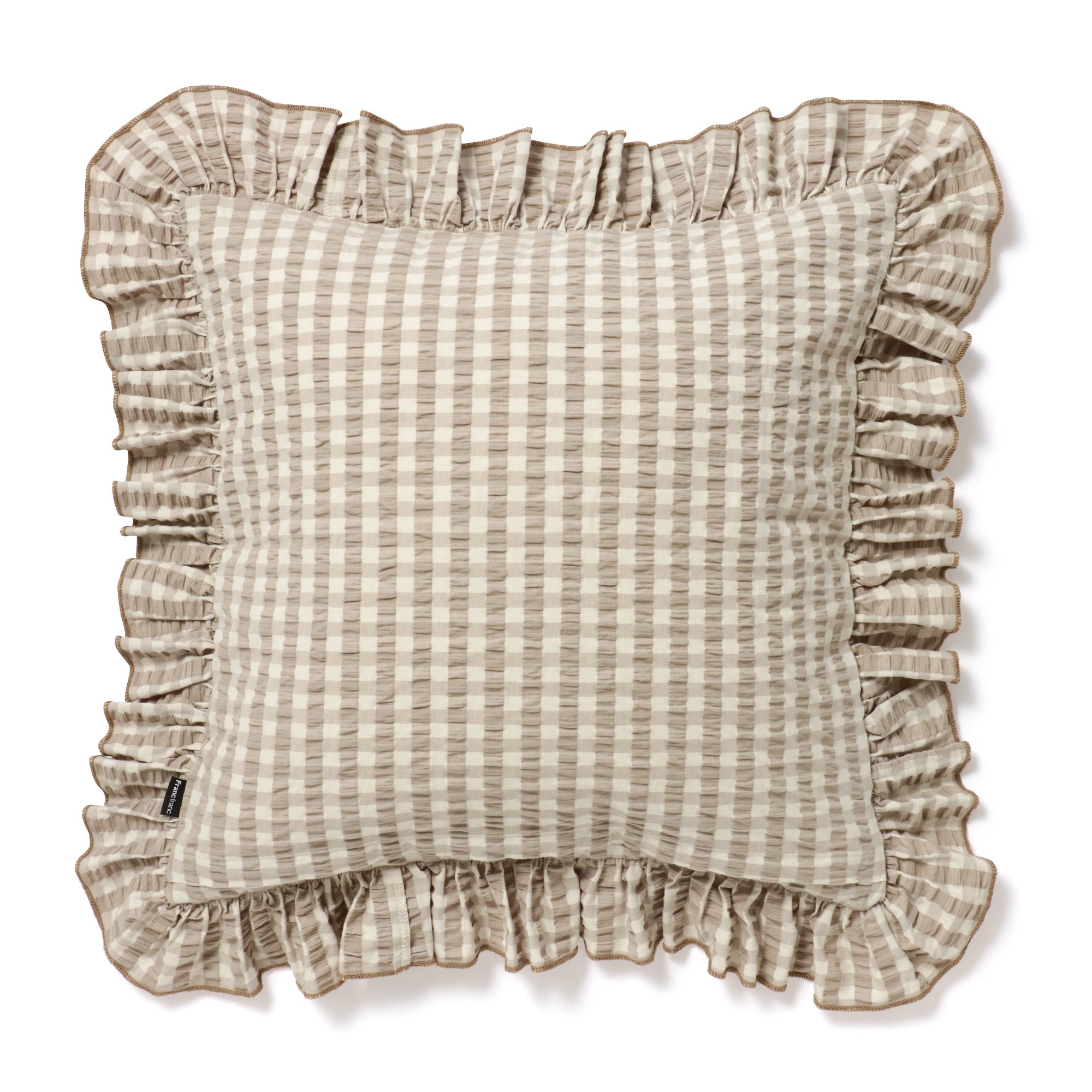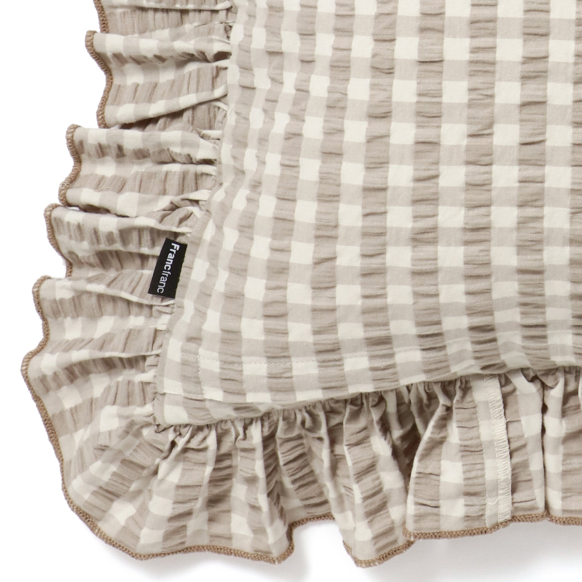 フリルチェック クッションカバー 450×450 ベージュ(020)