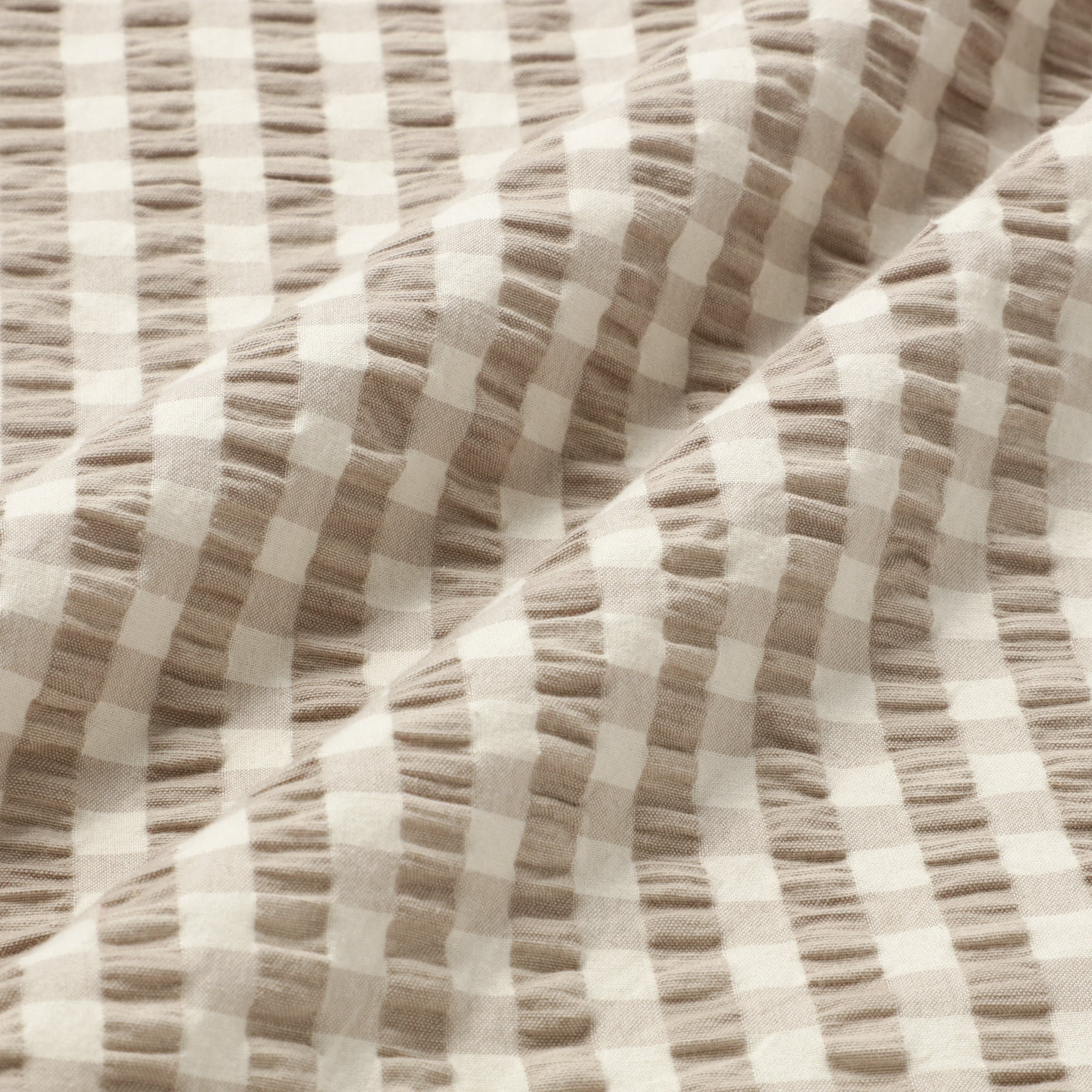 ギンガムチェック柄のシアサッカー生地の周囲にフリルを贅沢にあしらったトレンド感のあるクッションカバーです。スイートなコーディネートにおすすめです。▼クッションカバーの中材(別売り)はこちらクッションヌード一覧サイズW450×D450mm素材本体・フリル:コットン100%、ロック糸:ポリエステル100%重量0.2 kgカラーBE品番 1102010050019 全国一律550円(税込)です。雑貨の商品金額合計が5,000円(税込)以上の場合、送料無料で配送いたします。※手数料、ラッピング料、付帯サービス料は含みません。※新生活期・年末年始は出荷や配送の繁忙期となるため、日時指定をいただいてもご希望日時通りお届け出来ないことがございます。■洗濯:手洗いのみ可■ドライ:不可■乾燥機:不可■アイロン:可■撥水加工:無■お手入れの際は外観変化や他への色移りを避けるため、洗濯機の手洗いコースではなく、手洗いで単独でやさしく押し洗いをしてください。■もみ洗いはお避けください。■水洗いにより縮みます。形を整えて陰干ししてください。■素材の特性上、摩擦や手洗いにより、毛羽立ち・毛羽抜け・毛玉が発生します。■原産国:インド