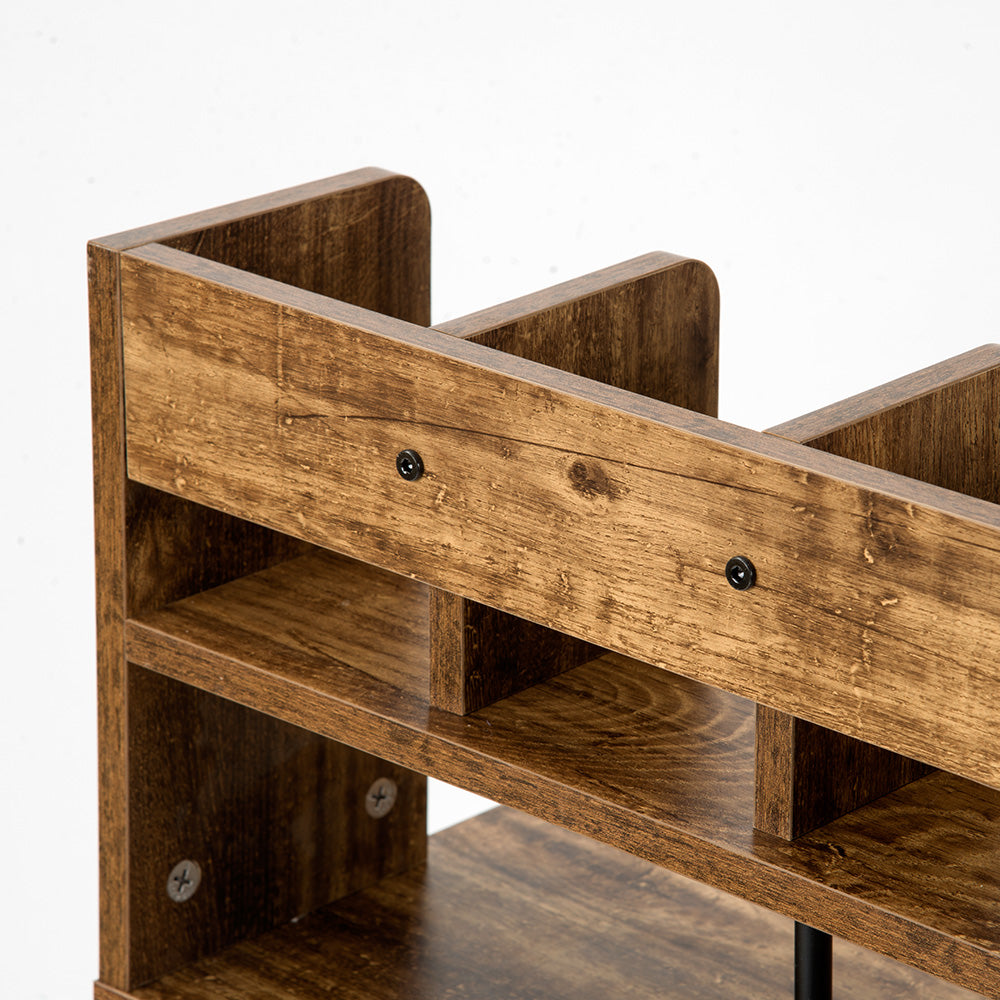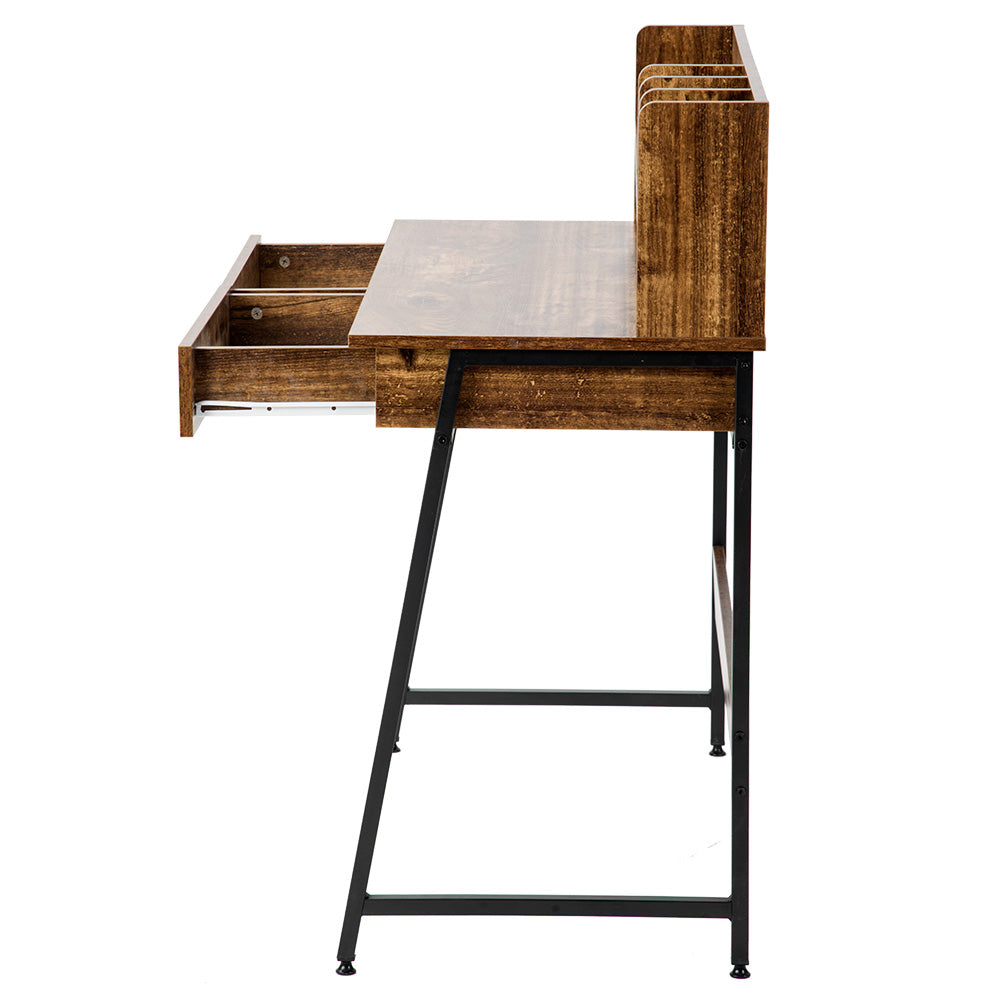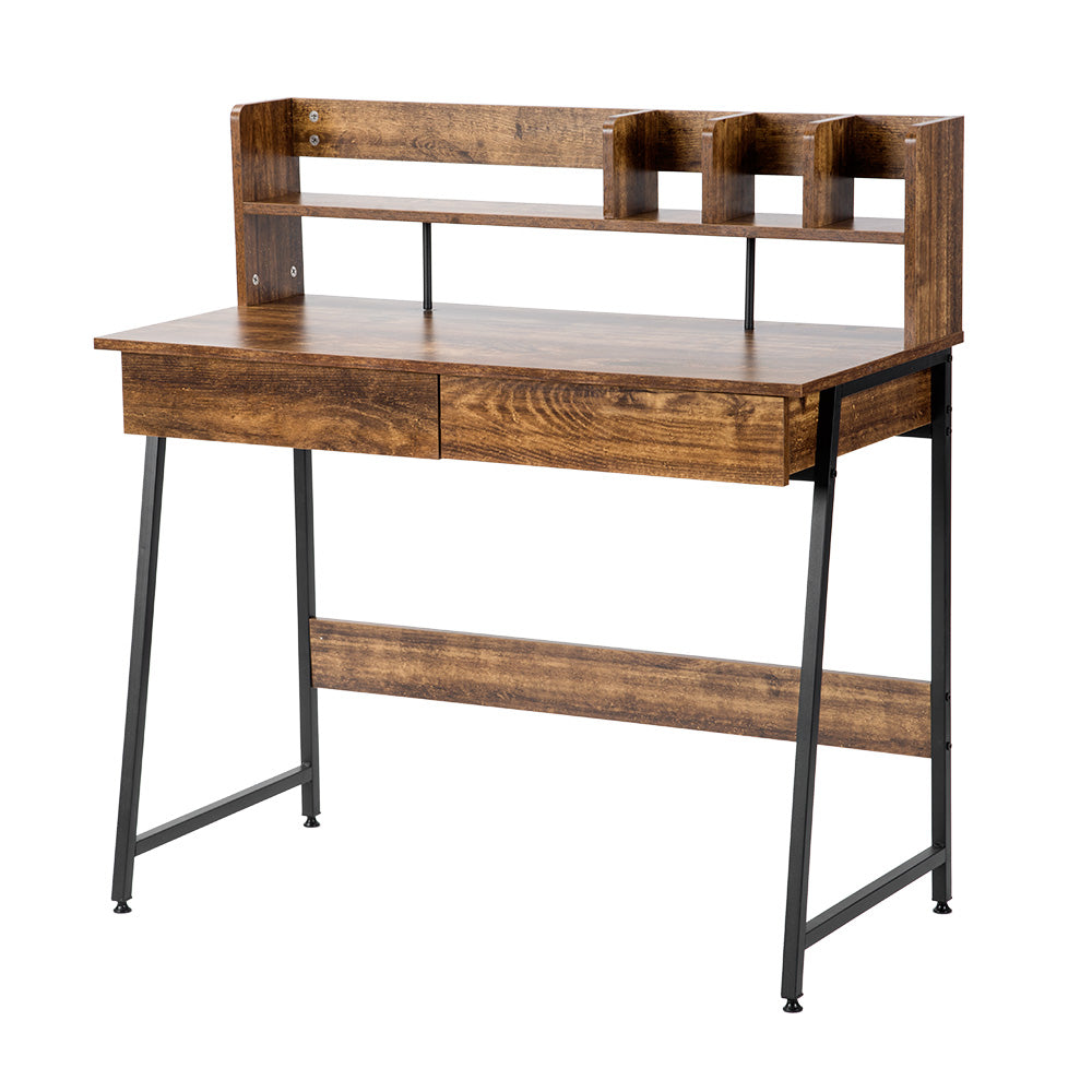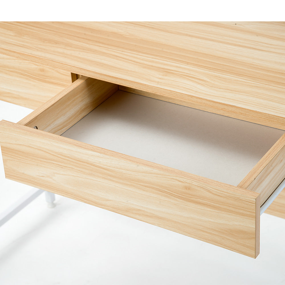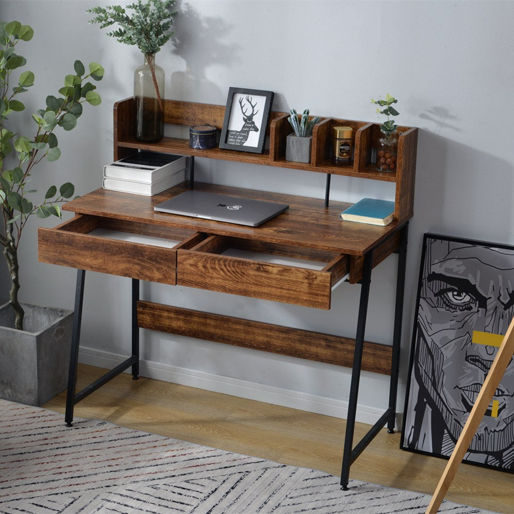 木目風収納台付きワークデスクは、スタイリッシュで機能的なデザインが魅力のデスクです。3色展開で、どんなインテリアにもマッチします。デスク上部には便利なラック収納があり、本や小物をすっきり整理。メラミン化粧板を使用し、傷や水に強く、長持ちします。スムーズな開閉が可能な引き出し付きで、スライドレール採用でストレスフリー。リアルな木目調とスチール脚の組み合わせがモダンな印象を演出。アジャスター付きの脚で安定性も抜群。幅100cm、奥行48cm、高さ102.5cmとコンパクトながら十分な作業スペースを確保。ホームオフィスや勉強スペースに最適なデザインと機能性を兼ね備えた一品です。