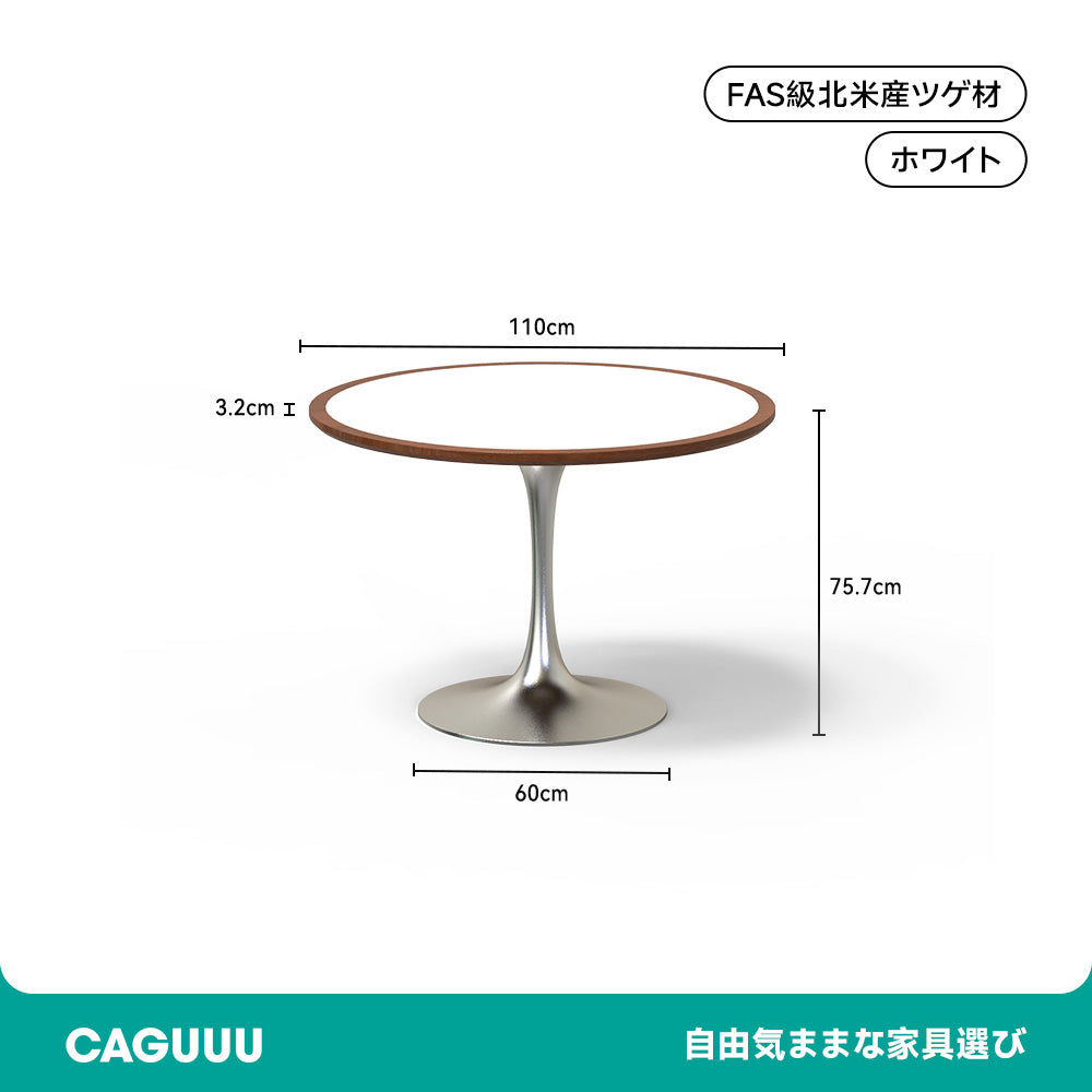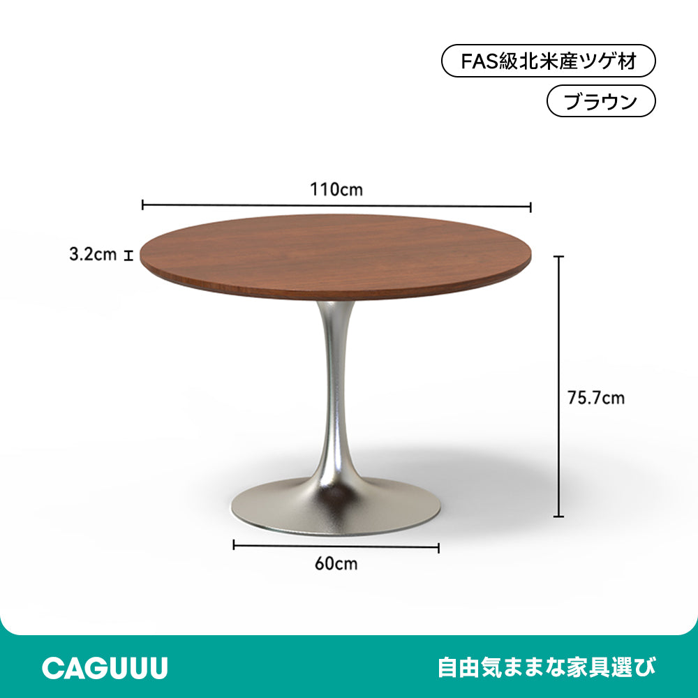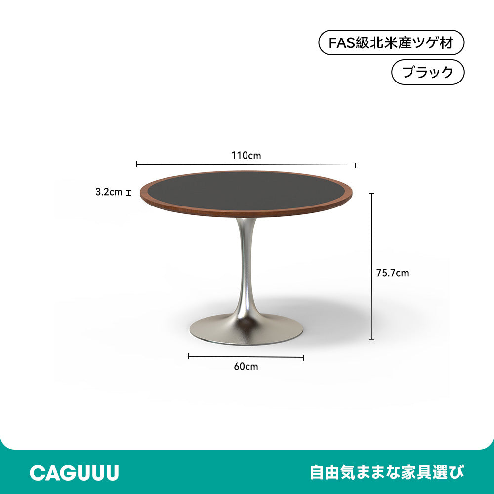 高品質なFAS級北米産ツゲ材を使用したラウンドテーブル。天然木とセラミックの二重構造で耐久性抜群。ステンレス製の一本脚が安定感を提供し、350kgまでの耐荷重性を誇ります。美しい木目と滑らかな手触りが特徴で、どんなインテリアにもマッチ。環境に優しい塗装で安全性も確保。家庭の様々なシーンで活躍し、友人との集まりやリラックスタイムに最適なデザインです。