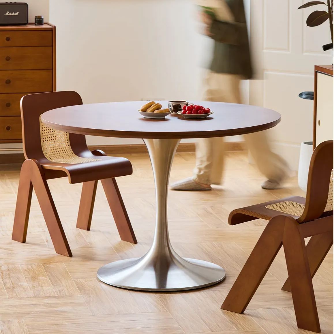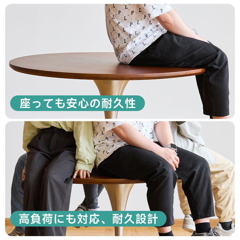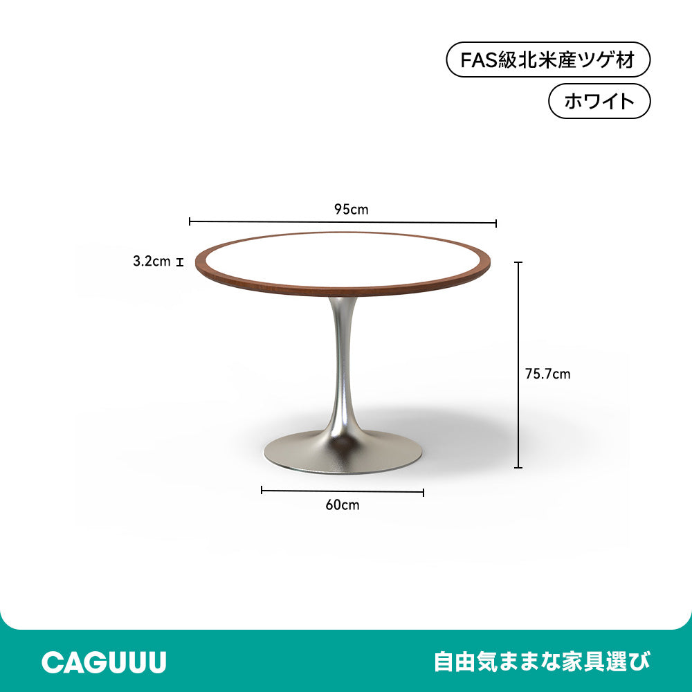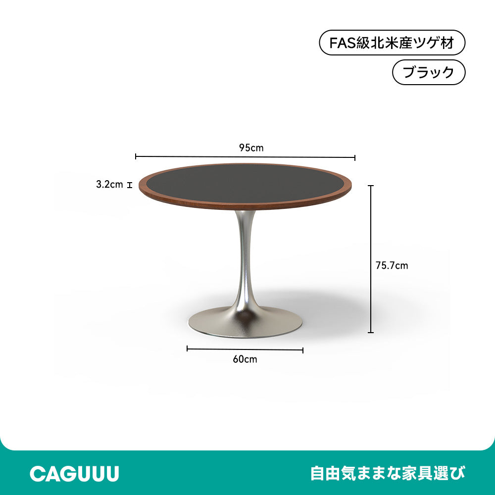 高品質なFAS級北米産ツゲ材を使用したラウンドテーブル。天然木とセラミックの二重構造で耐久性抜群。ステンレス製の一本脚が安定感を提供し、350kgまでの耐荷重性を誇ります。美しい木目と滑らかな手触りが特徴で、どんなインテリアにもマッチ。環境に優しい塗装で安全性も確保。家庭の様々なシーンで活躍し、友人との集まりやリラックスタイムに最適なデザインです。