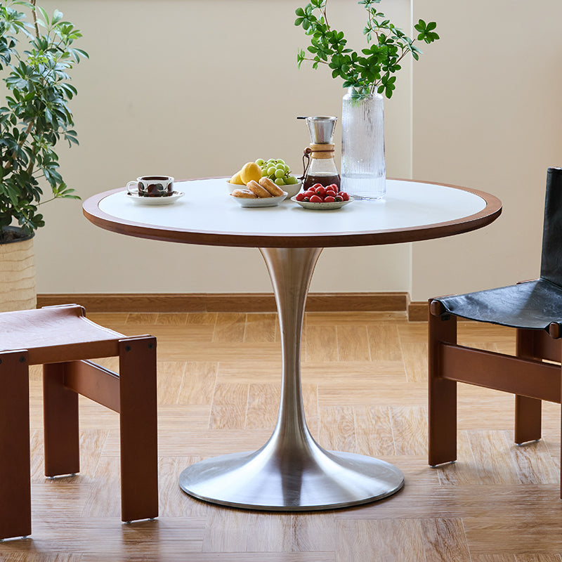 ツゲ材 天然木ステンレス脚ラウンドテーブル