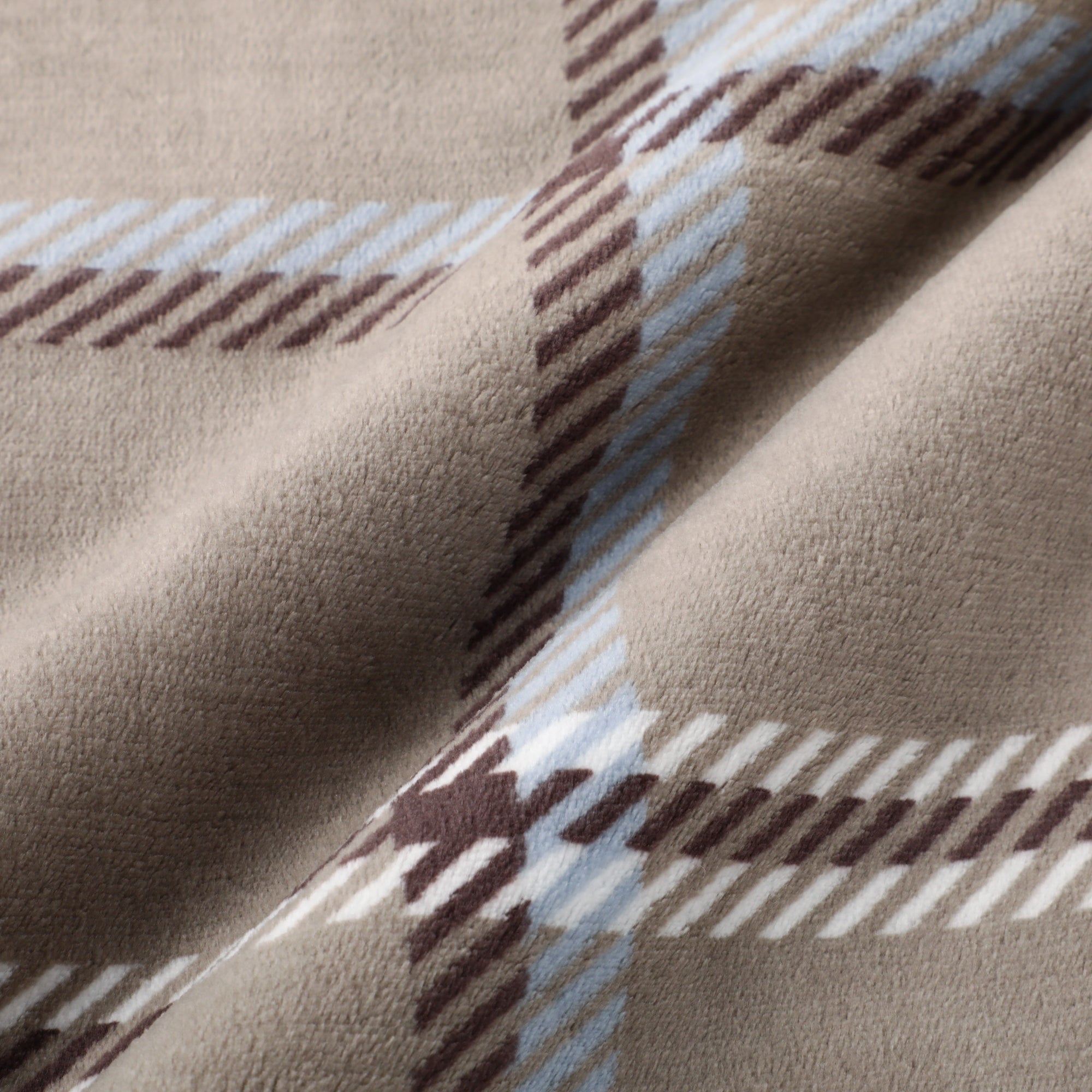 なめらかでやわらかい質感のブランケットです。二重の生地でたっぷりとしたボリュームが感じられ、高級感あふれる一枚です。柔らかい中綿をたっぷり使用しているので通気性に優れ、ふっくら軽い質感が楽しめます。優しく身体を暖めてくれる一枚です。