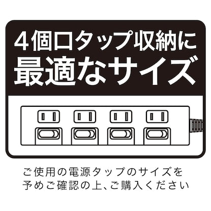 ケーブルタップごとボックスに入れてふたをするだけ 配線をスッキリ整理 4個口タップに最適なサイズ ※ご使用の電源タップのサイズを予めご確認の上、ご購入ください。■サイズ(約):32×14.5×10.5cm ■材質:ペーパー【取り扱い上のご注意】 ・本品は、電源タップ、ケーブルを収納するものです。他の用途には ご使用にならないでください。 ・本品の中で、電源タップやアダプターのケーブルを束ねて使用しないでください。 ・本体側面の穴は、内部の熱を外に放出するためのものです。 ・本体の上にのらないでください。 ・電源タップ、ケーブル、アダプターの破損・損傷については、一切の責任を負いかねます。 ・高温・多湿・直射日光は避けてください。 ・水の近くで使用しないでください。 ・乳幼児の手が届かないところに保管してください。 ・本品はトラッキング現象を完全に防止するわけではありません。