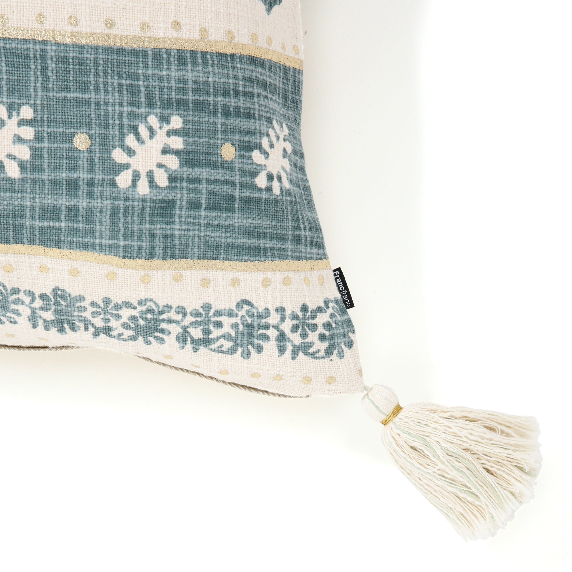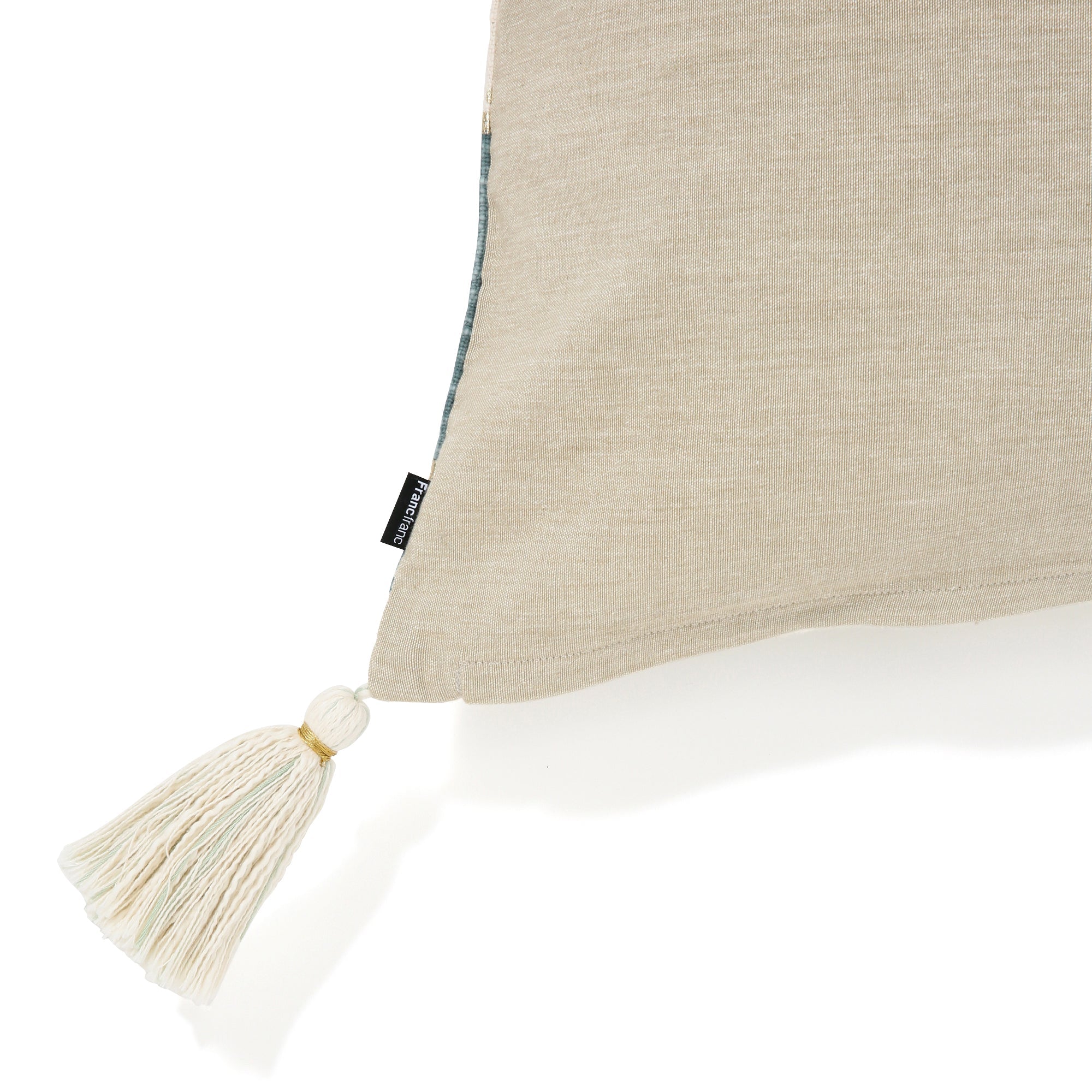 大きめのタッセルが目を引くクッションカバーです。ざっくりと織られたスラブ生地にきらきらな箔プリントと落ち着きのあるカラープリントを施したデザインです。お部屋のワンポイントにもおすすめです。▼クッションカバーの中材(別売り)はこちらクッションヌード一覧サイズW1000×D450mm素材コットン 100%カラーBL品番 1102010018972 全国一律550円(税込)です。雑貨の商品金額合計が5,000円(税込)以上の場合、送料無料で配送いたします。※手数料、ラッピング料、付帯サービス料は含みません。※新生活期・年末年始は出荷や配送の繁忙期となるため、日時指定をいただいてもご希望日時通りお届け出来ないことがございます。●洗濯:不可●ドライクリーニング:不可■タンブル乾燥:不可■アイロン:不可■製品の特性上、サイズや柄・箔プリント部の濃度などに多少のばらつきがあります。■素材の特性上、直射日光やライトに長時間照らされると、変色する場合があります。■色落ちしたり、他に色移りすることがあります。特に濡れた状態での摩擦にご注意ください。■白や淡色製品との組み合わせての使用はお避けください。■摩擦により毛羽立ち・毛羽抜け・毛玉や箔プリントの剥がれが発生することがあります。■ソファや床の種類によっては箔プリントが貼り付いたり剥がれることがあります。定期的に点検し長期間密着したままにしないでください。■装着の際は強い力で引っ張らないでください。■タッセル部分は引っ張ったりしないでください。■外観が変化する場合がありますので、水洗い・ドライクリーニングはできません。■汚れた場合は固く絞った布等で軽く拭き取ってください。