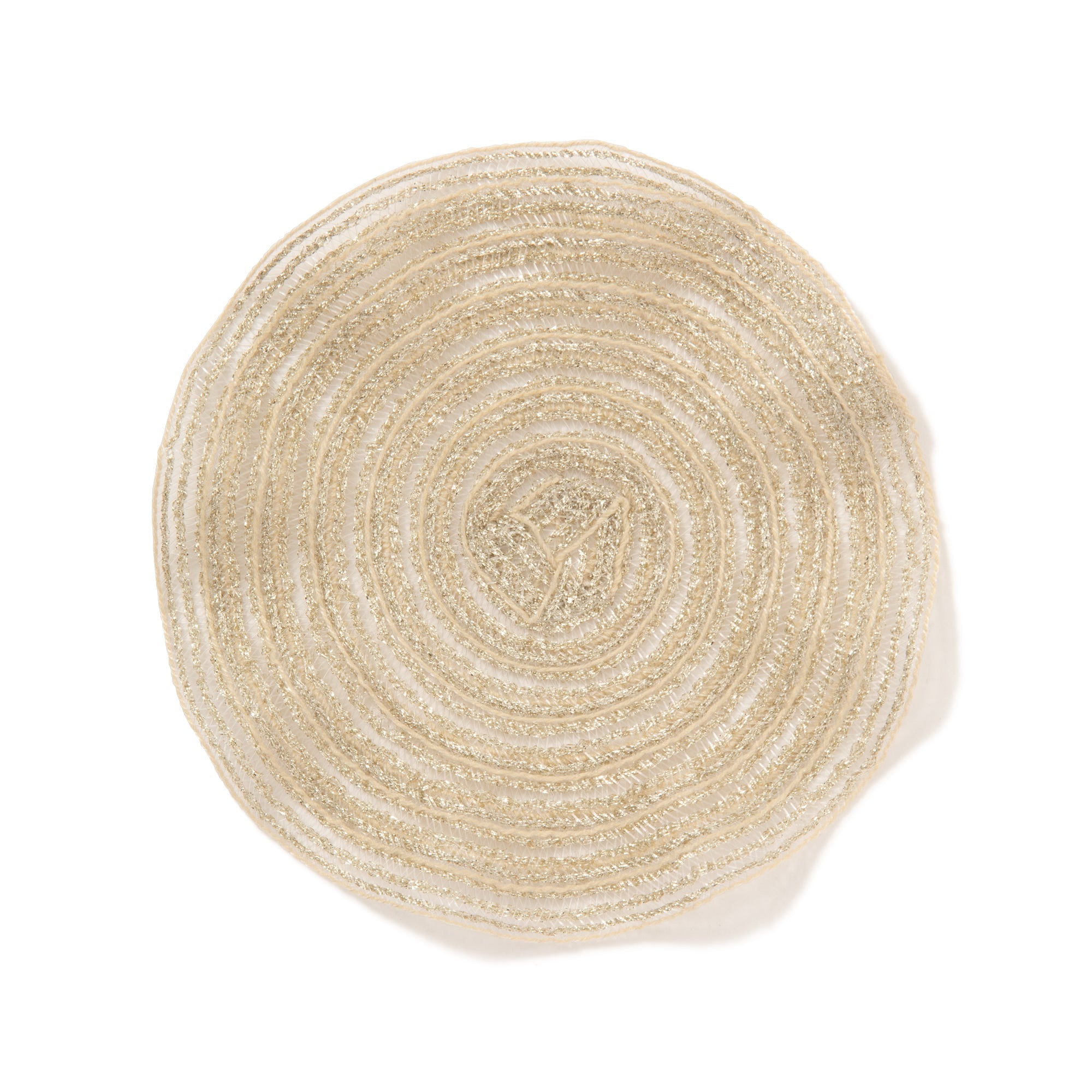 円形で、フリルのようなあしらいが華やかでフェミニンなコースターです。マグやグラスを乗せるとフリルがひらひらしてかわいくて癒されます。