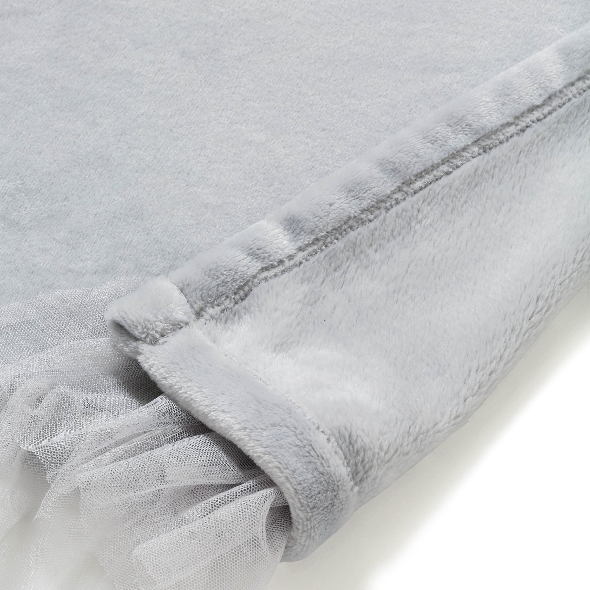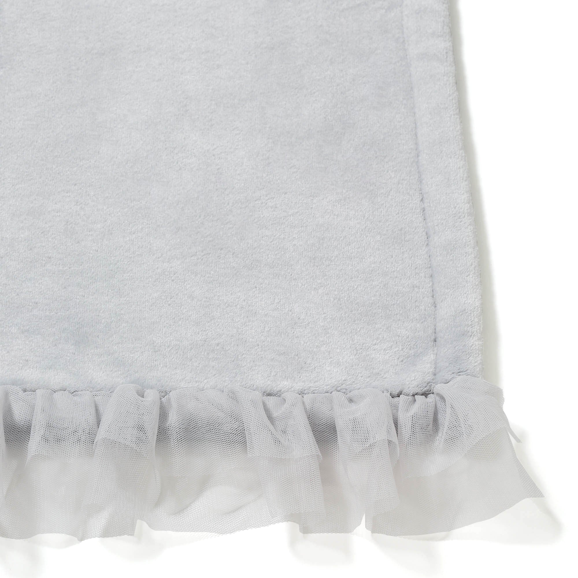 チュールのフリルをあしらった、フェミニンなデザインのマイクロファイバー素材のスローです。肌触りが良く、どんなシーンでも使いやすい軽さが特徴です。ソファ周りで使用したり、オフィスや外出先での使用もおすすめです。
