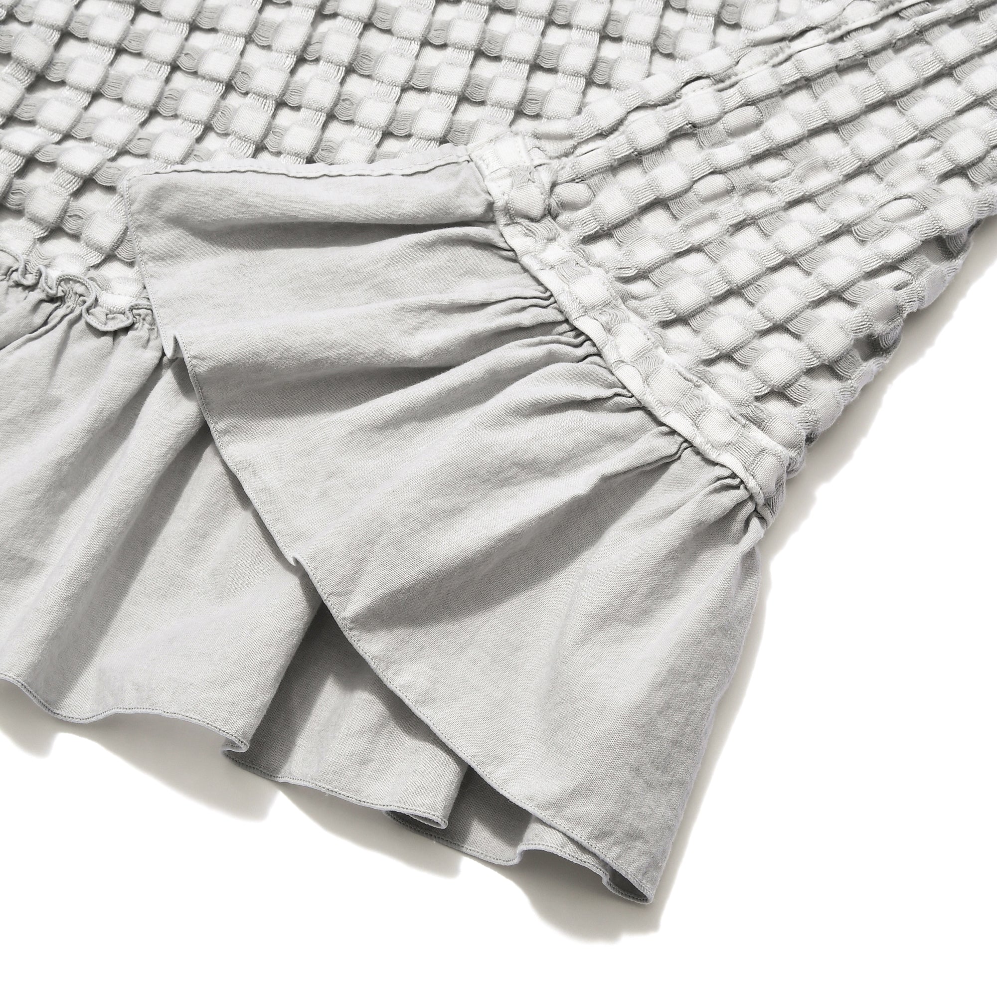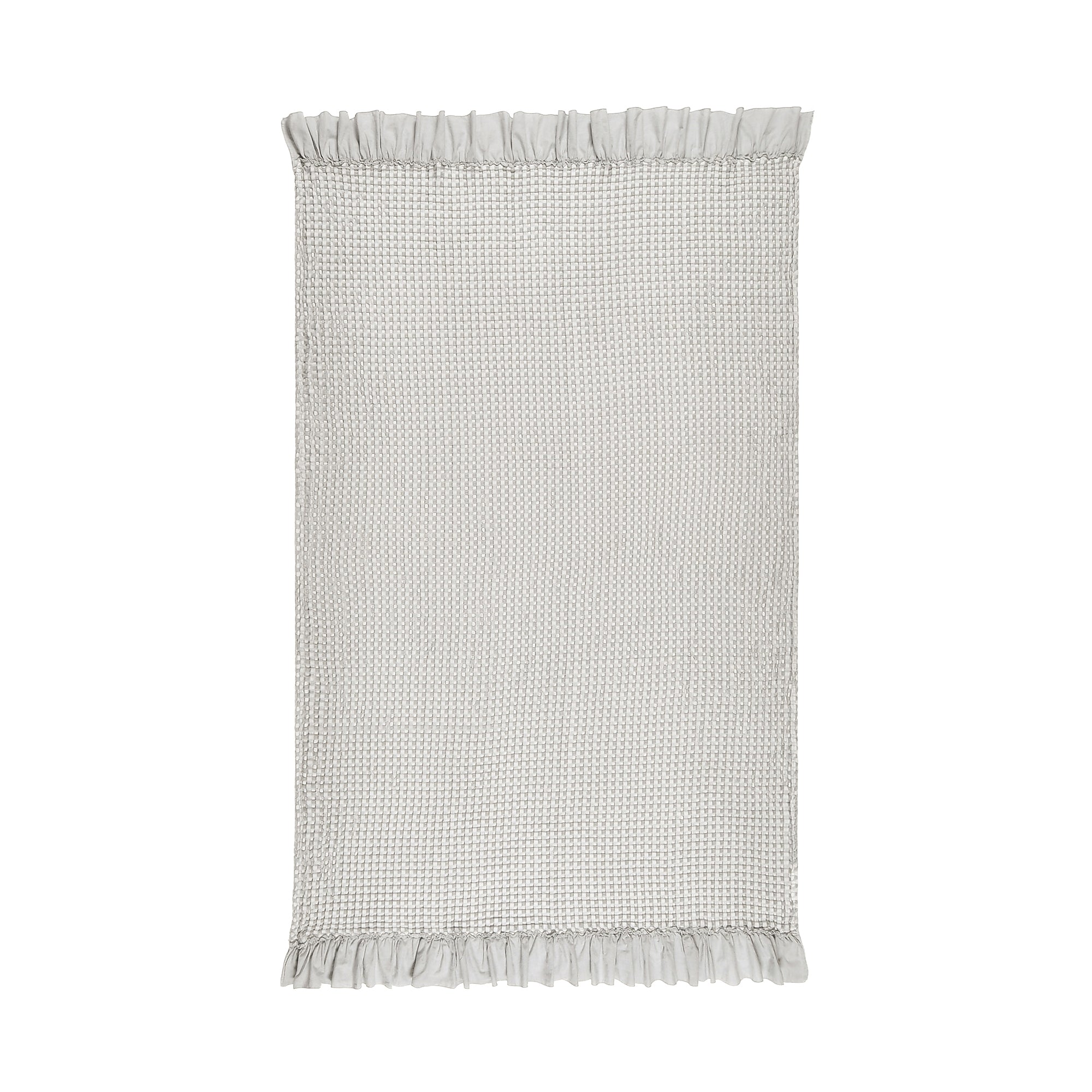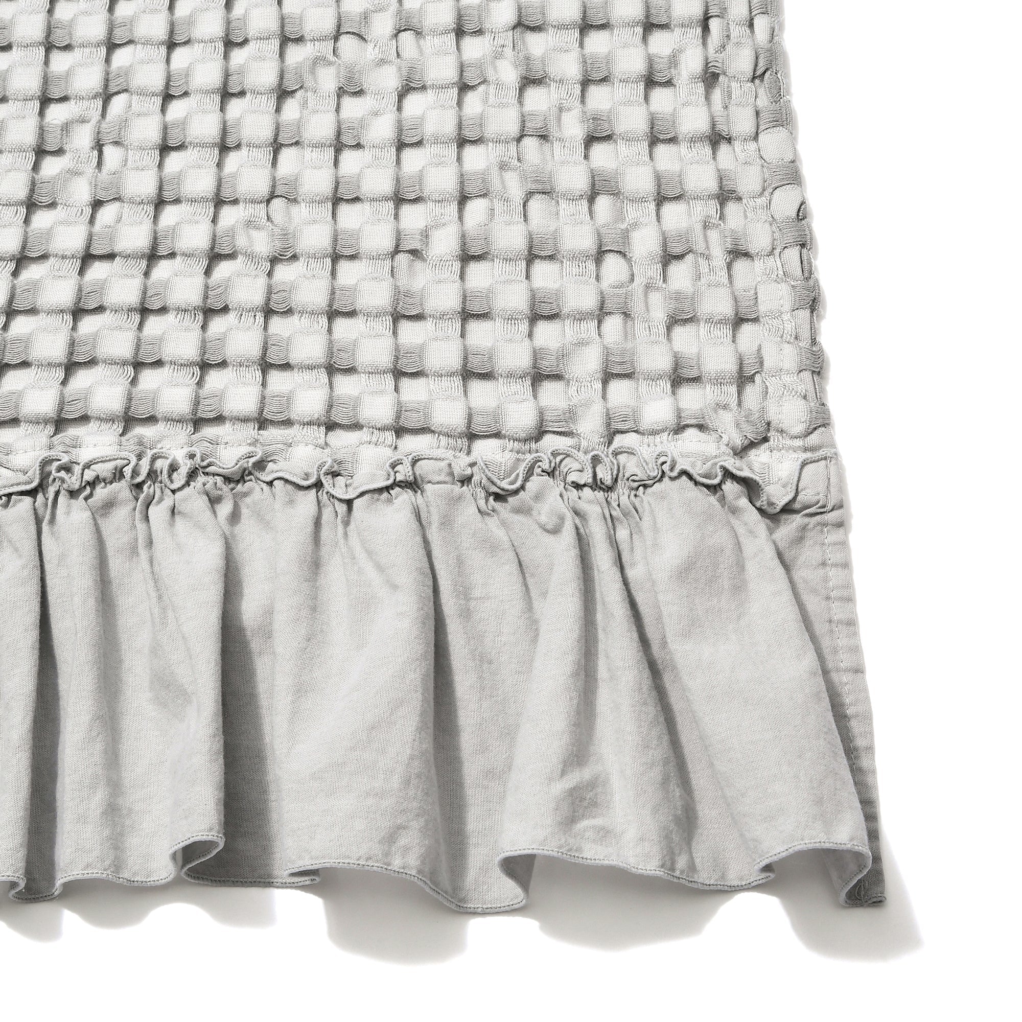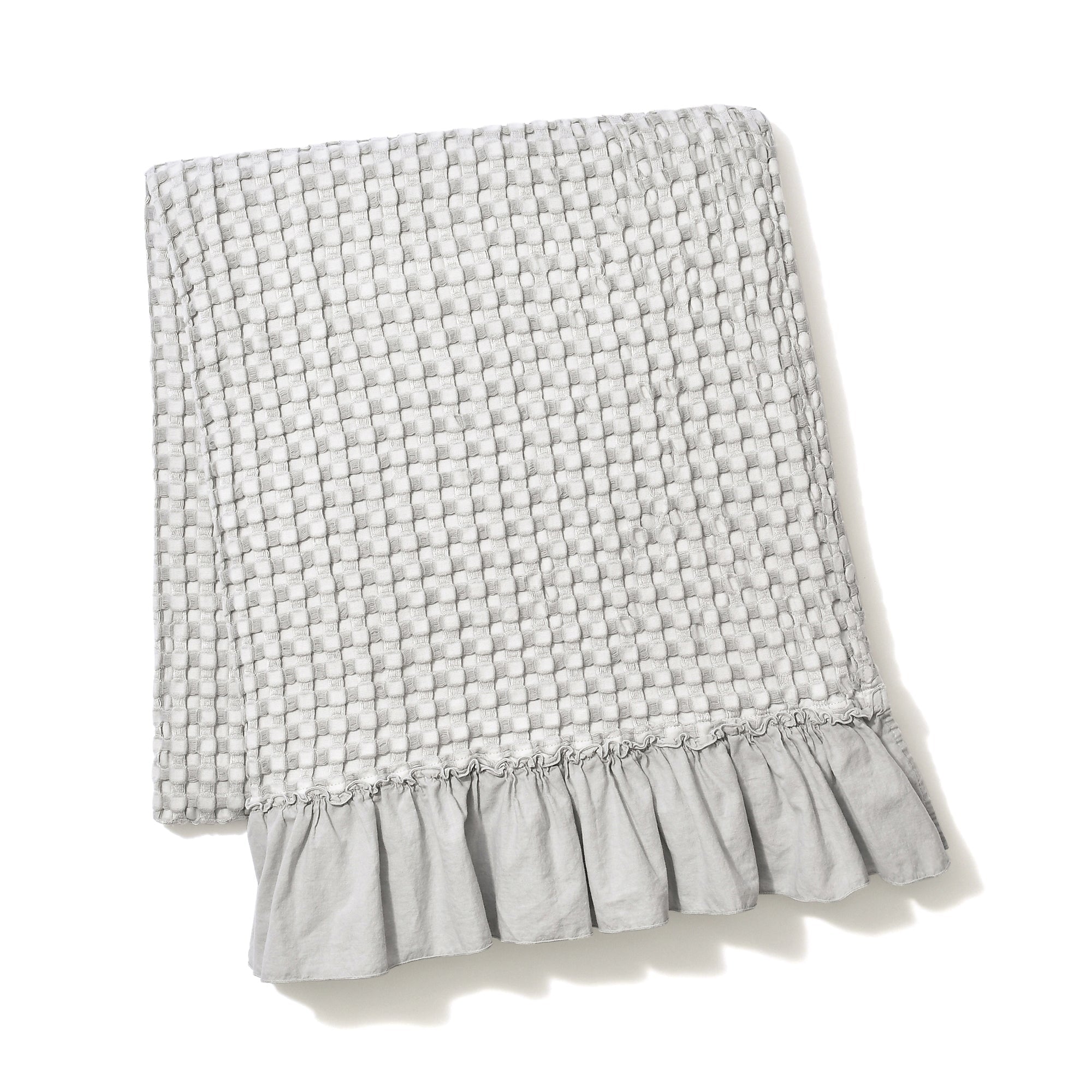 レーヨンを混ぜることでしっとりなめらかな肌触りを実現したワッフル織りのスロー(ひざ掛け)です。大きめのワッフルと両端にあしらったフリルがデザインのポイント。ナチュラルテイストでインテリアに馴染みやすく、夏の冷房対策にもぴったりなアイテムです。