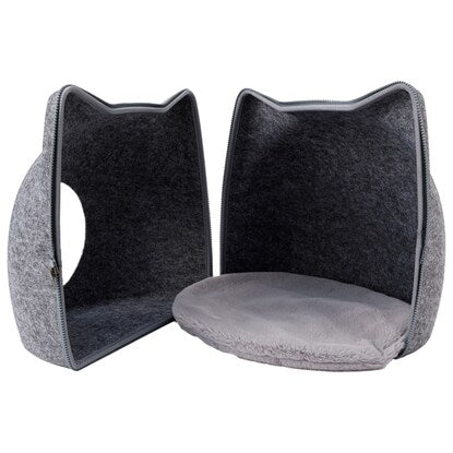 毛が絡まりにくいフェルト生地にファスナーで分割もできて、お掃除が簡単