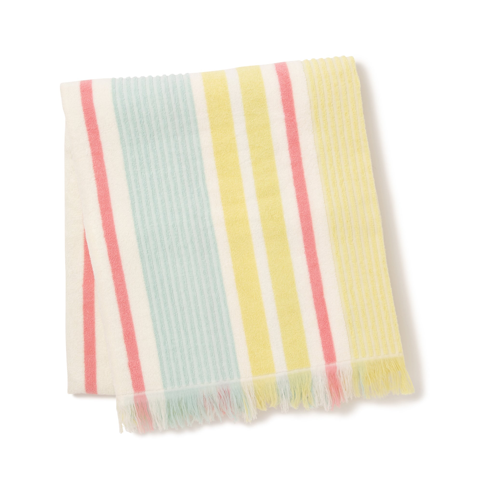 夏の暑い時期にぴったりなタオル生地が気持ちいいタオルケットです。表面は立体感があるパイルのストライプが見た目にも楽しく、それでいてパイル部分は少なめなので涼しげに見えます。お洗濯ができるので、いつでも清潔にお使いいただけます。?※広げた画像はシングルサイズです。