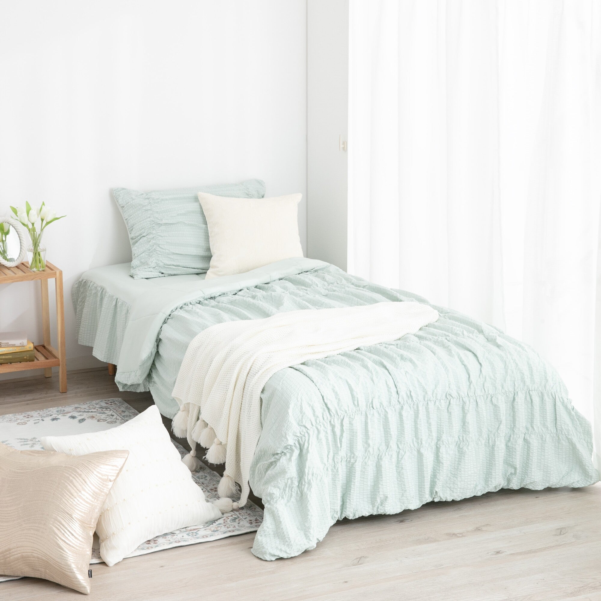 ふわろ 冷感ベッドパッド ギャザー シングル ライトグリーン