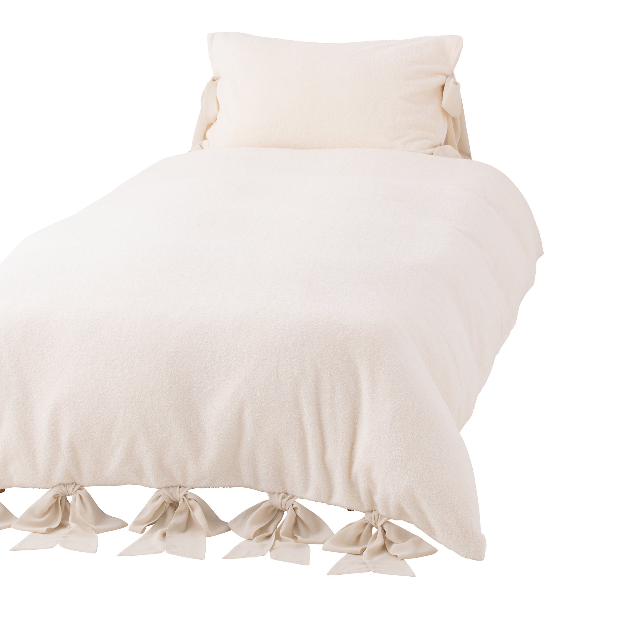 WARMY ホワモコ リボン 掛け布団カバー ダブル アイボリー