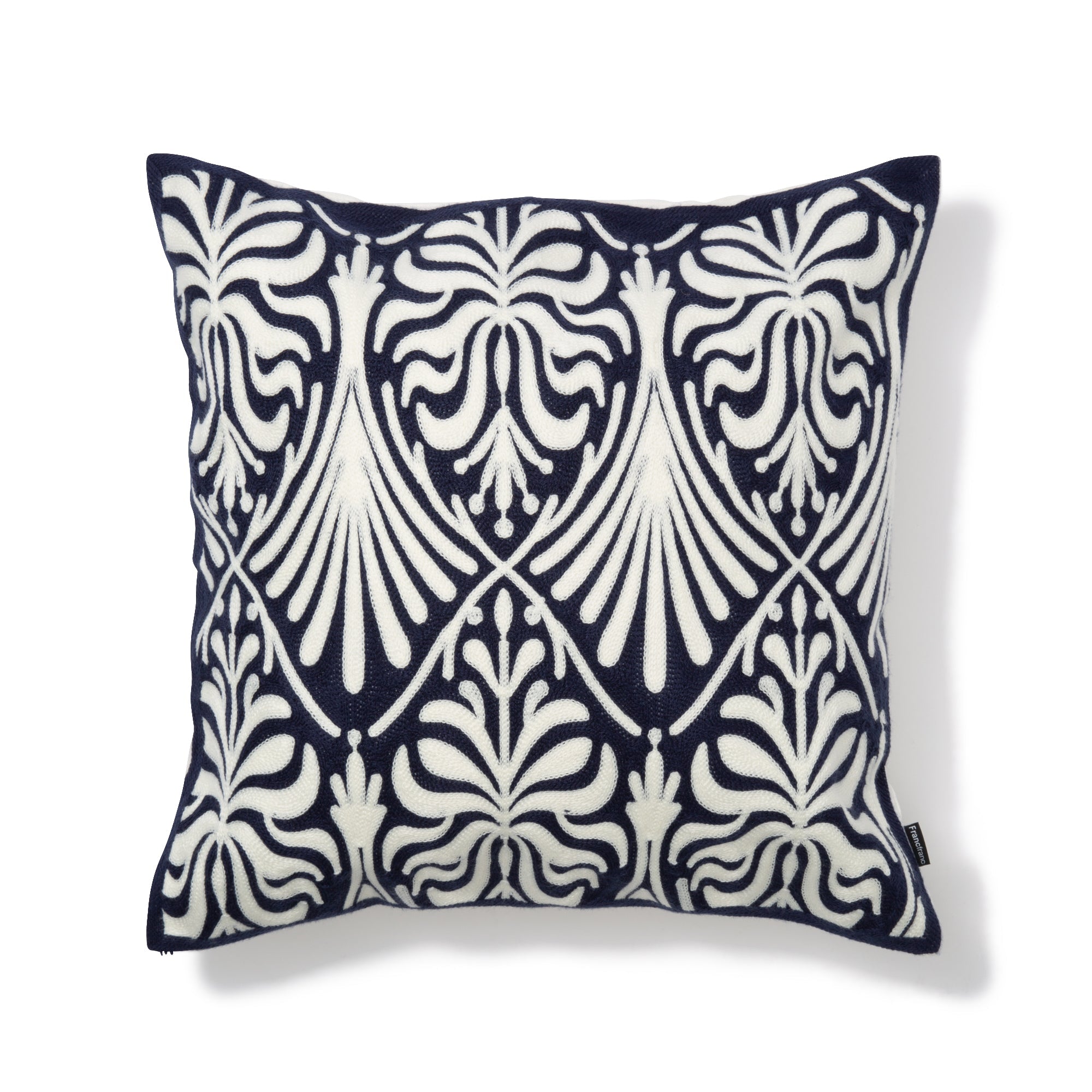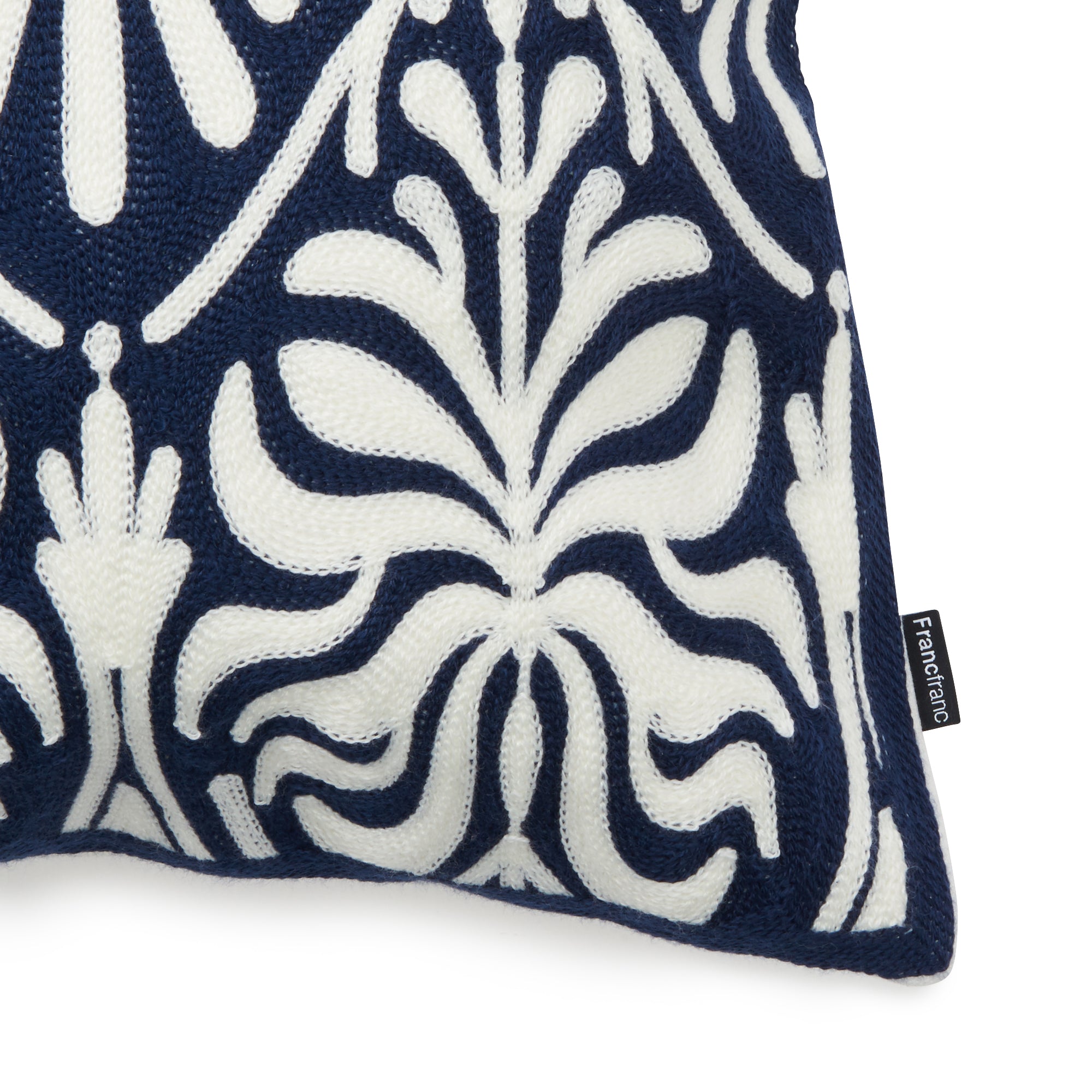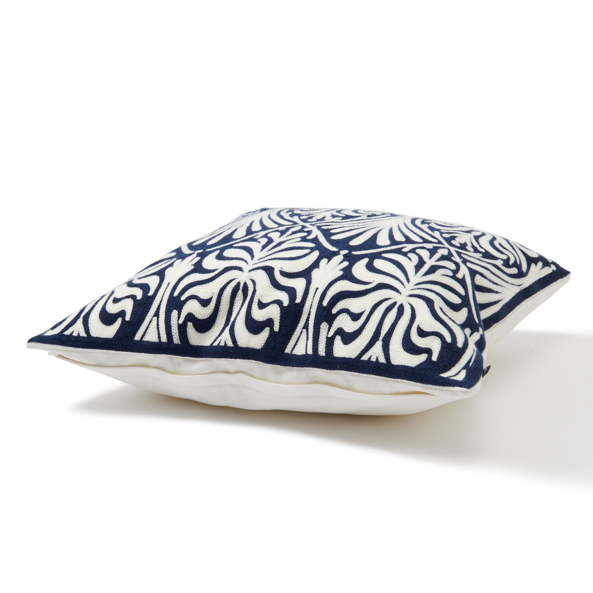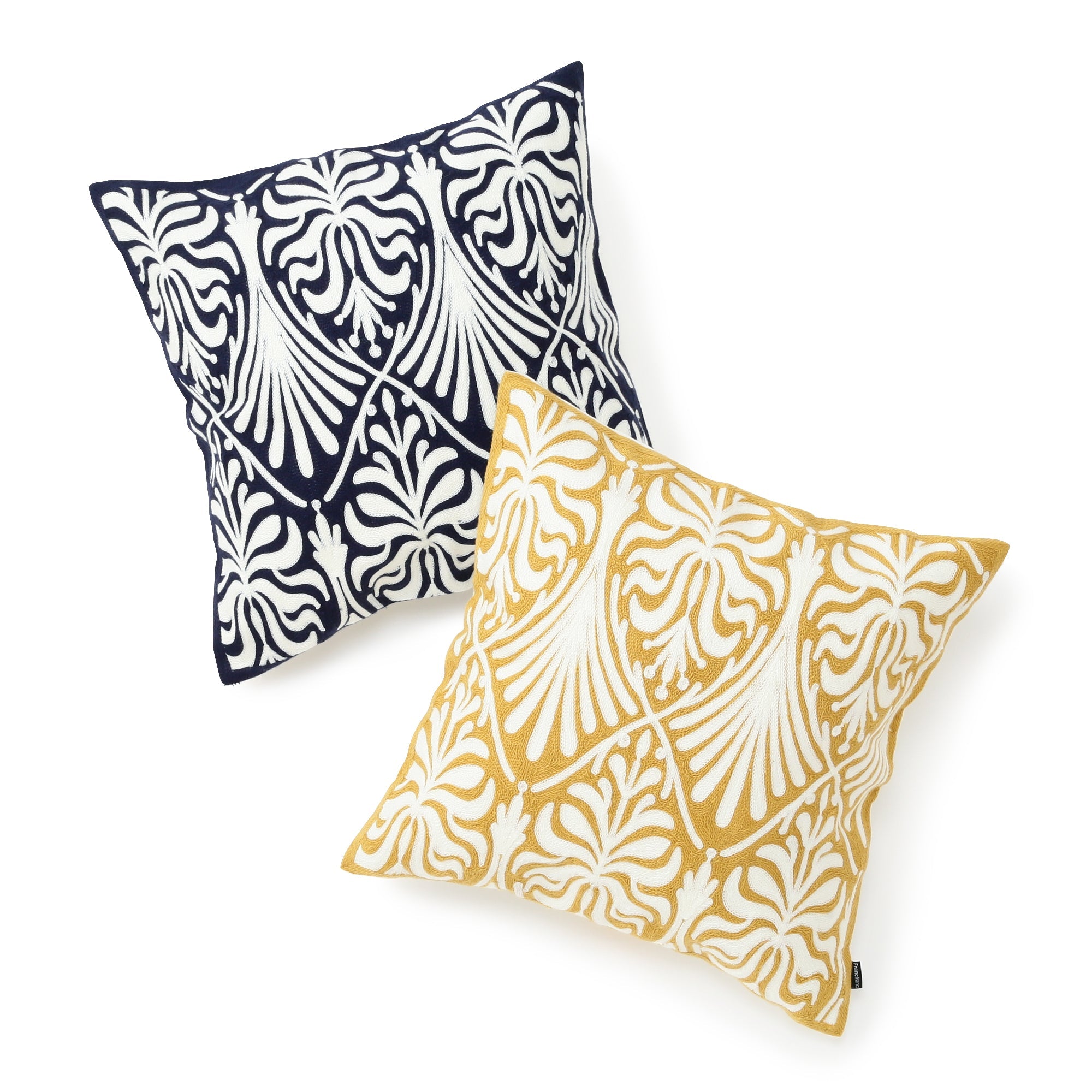 南国を思わせる刺繍を施したコットン100%のおしゃれなクッションカバーです。落ち着いた色合いの2色展開ですので、ナチュラルモダンなお部屋にも合わせやすいです。