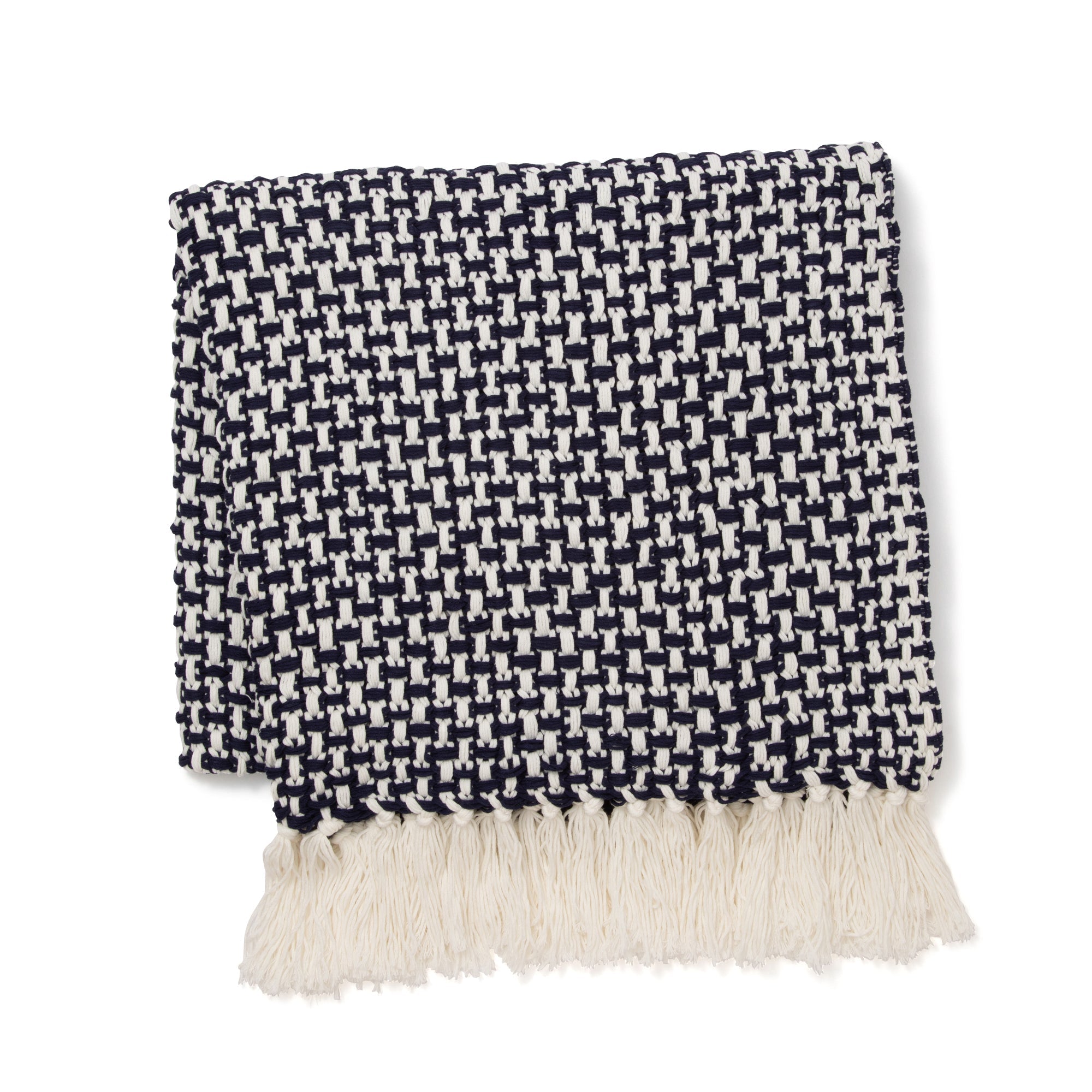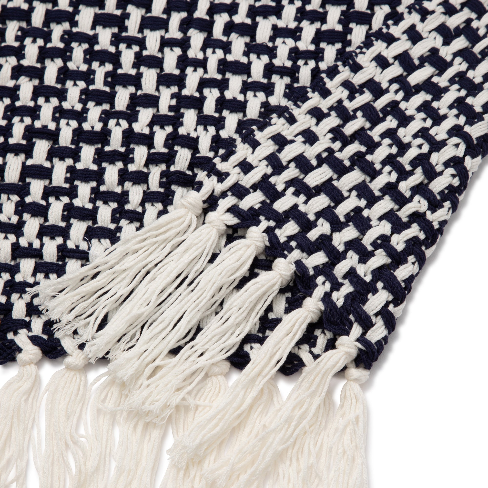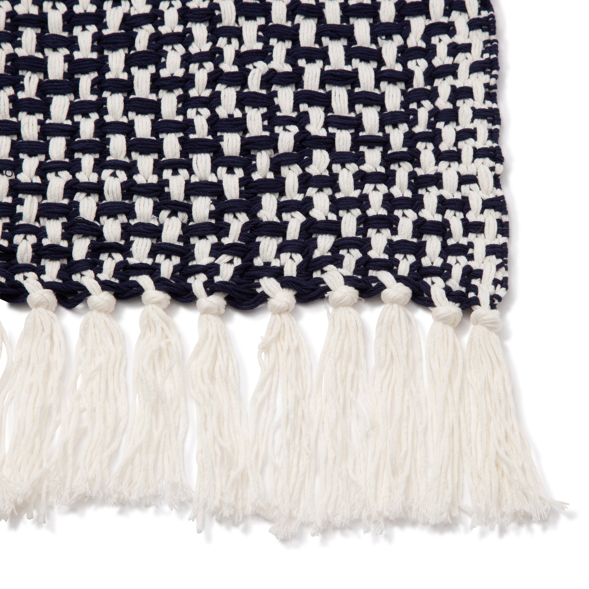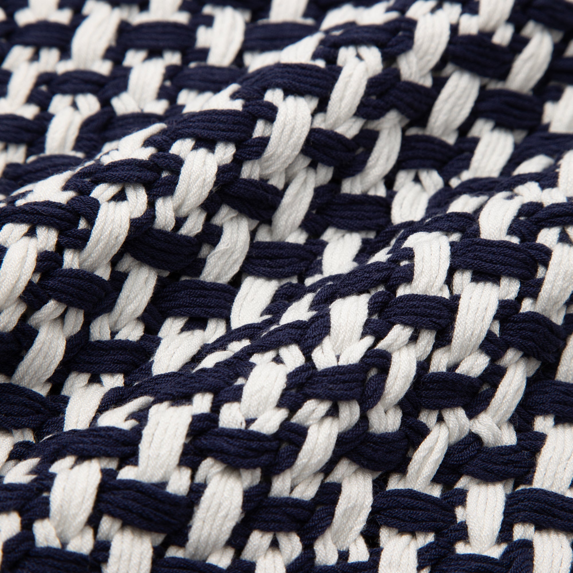 バスケットのようなざっくりとした編地が春夏にぴったりのスローです。ボリュームのある編地なので、ベッドやソファとコーディネートしていただく際も華やかな印象となります。