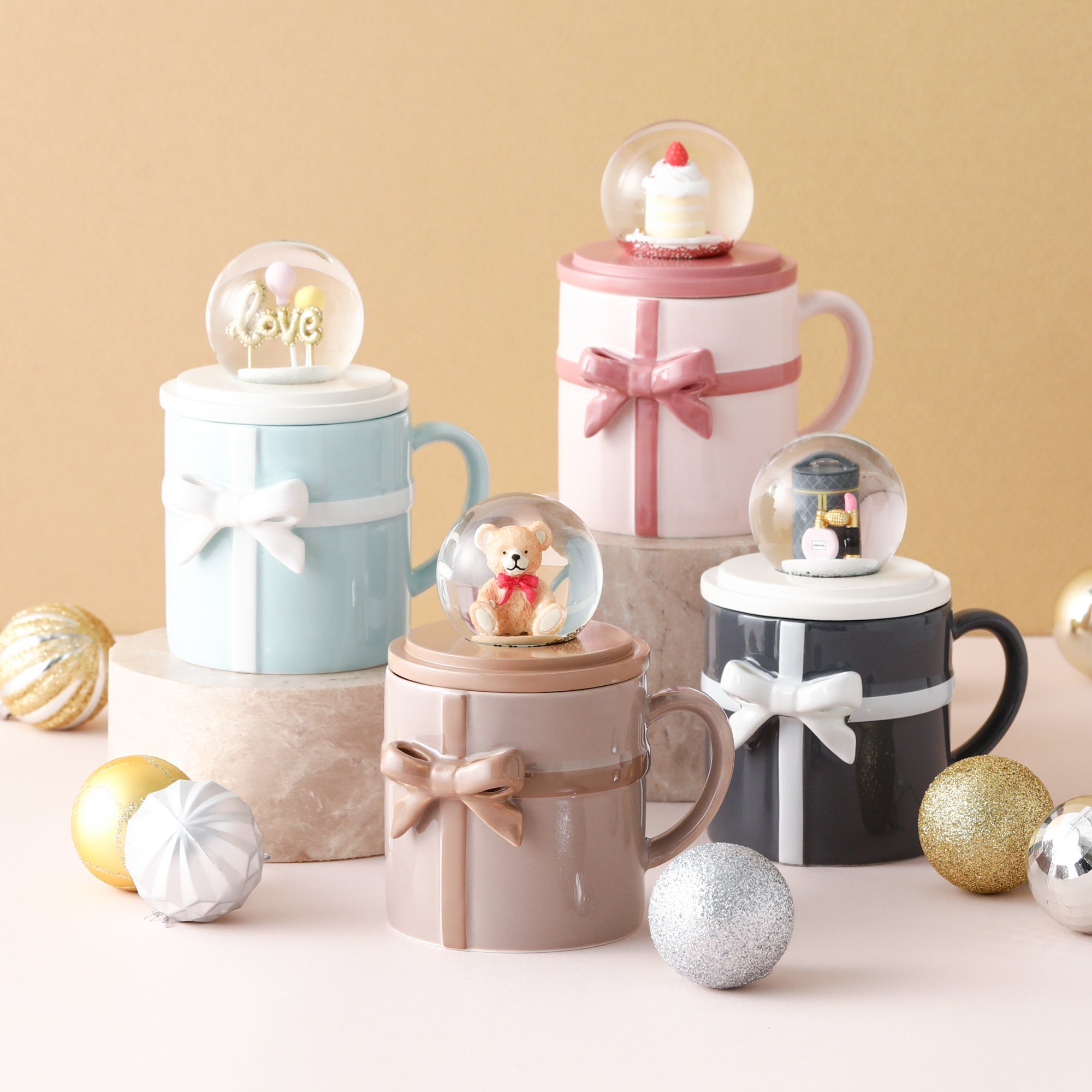 リボンマグ&スノードーム ピンク