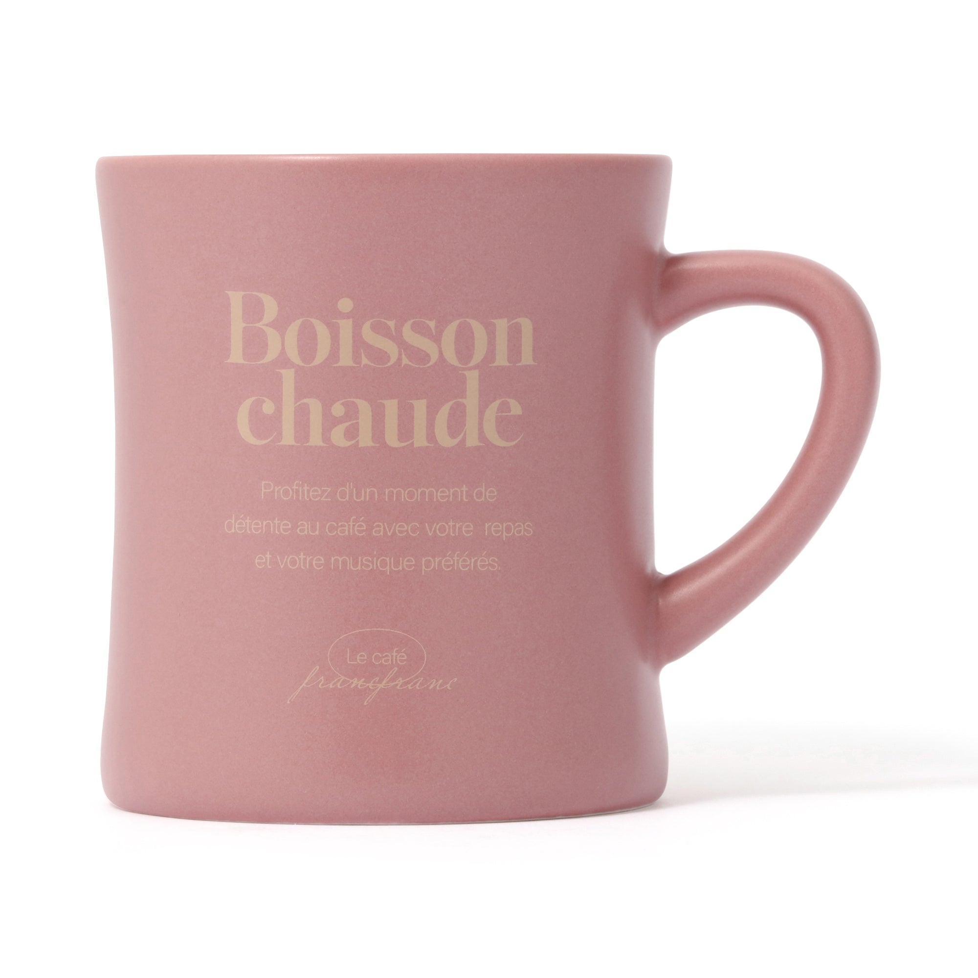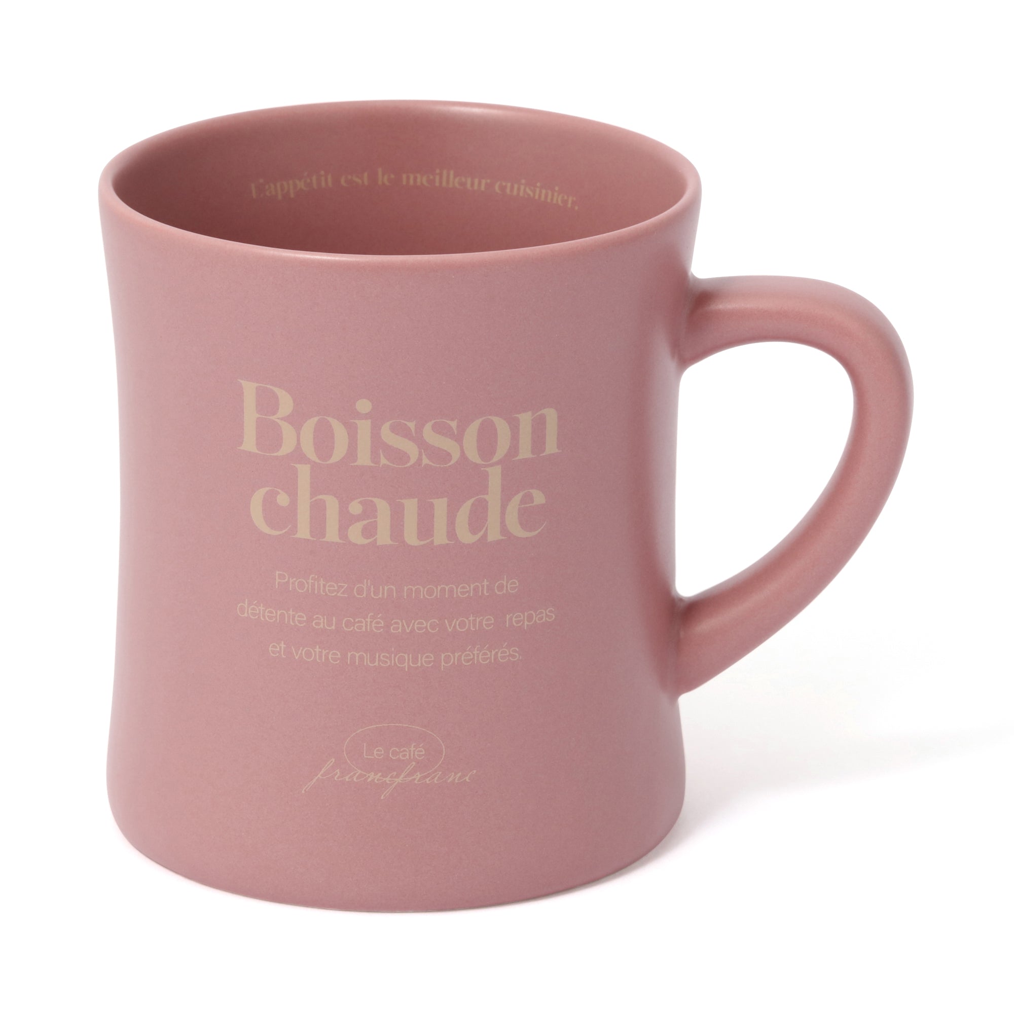 おしゃれなカフェでティータイムを過ごしているような気分になれるマグカップです。 エレガントさがある華奢なフォントを使用し、少し丸みのあるふっくらした形がおしゃれ。 同じシリーズのプレートやグラスと一緒に素敵なティータイムをお過ごしください。
