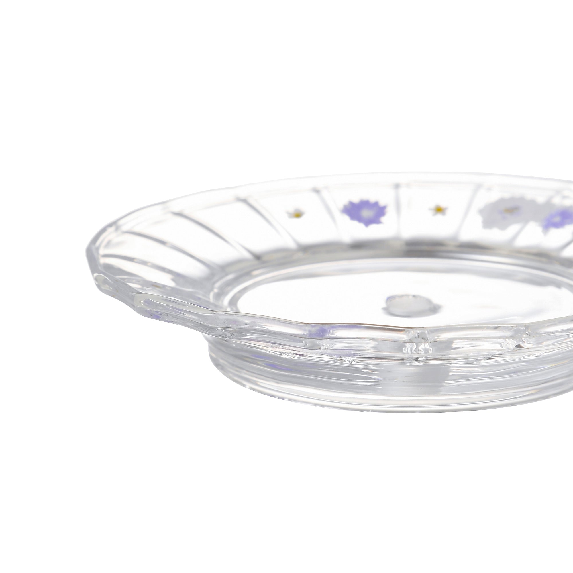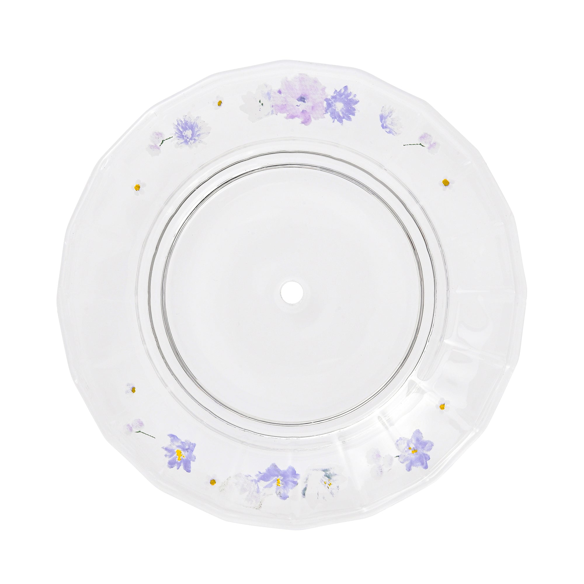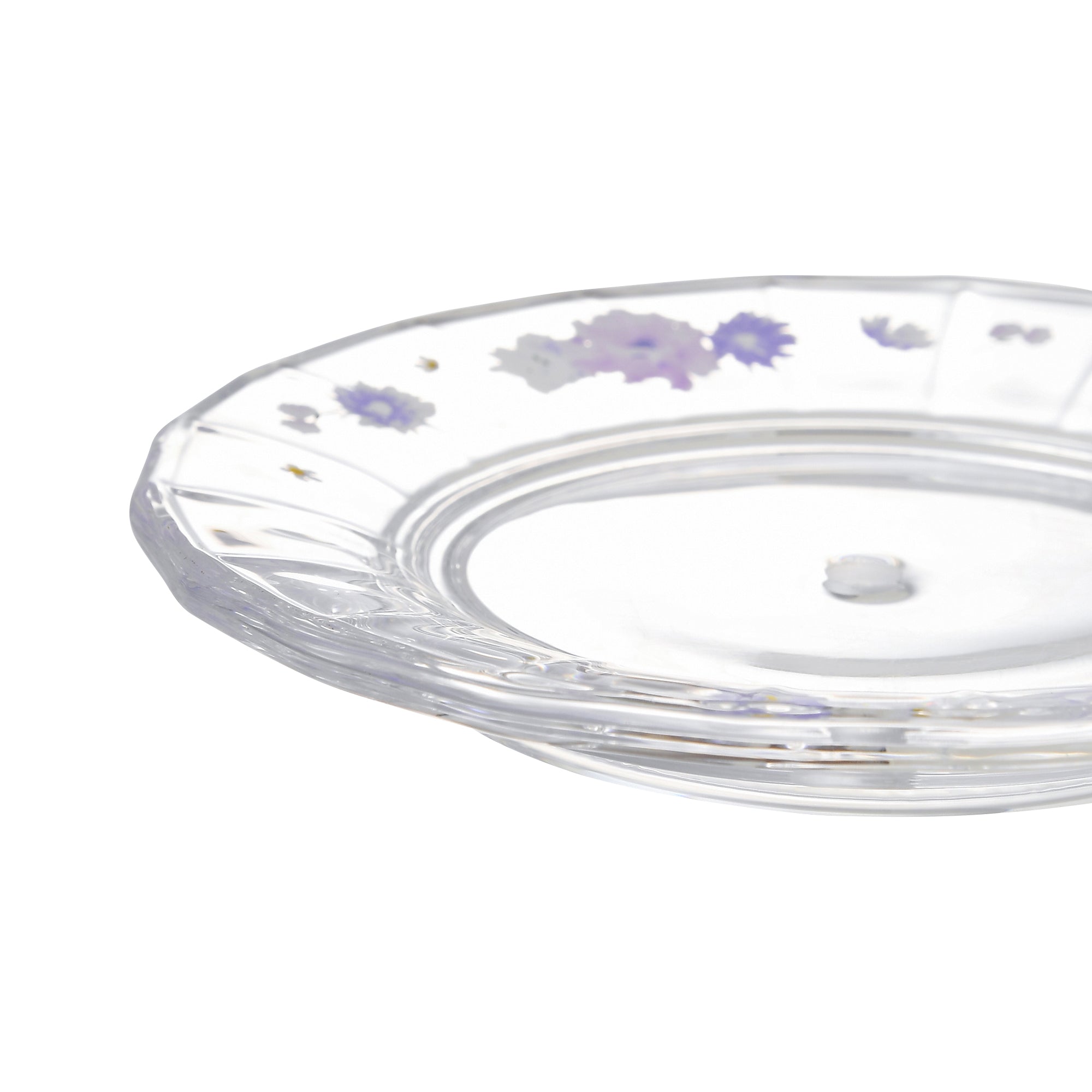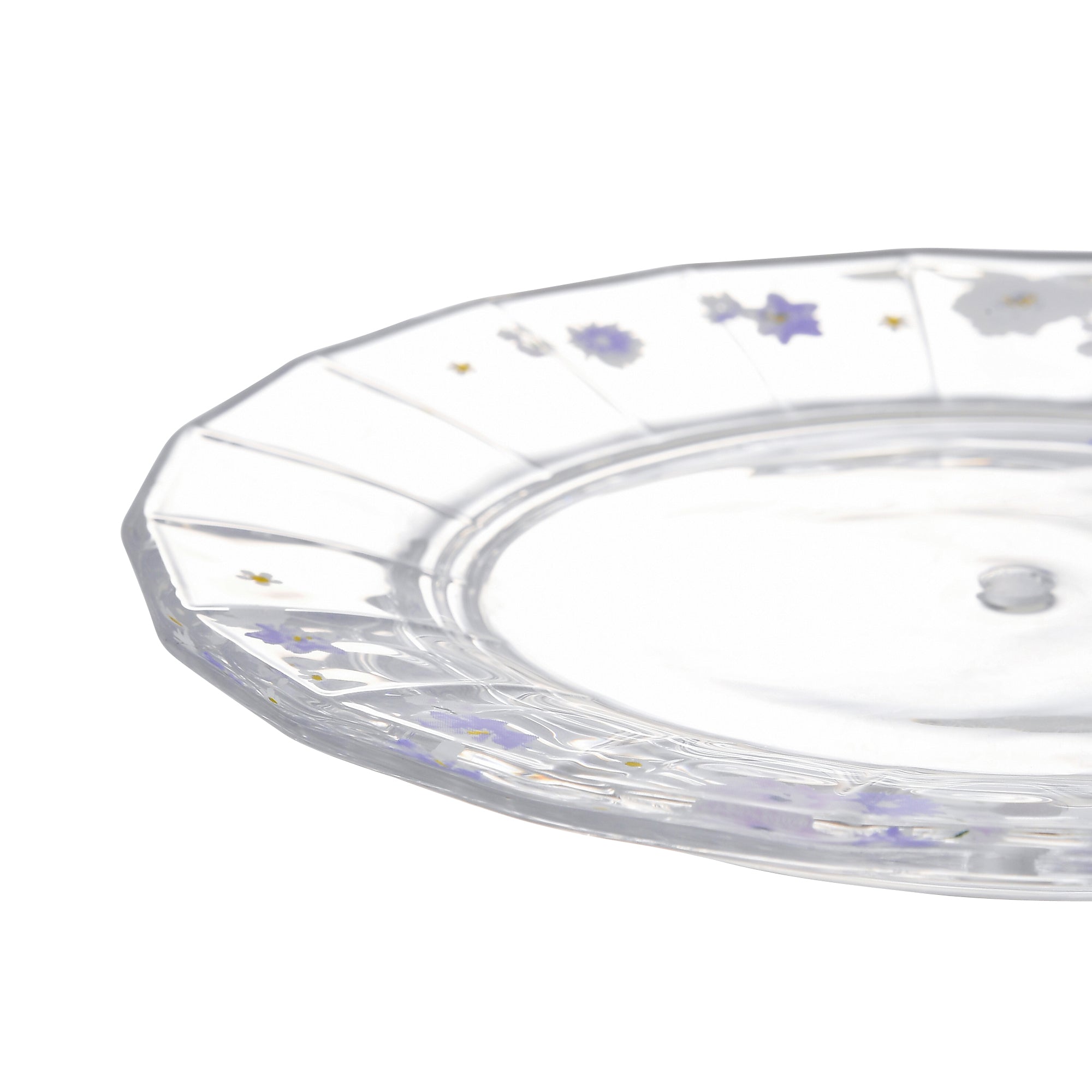 お店でティータイムを楽しんでいる気分になれる、3段ケーキスタンドです。ゴシックなゴールドの支柱にフリル形状の上品なガラスプレートを3段に重ね、花柄のデザインを施しました。ケーキだけでなくパンやフルーツ、軽食を盛り付けてもお洒落。きらきらと光を乱反射してくれるフリルカットのプレートは、朝・昼・夜で全く違う表情を見せてくれます。朝のモーニングコーヒーに、午後のアフタヌーンティー、夕食後のリラックスタイムまで素敵に演出します。同シリーズのカップ&ソーサーやティーポットと一緒に並べて使うのもおすすめです。