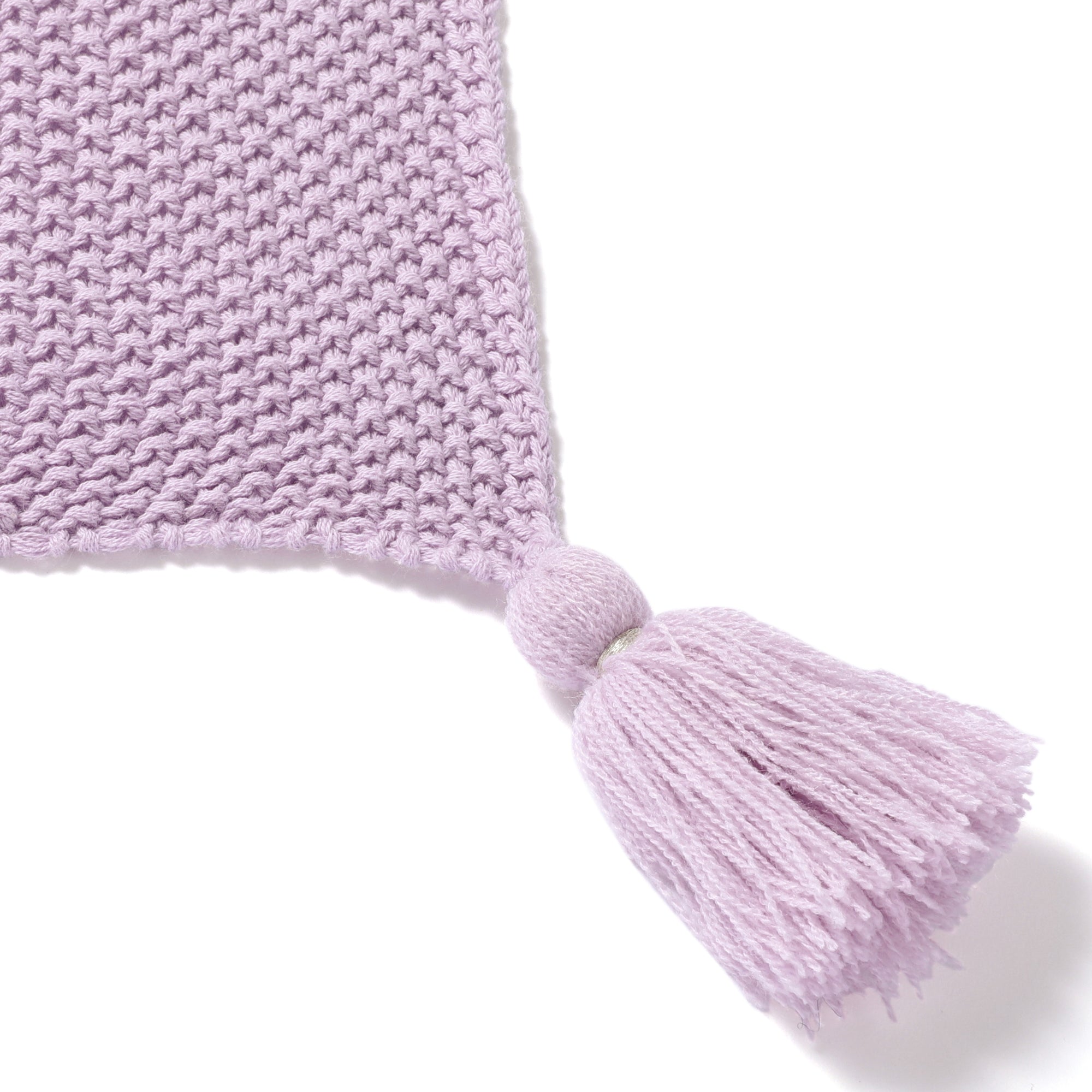 コットン素材が爽やかなニットスロー(ひざ掛け)です。編地を活かして単色で染め上げたシンプルなデザインです。タッセル部分にさりげなく配したメタリック糸がおしゃれなポイントです。