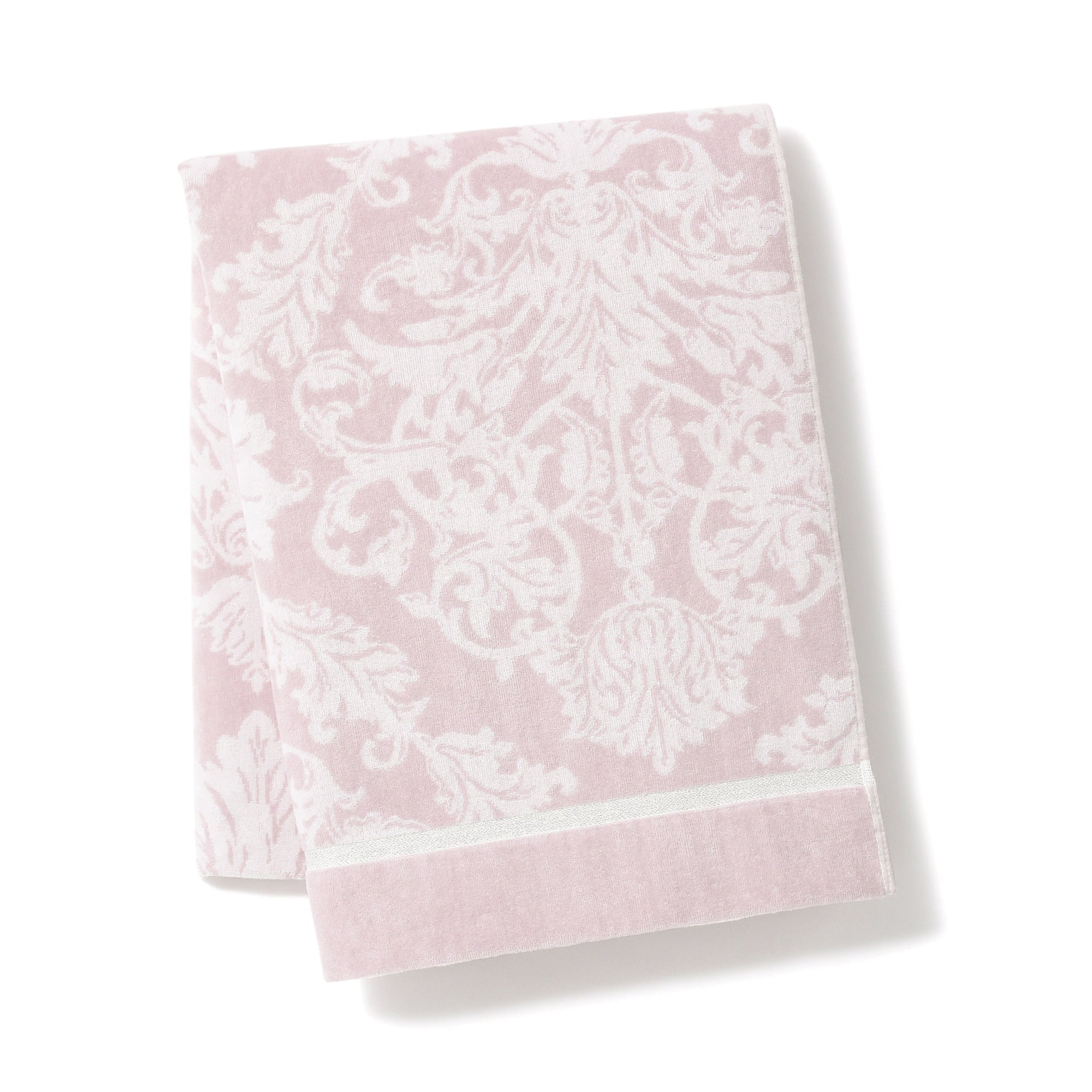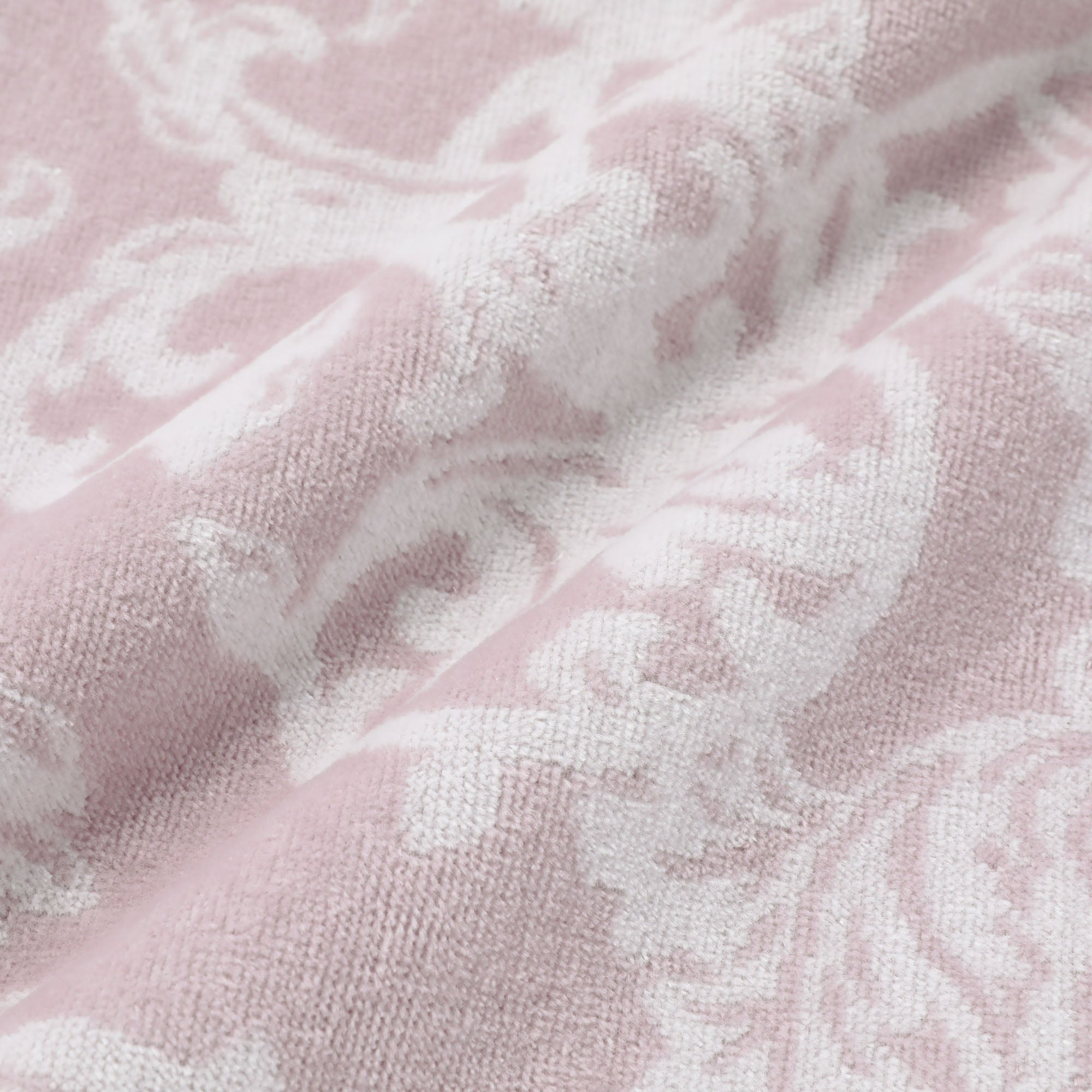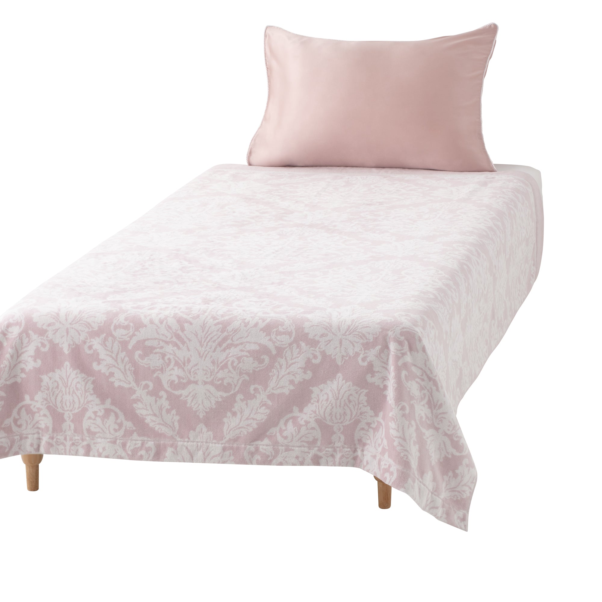ジャカード織りで華やかなオーナメント柄を表現したタオルケットです。コットン100%のパイル素材をカットしたなめらかなシャーリング仕上げで、汗ばむ季節でも快適な肌ざわり。さりげないラメ糸の輝きがエレガントなアクセントです。モダンで高級感あふれるベッドコーディネートをお楽しみください。