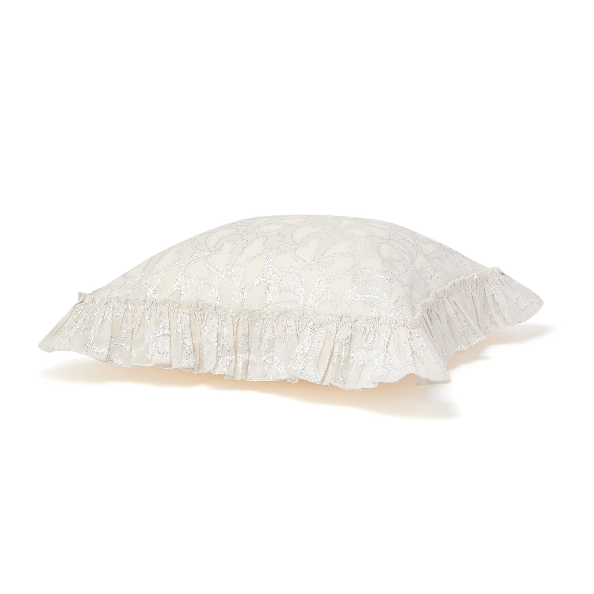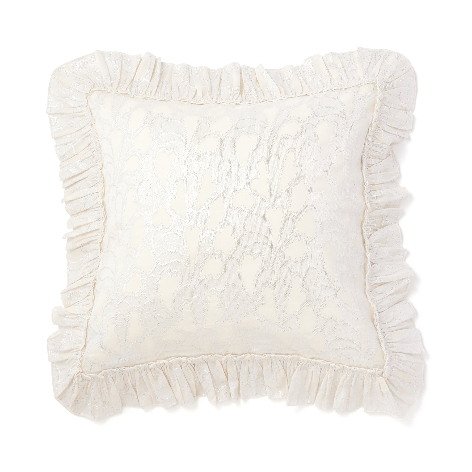 メタリック糸を織り込んだクッションカバーです。ジャガード織でハート柄を表現した華やかなデザインです。