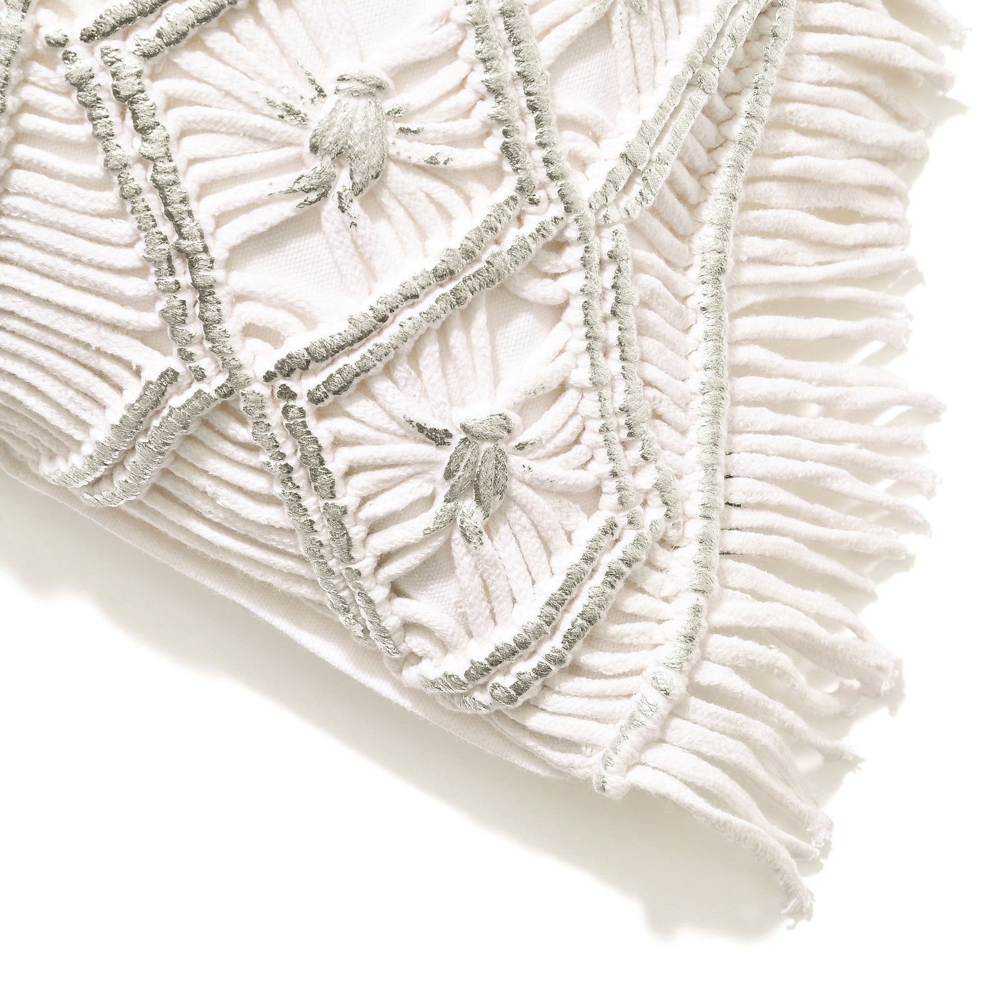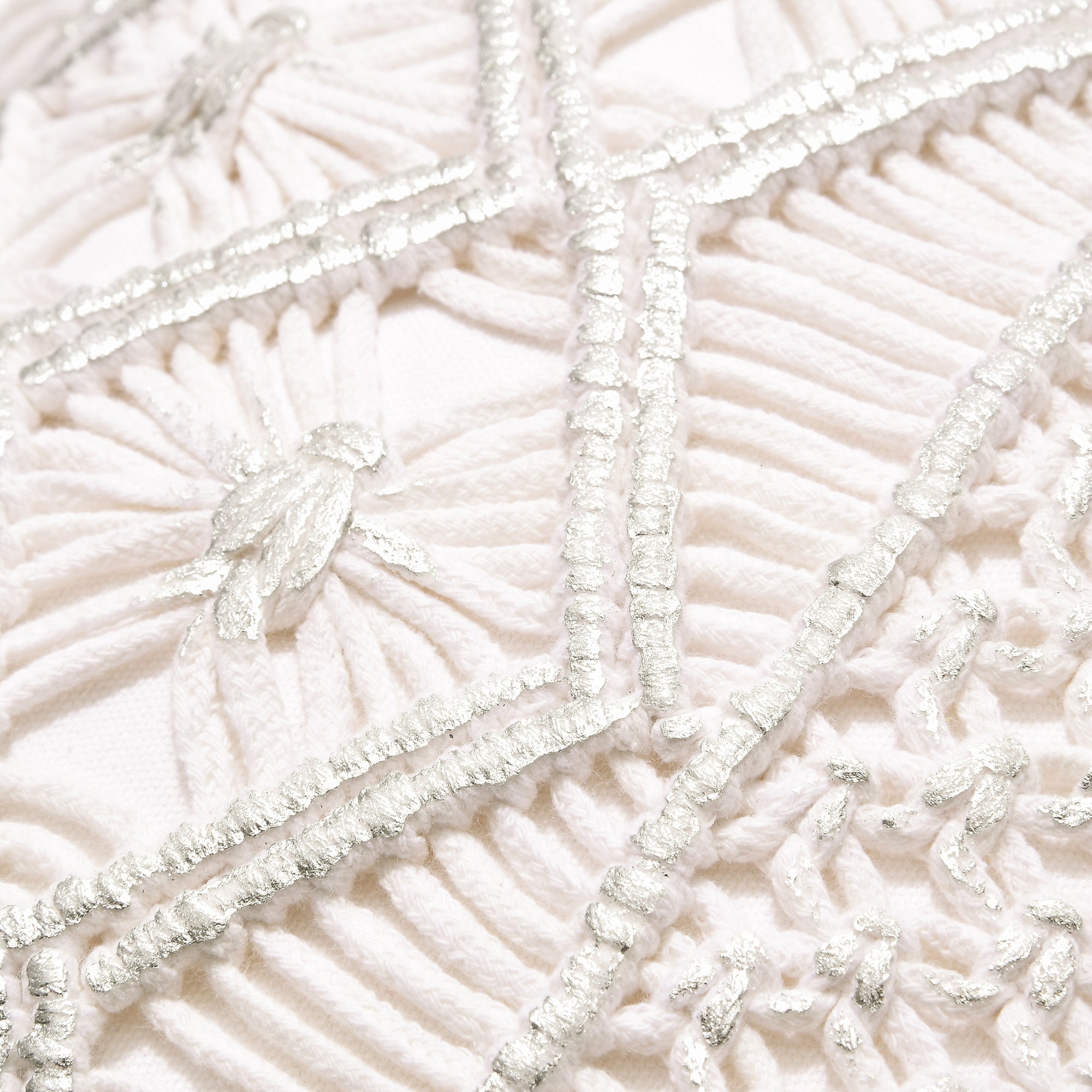 マクラメメタリック クッションカバー 450×450 ホワイト×シルバー (044)
