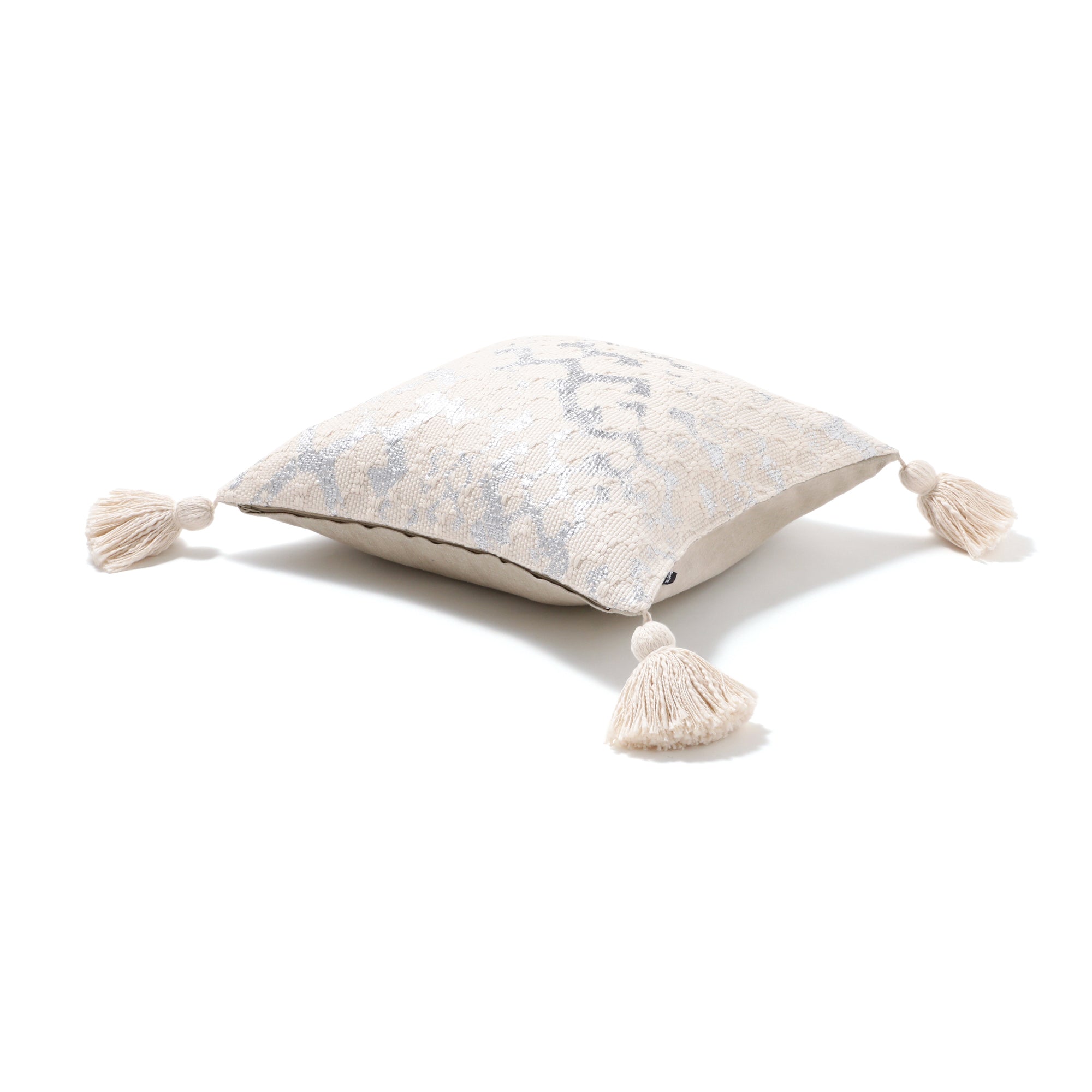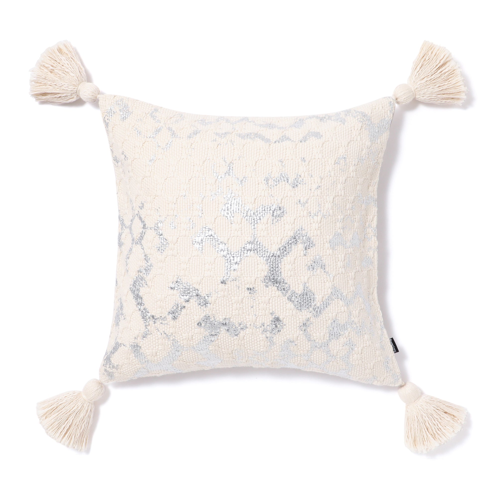 スラブタッセル クッションカバー 450×450 ホワイト×シルバー (032)