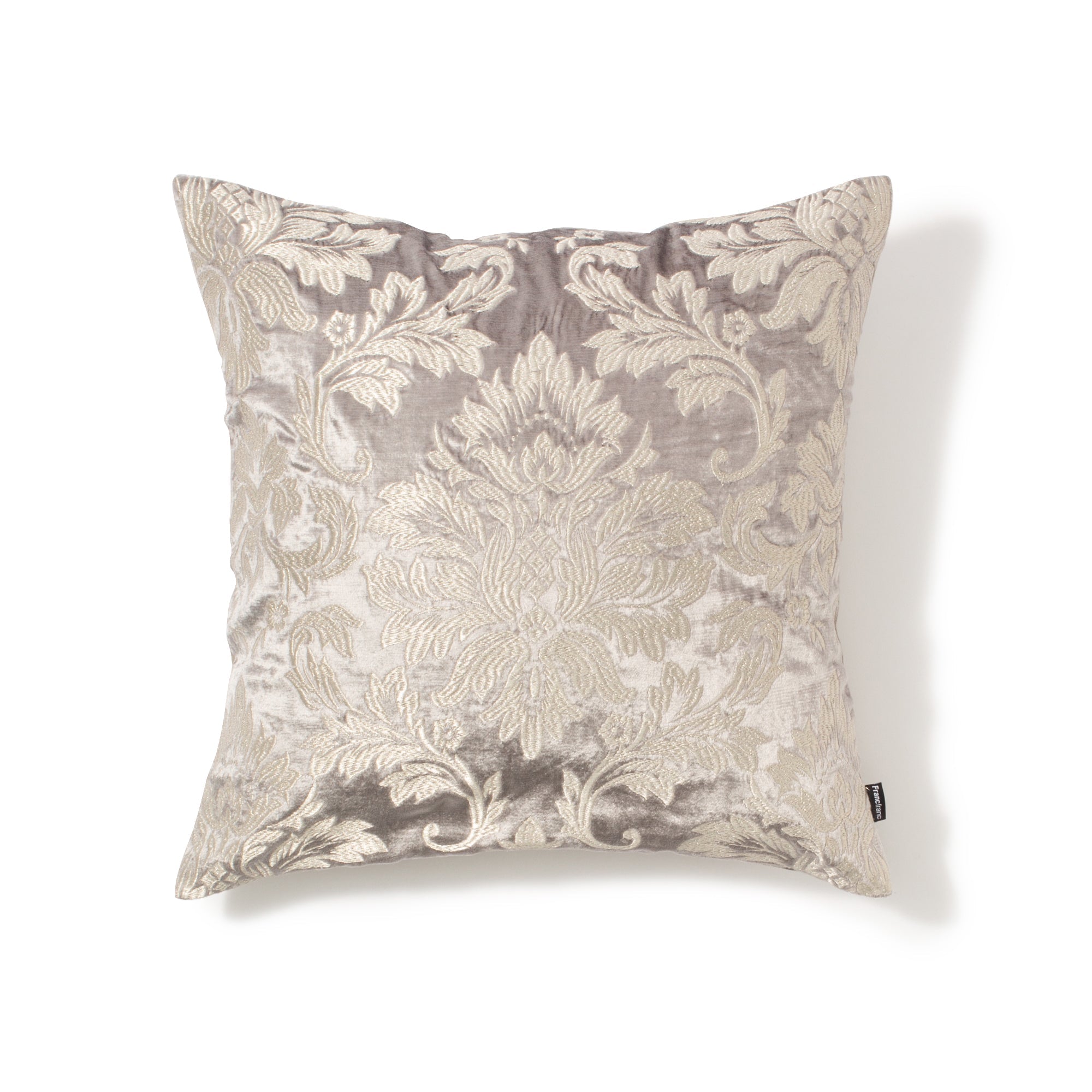 艶感のあるビスコースベルベット生地に、艶感のある糸で刺繍を施したエレガントなクッションカバーです。オーナメント柄を全面に刺繍で表現したことで、一点取り入れることで華やかな空間を演出できるデザインに仕上げています。オーナメントモチーフは流行り廃りがなく、飽きのこないデザインなので長くご愛用いただけます。▼クッションカバーの中材(別売り)はこちらクッションヌード一覧サイズW450×D450mm素材表側 レーヨン 100%、裏側 コットン 100%、刺繍 ポリエステル 100%重量0.178 kgカラーGY品番 1102010522202 全国一律550円(税込)です。雑貨の商品金額合計が5,000円(税込)以上の場合、送料無料で配送いたします。※手数料、ラッピング料、付帯サービス料は含みません。※新生活期・年末年始は出荷や配送の繁忙期となるため、日時指定をいただいてもご希望日時通りお届け出来ないことがございます。●洗濯:不可●ドライクリーニング:可■アイロン:不可■素材の特性上、ベルベット生地はキズのように見える場合があります。不良ではありませんので予めご了承ください。■製品の特性上、サイズや色柄などに多少のばらつきがあります。■素材の特性上、直射日光やライトに長時間照らされると、変色する場合があります。■本商品はスリット糸(ラメ糸)を使用しております。特性上切れやすい素材です。また、非常にデリケートなため、引き出されやすくなっております。一度引き出されると直せません。予めご了承ください。■色落ちしたり、他に色移りすることがあります。特に濡れた状態での摩擦にご注意ください。■摩擦やドライクリーニングにより、毛羽立ち・毛羽抜け・毛玉が発生します。■パイルの方向が部分的に異なり色むらのように見えることがありますが、商品特性としてご了承ください。■製法の特性上、刺繍糸の端が飛び出している場合がありますが引っ張らないでください。■外観が変化することがありますのでお手入れはネットを使用したドライクリーニングをお願いいたします。