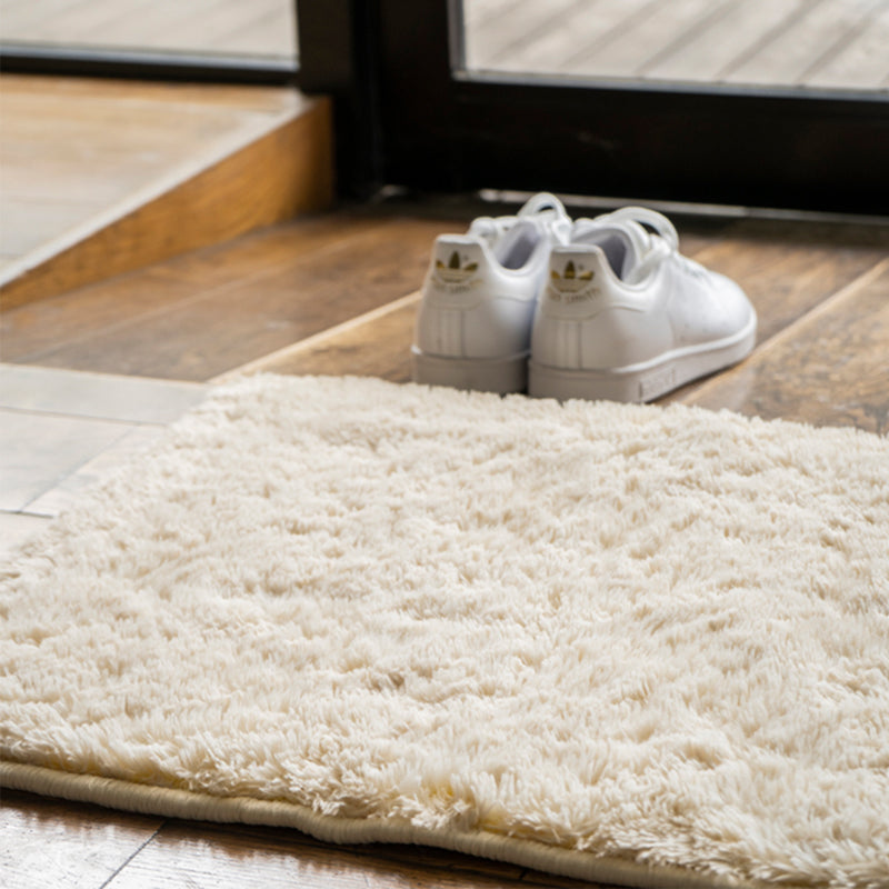 バックプリント加工(ファー生地への背面から塗料を吸い上げる技法)を用いたラグ。ファーの根元からのアクセントカラーは、落ち着いたインテリアシーンにアクセントを入れて、引き締まった空間にしてくれます。約20mmの毛足の長さで、肌触りもしっかりとしたラグです。