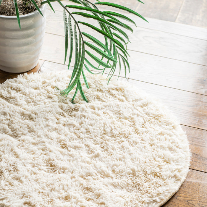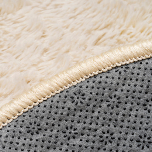 バックプリント加工(ファー生地への背面から塗料を吸い上げる技法)を用いたラグ。ファーの根元からのアクセントカラーは、落ち着いたインテリアシーンにアクセントを入れて、引き締まった空間にしてくれます。約20mmの毛足の長さで、肌触りもしっかりとしたラグです。