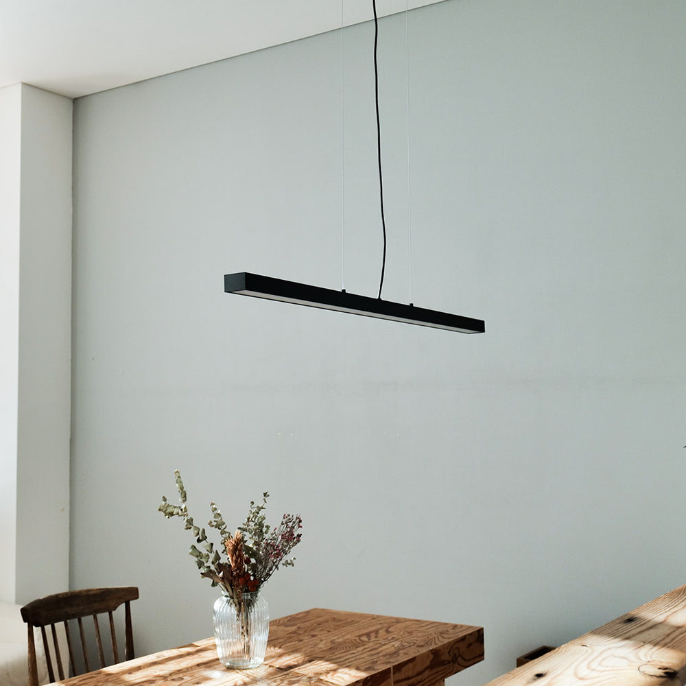 光源が浮いているイメージを具現化したペンダントライトです。オフィスからダイニング・キッチンカウンターまで使えるように無駄を削ぎ取り、その場の空間の邪魔にならないようにスマートな形に仕上げました。コード15cm~150cmの高さ調節も可能で、低めの照明配置設定も可能です。