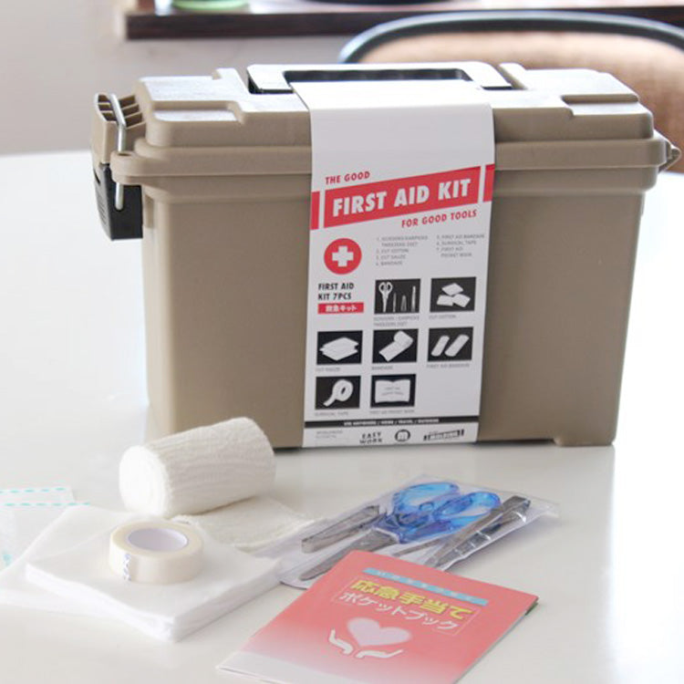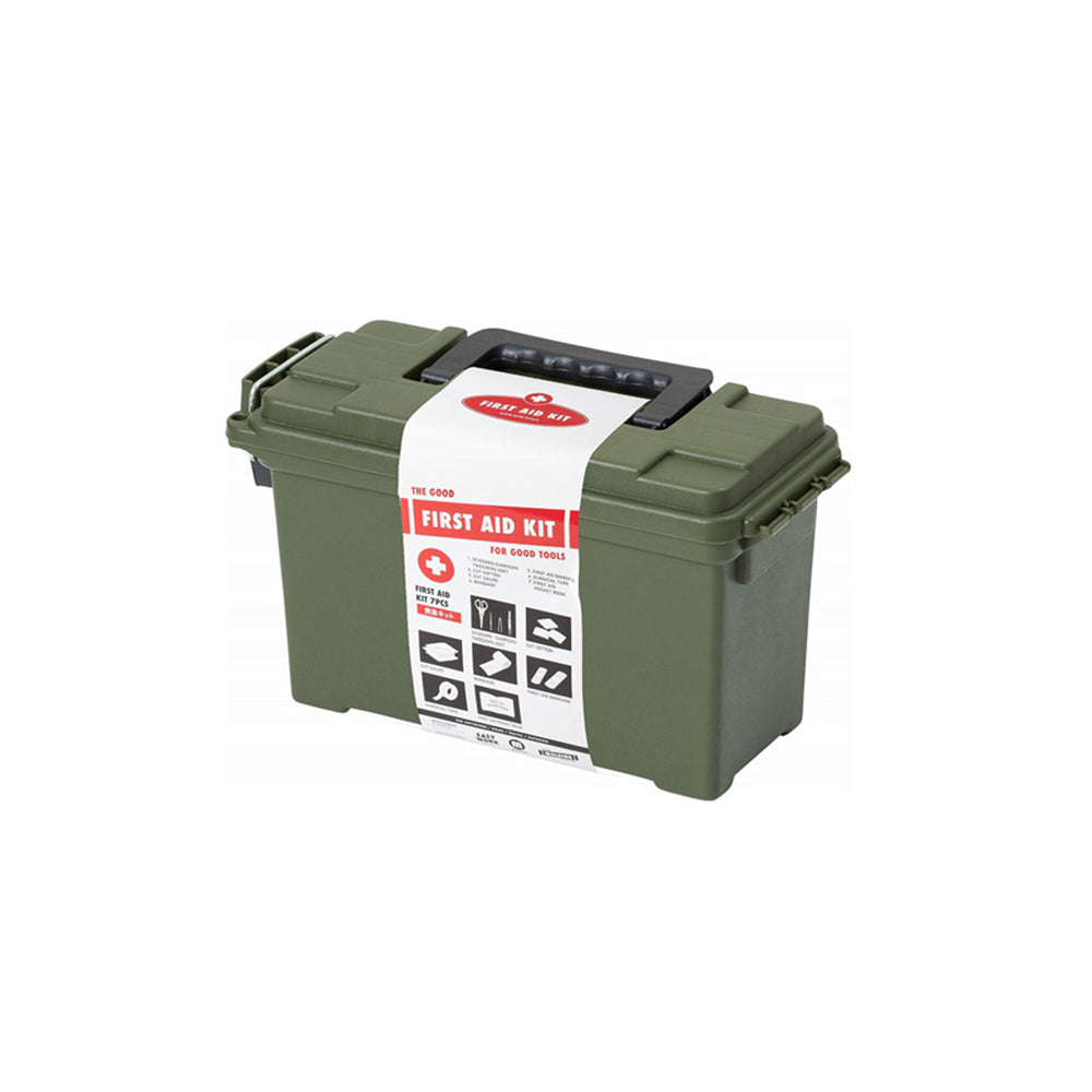 MOLDING AMMO TOOL BOXに[応急処置グッズ]をセットした実用性ツールアイテム。一家に一台は保管しておきたいアイテムを、最低限のセレクトで詰め込んでいます。
