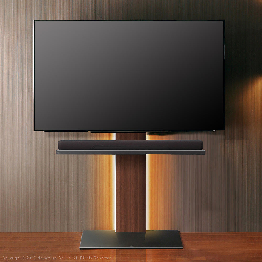 こだわりの位置に無段階調節可能な専用棚板です。テレビの脚に干渉しやすいサウンドバーをテレビ直下に設置することができます。