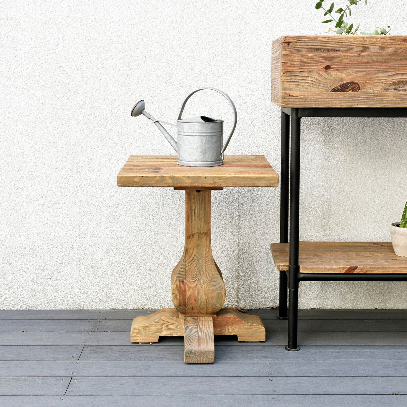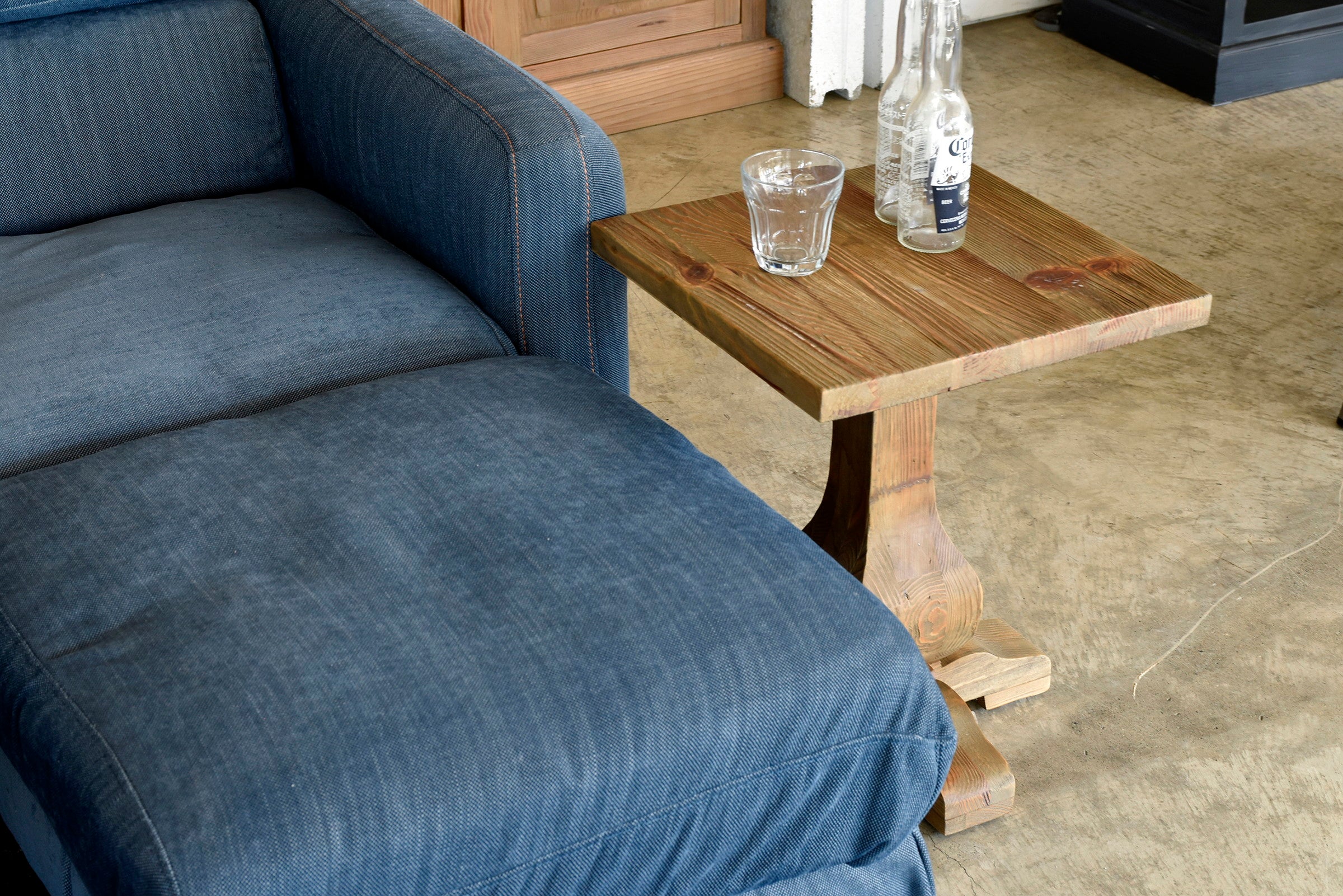 アジアンテイスト漂うパイン材を使用した彫刻のようなサイドテーブルです。パイン材は木目や節などの素朴さから、あたたかみ、柔らかさ、色変わりなど視覚的にも楽しめる人気の素材です。ちょっとした飲み物や、読みかけの本などを置くのにちょうどいいサイズ感です。