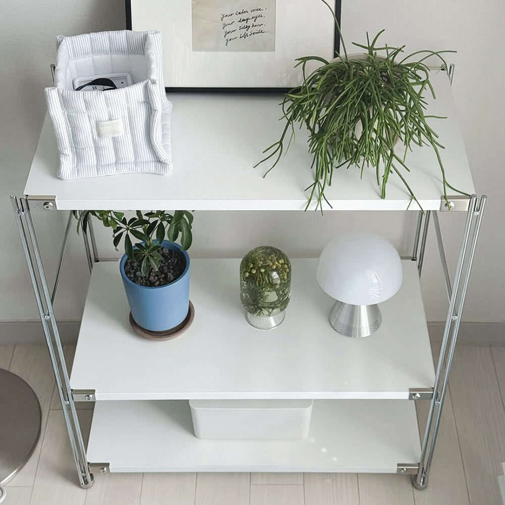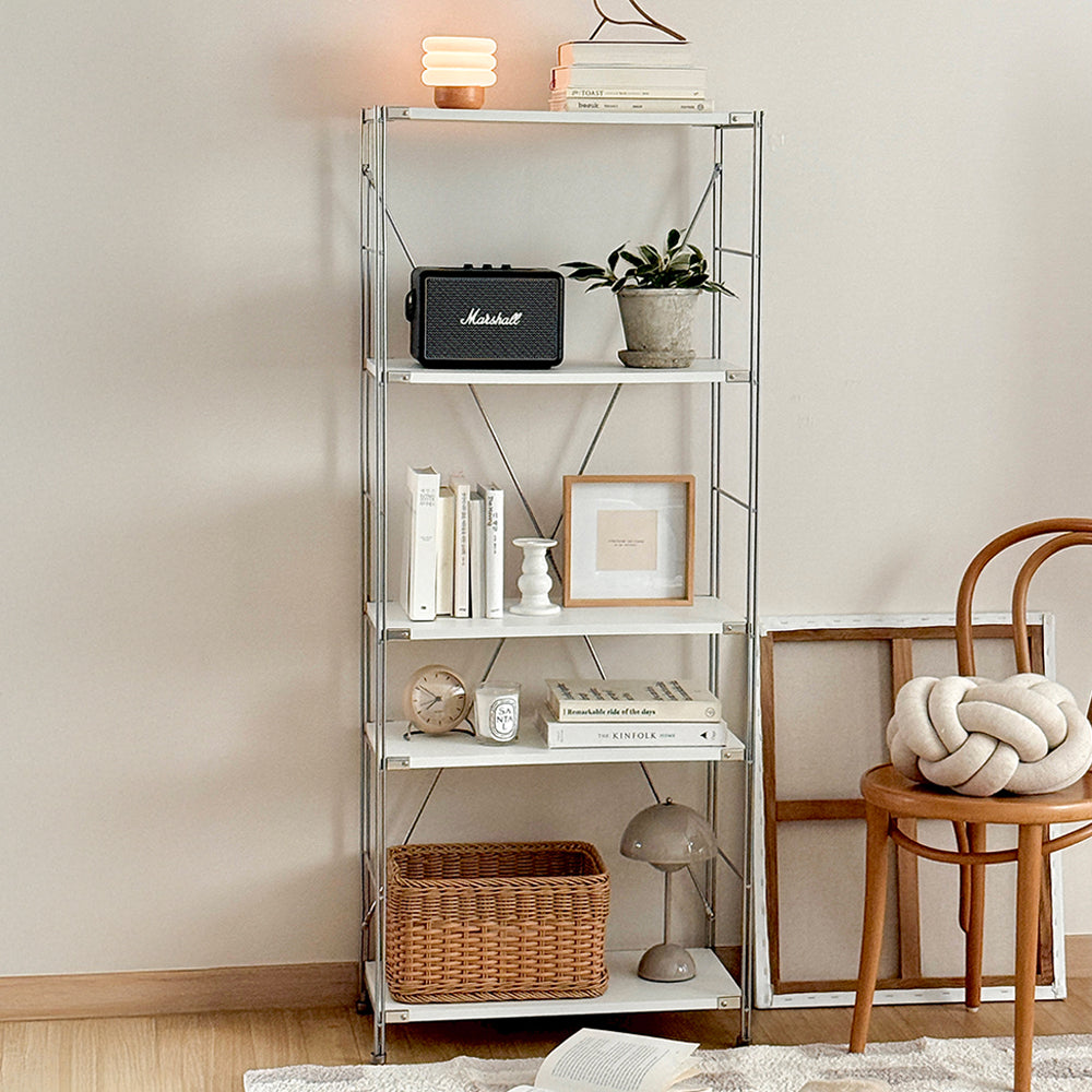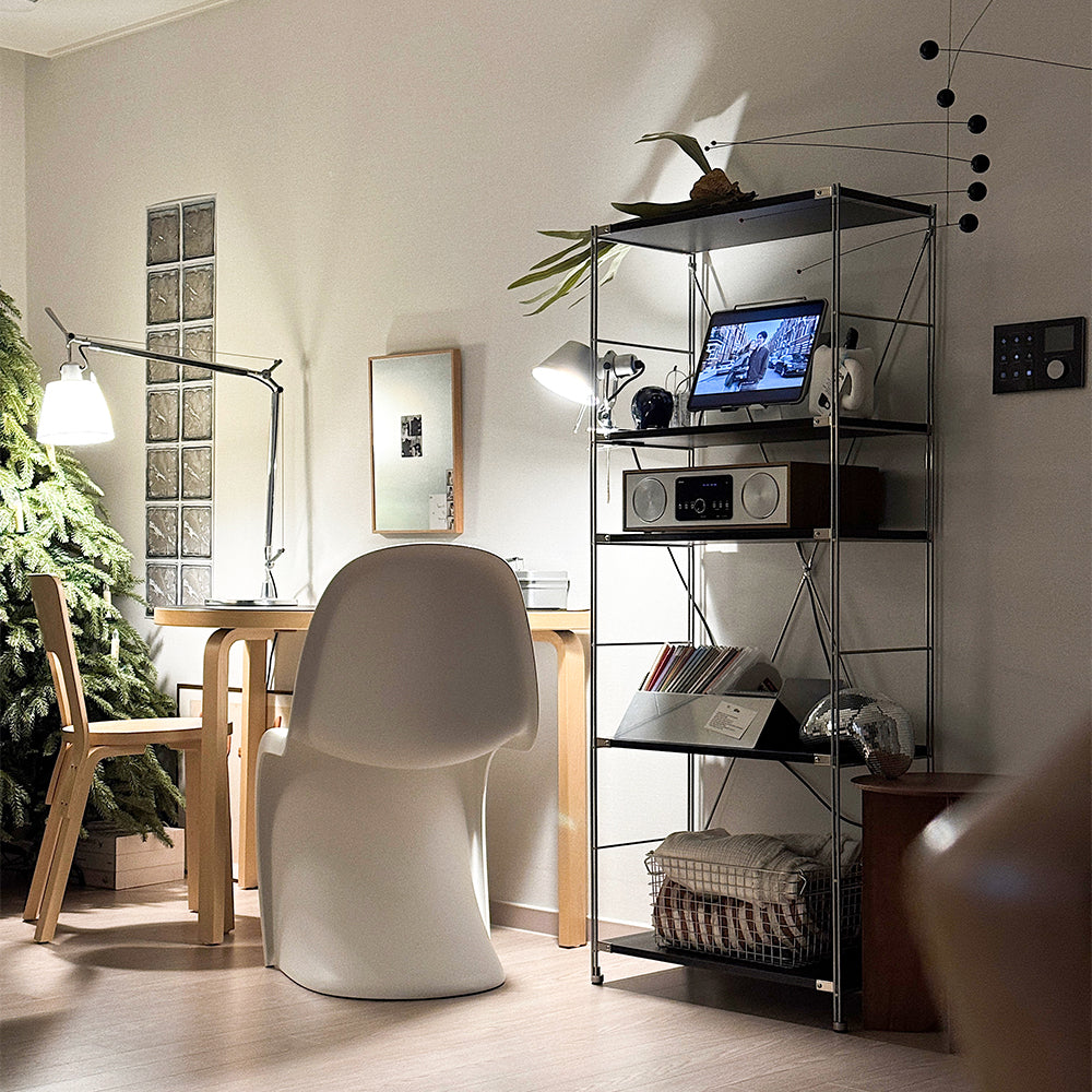 Ogreのモドゥウッド5段棚は、黒と白の2色展開です。空間に馴染むやさしいデザインで、小物収納や飾り棚にもぴったりです。