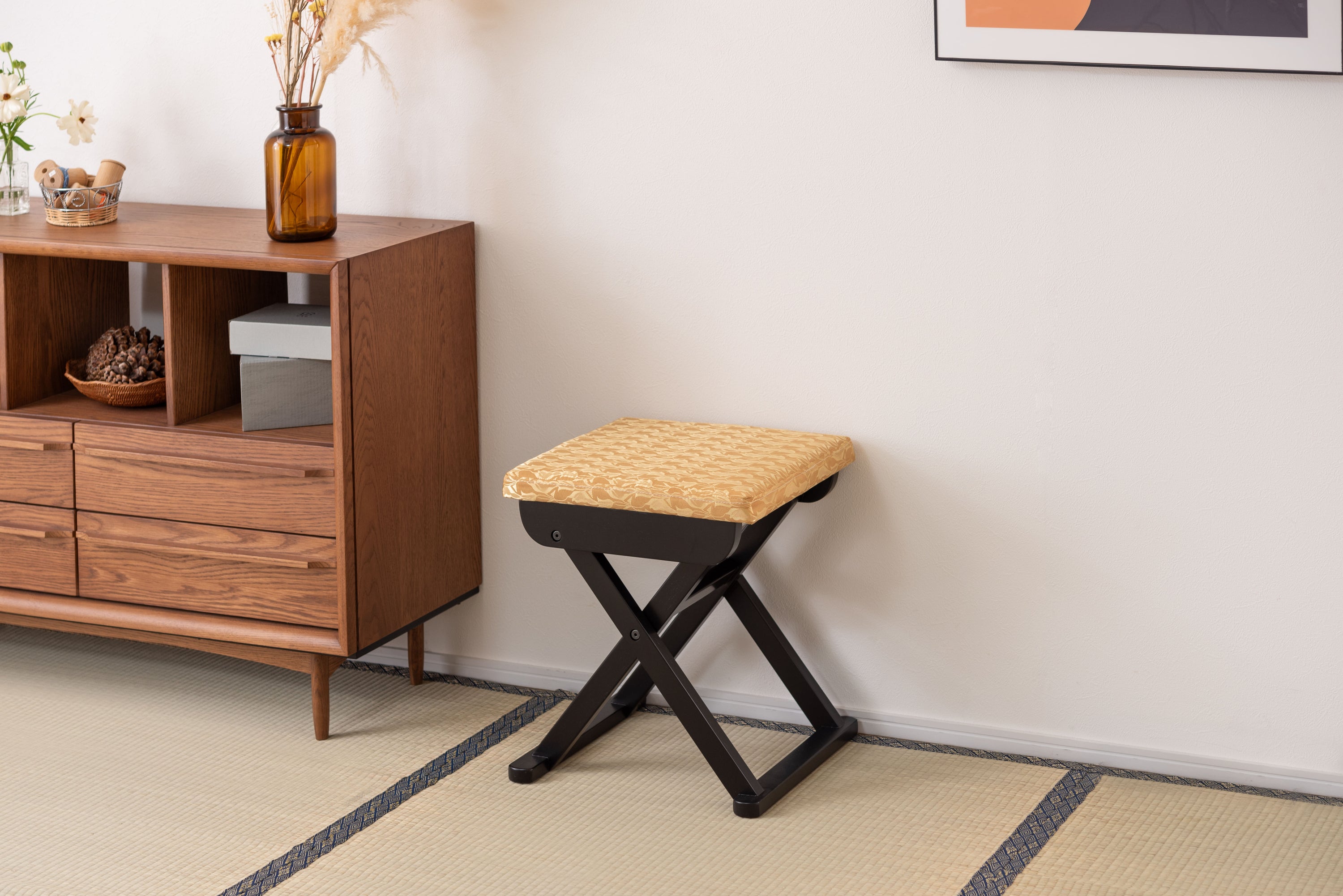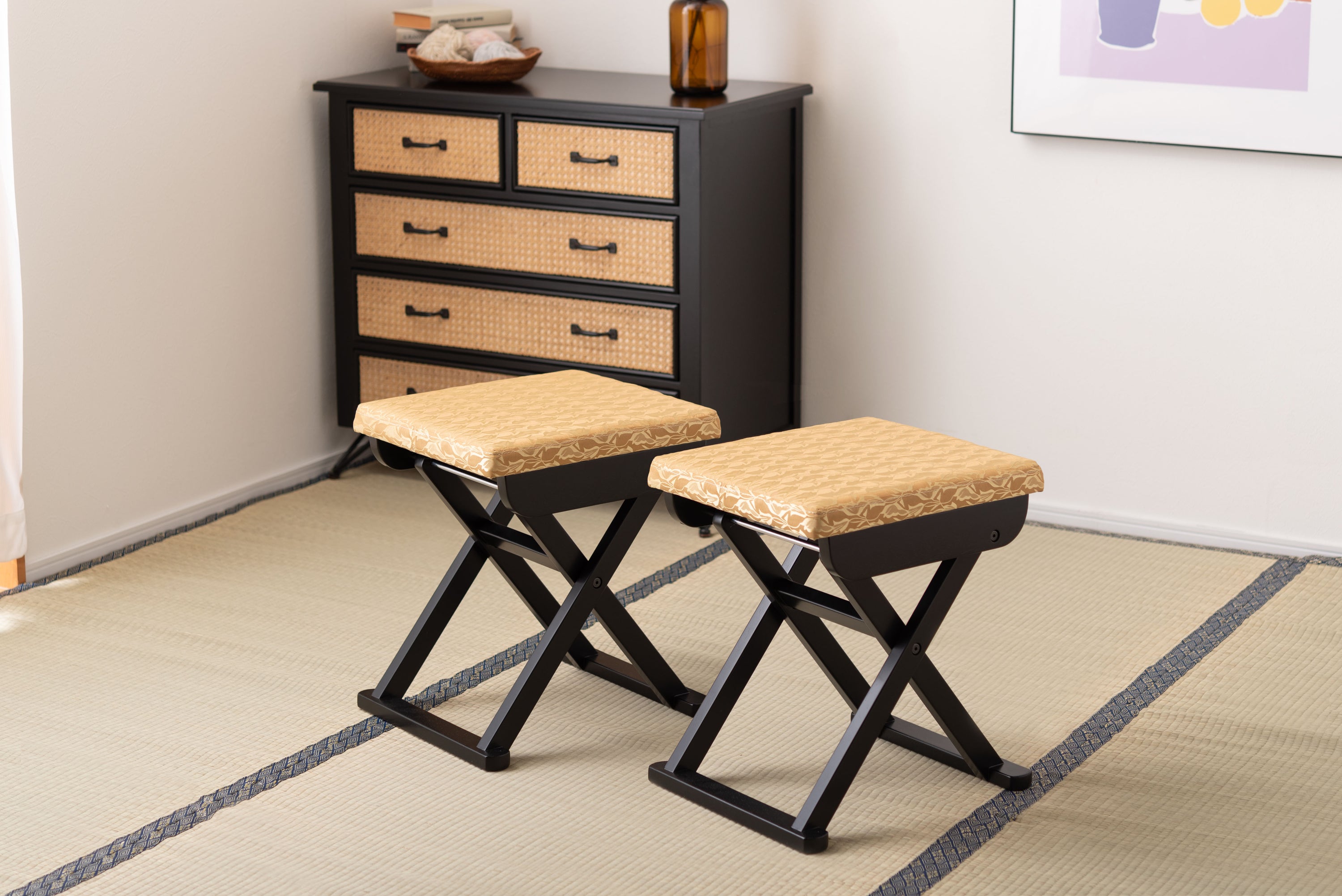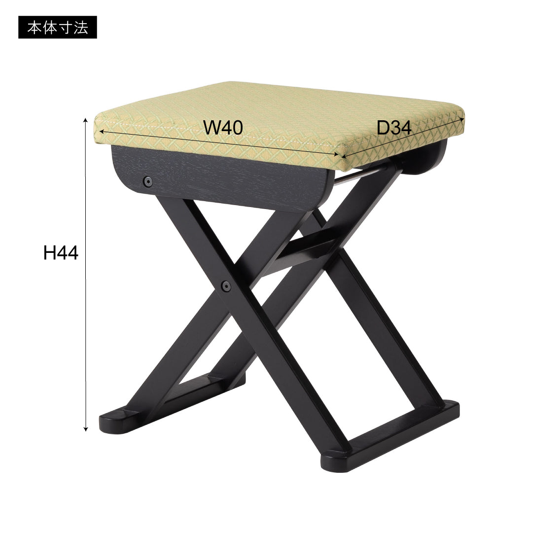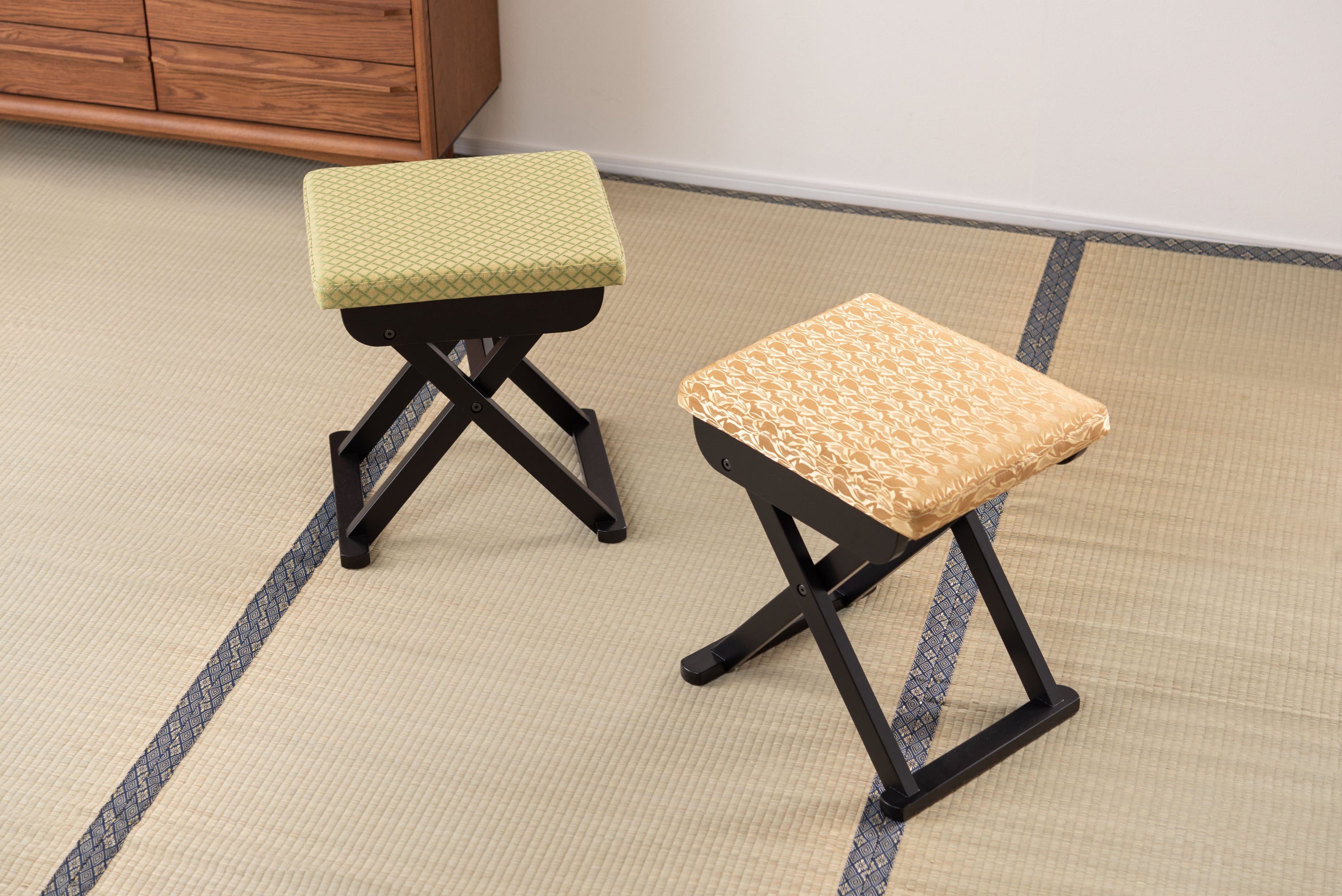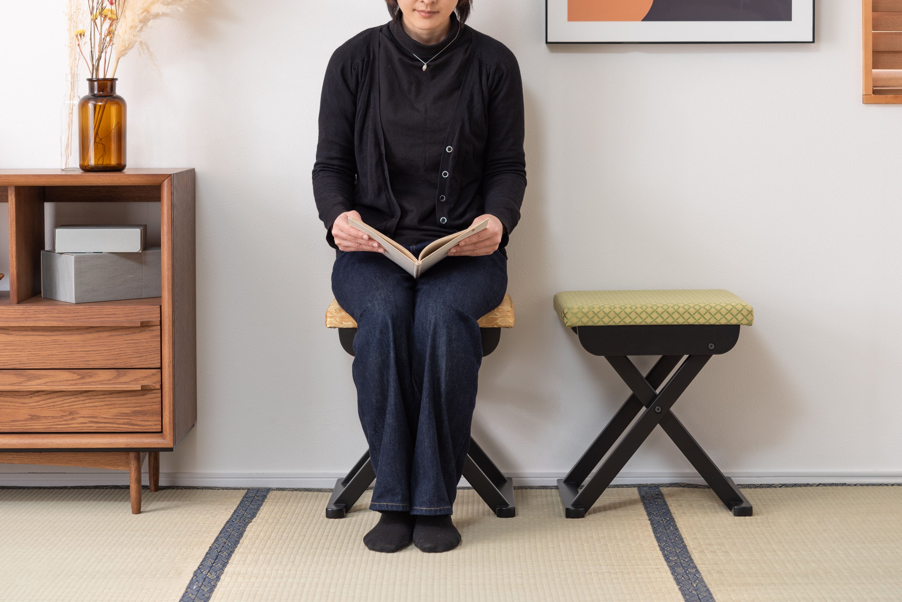 畳にもしっくりなじむ折りたたみスツール。 軽くて持ち運びやすい折りたたみ式。 重さが分散されやすいスキー脚仕様。 畳や床を傷つけにくく、ウレタン入り座面はふかふかで長時間座れる座り心地。 使わない時はサッとたたんで省スペースに収納できるので便利。 脚裏フェルト付き。 座面には撥水加工が施されているので、汚れてもサッと拭き取るだけでお手入れが楽に完了。 高さ45cmでオットマンとしても快適に使えるサイズ感。