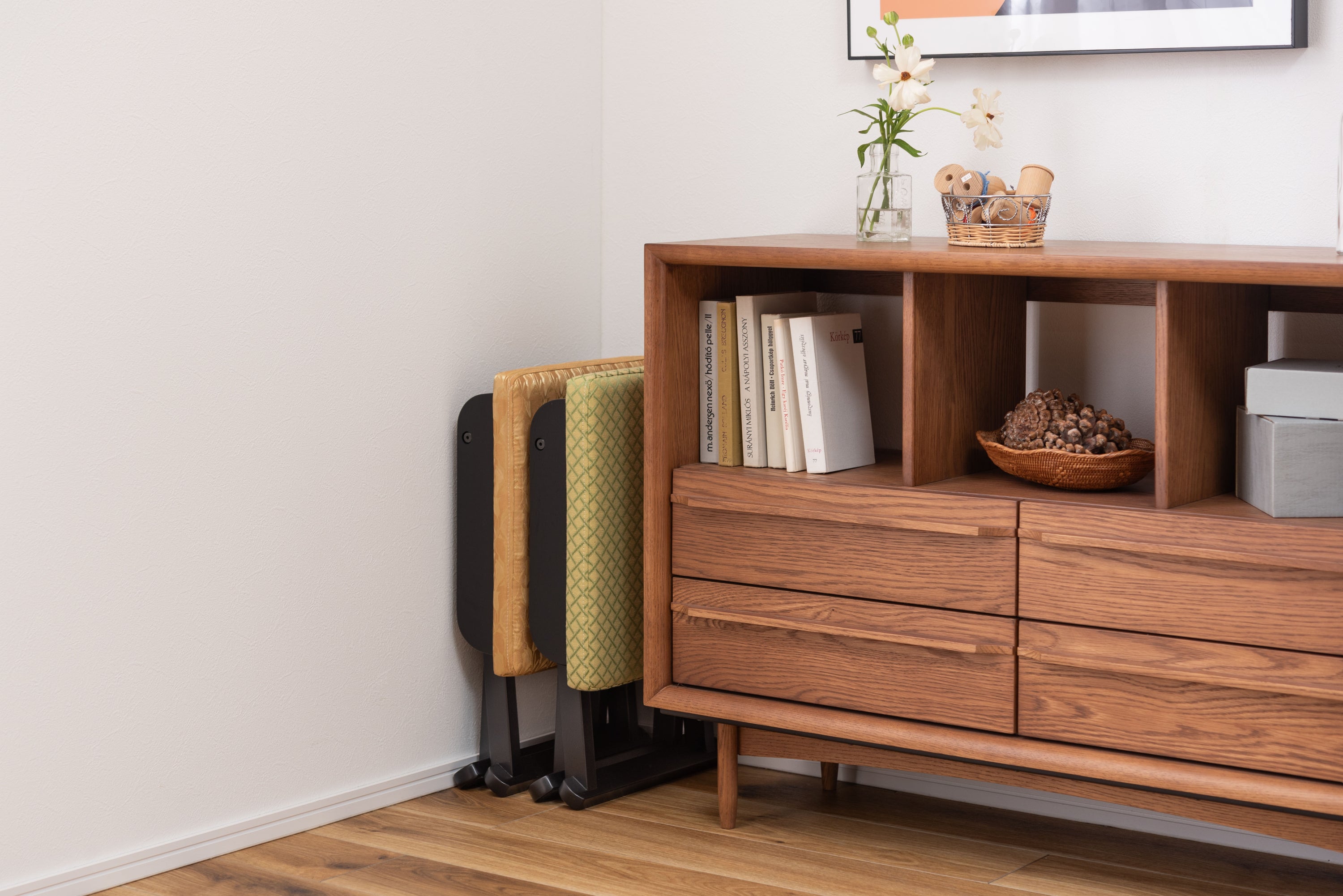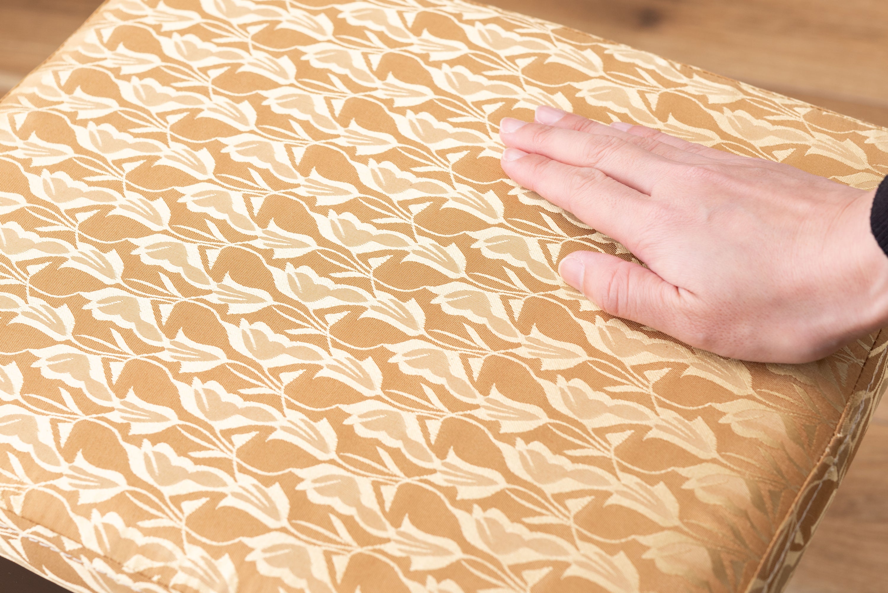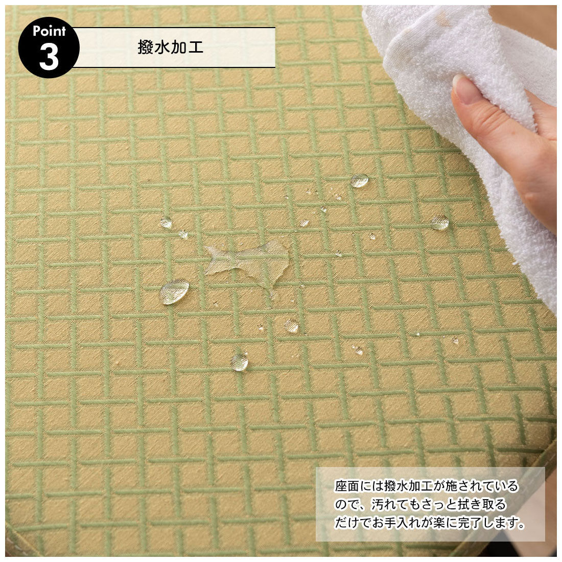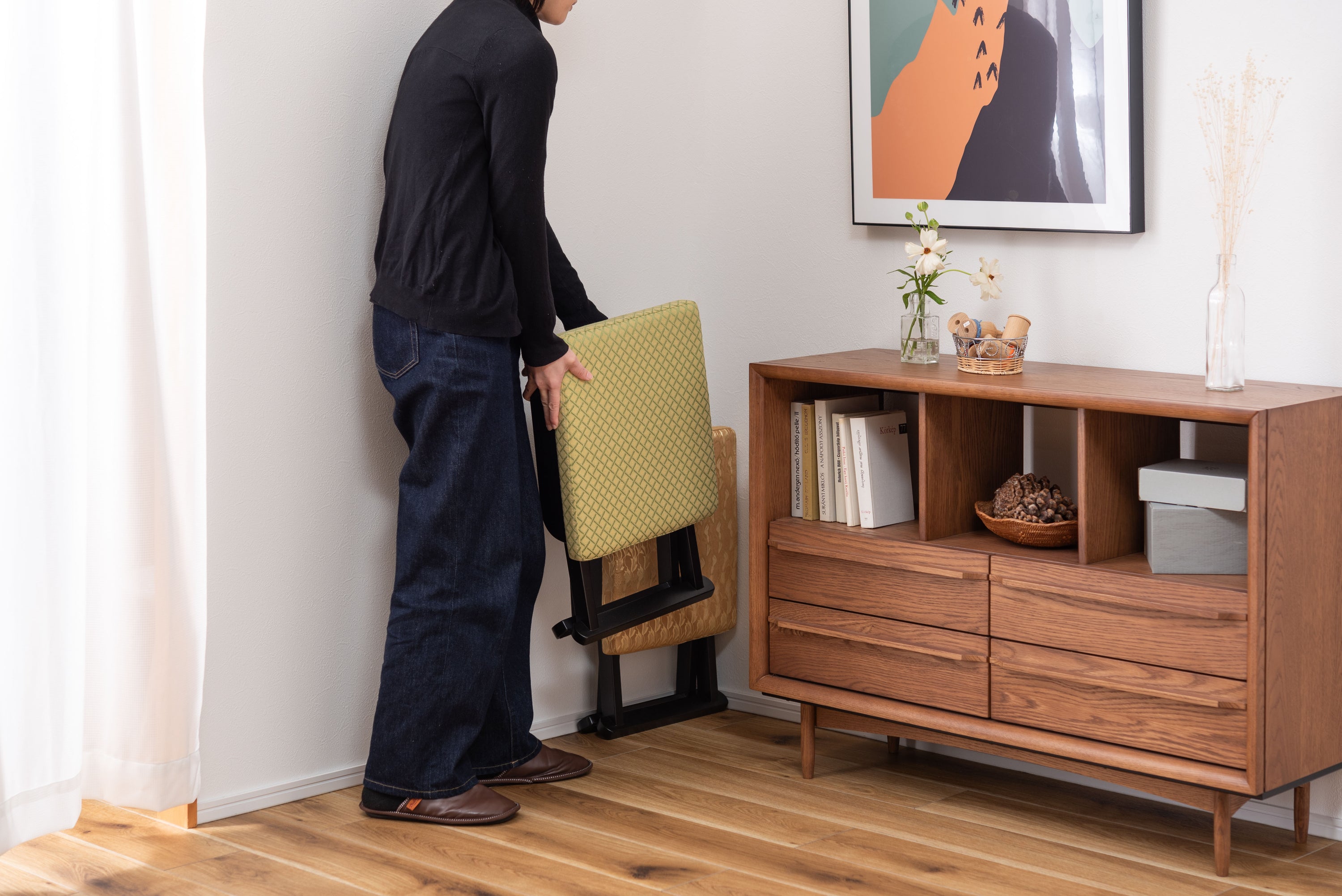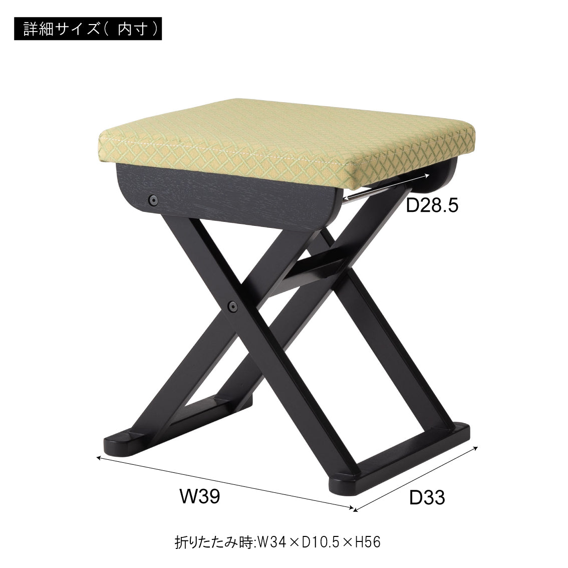 畳にもしっくりなじむ折りたたみスツール。 軽くて持ち運びやすい折りたたみ式。 重さが分散されやすいスキー脚仕様。 畳や床を傷つけにくく、ウレタン入り座面はふかふかで長時間座れる座り心地。 使わない時はサッとたたんで省スペースに収納できるので便利。 脚裏フェルト付き。 座面には撥水加工が施されているので、汚れてもサッと拭き取るだけでお手入れが楽に完了。 高さ45cmでオットマンとしても快適に使えるサイズ感。