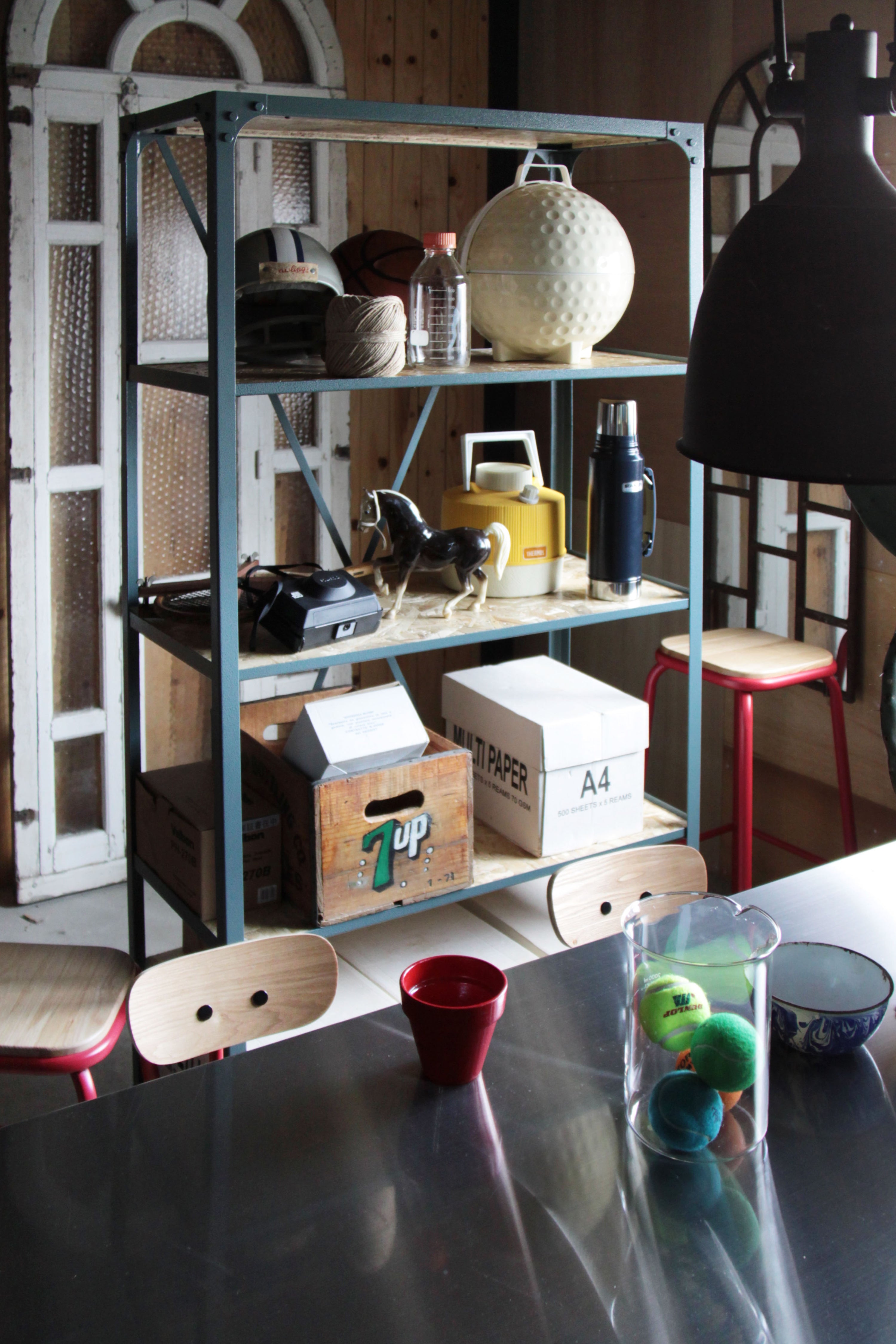 スチールと天然木の異素材を組み合わせた存在感のあるラックは、置くものを引き立てます。 細かな装飾とこだわりの塗装は、深みのあるヴィンテージ感を生み出します。