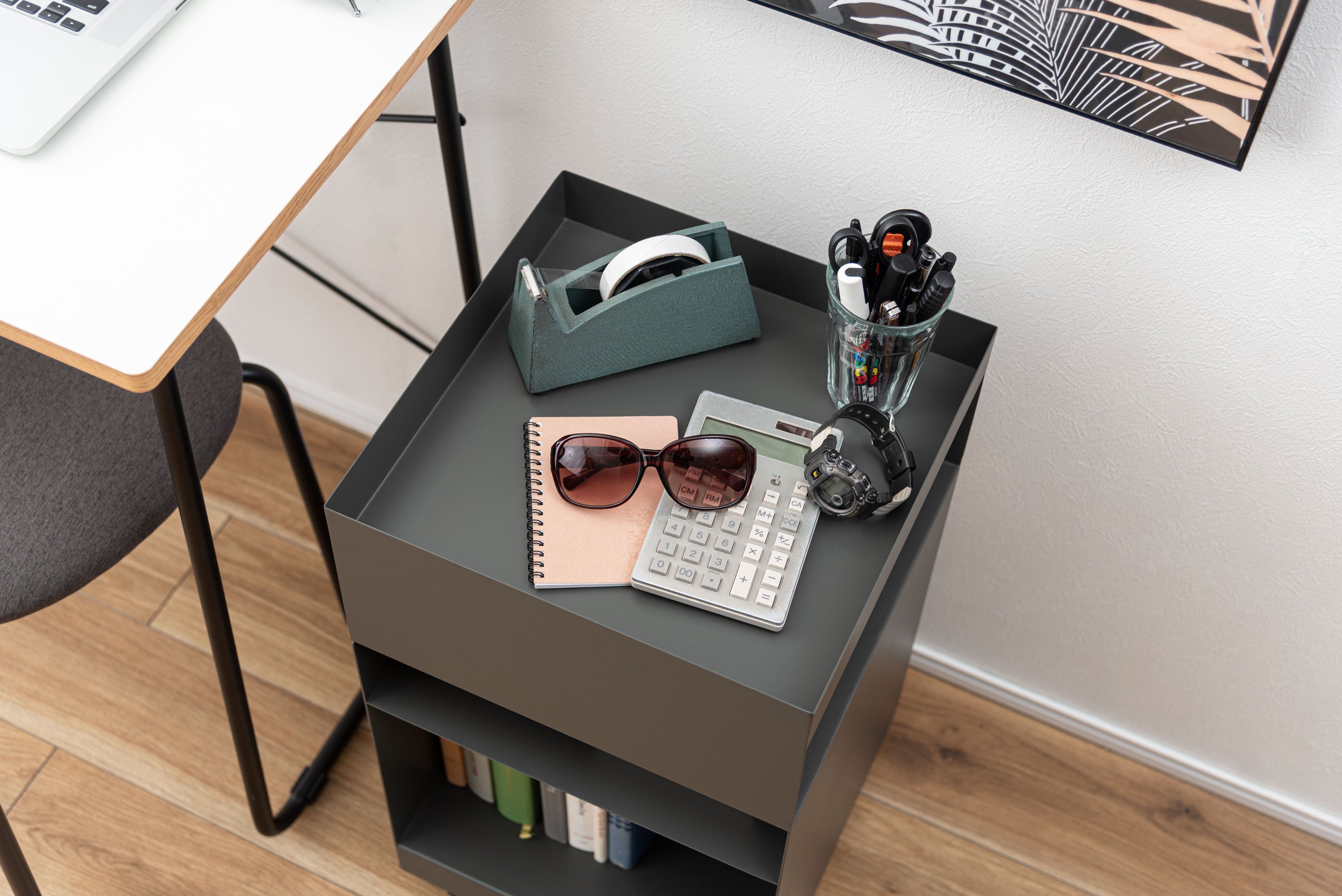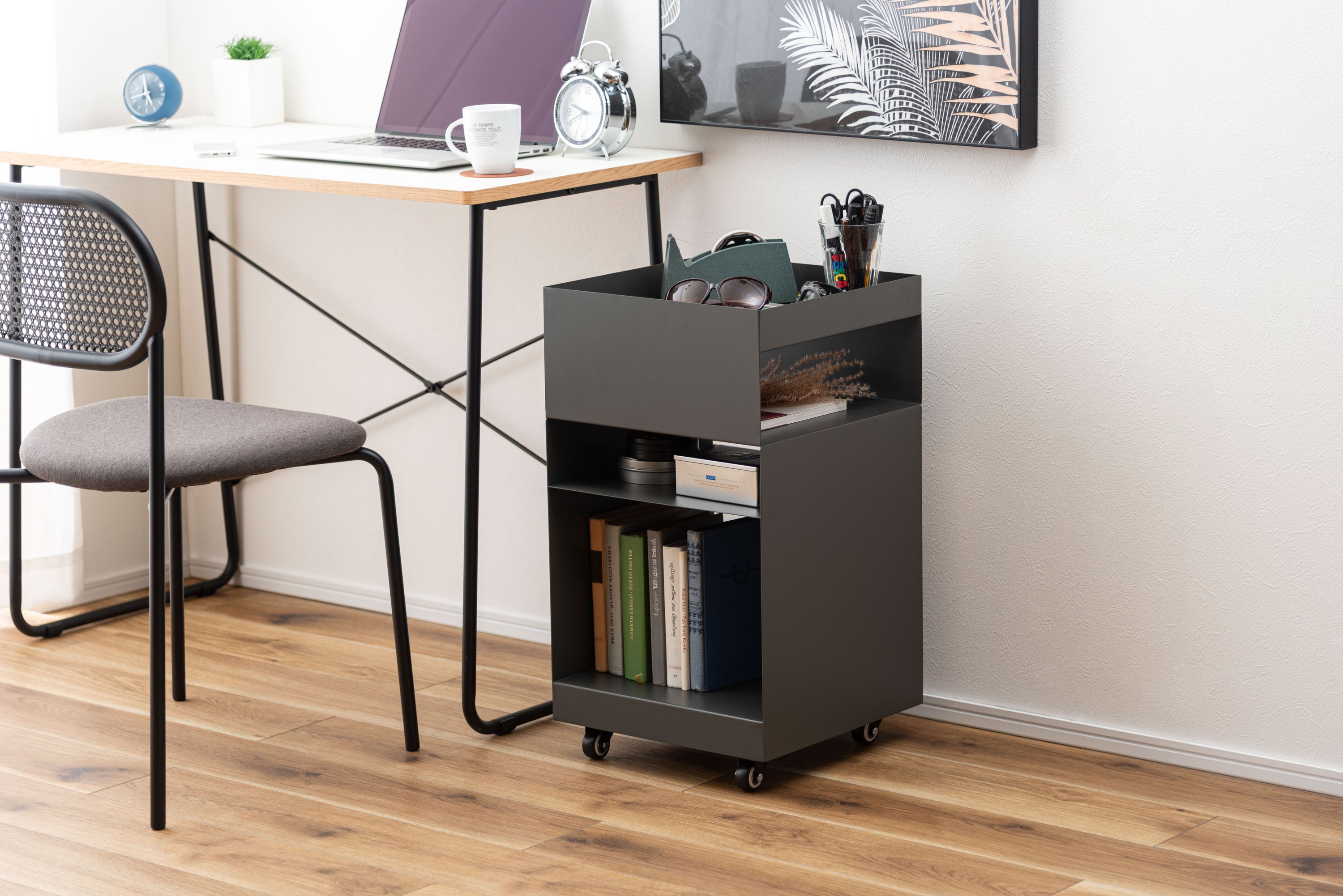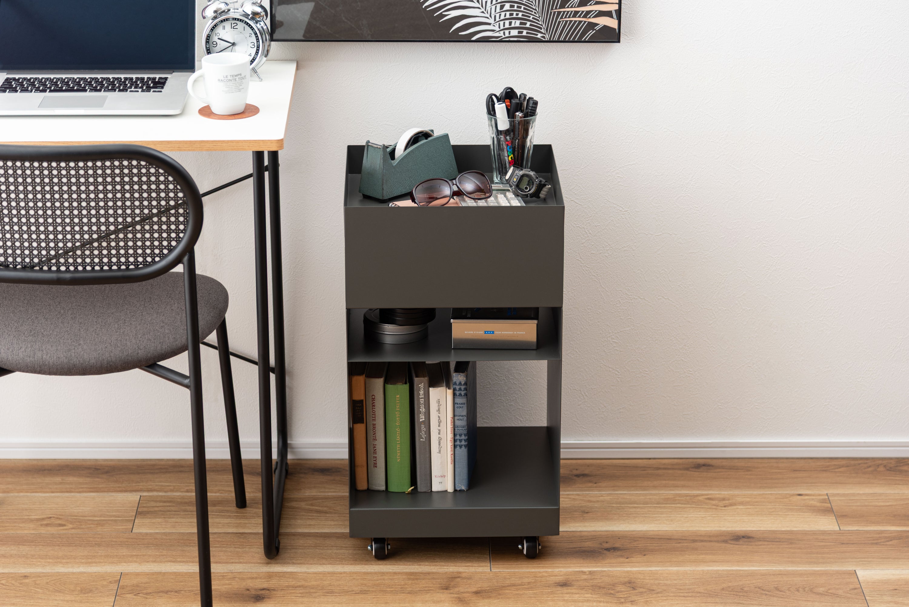 空間に合わせたスタイリッシュワゴン。マットな質感と収納力が魅力的なサイドテーブルワゴン。現代アートのような幾何学的デザインが目を引き空間の印象を高めます。キャスター付きなので室内の移動も簡単。ライフスタイルやシーンに合わせて活用できます。収納力が高く移動もできるので、サイドテーブルとしてだけでなくデスクサイドやキッチンワゴンとしても活躍。天板部分は囲いが付いているので置いた物が落ちにくい設計。さらりとしたマットな質感がデザインの印象を高め、モダンな雰囲気を演出。汚れてしまっても簡単に拭き取ることができ清潔な状態を保てます。
