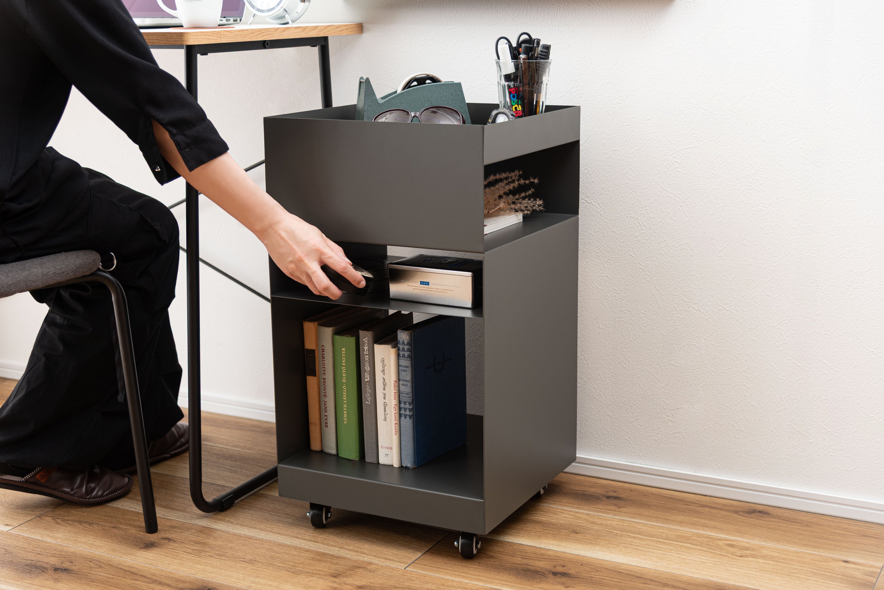 サイドテーブルワゴン ダークグレー